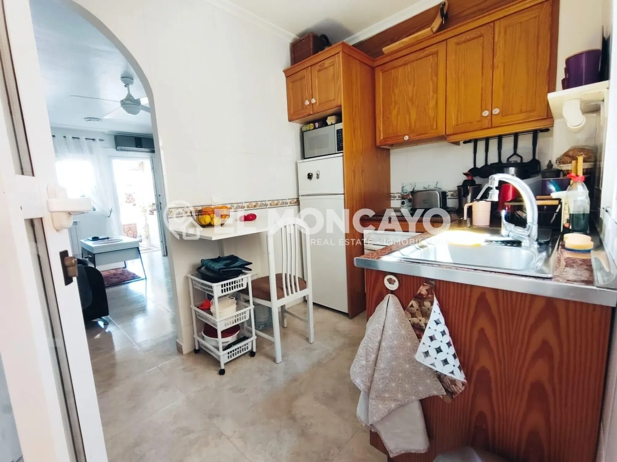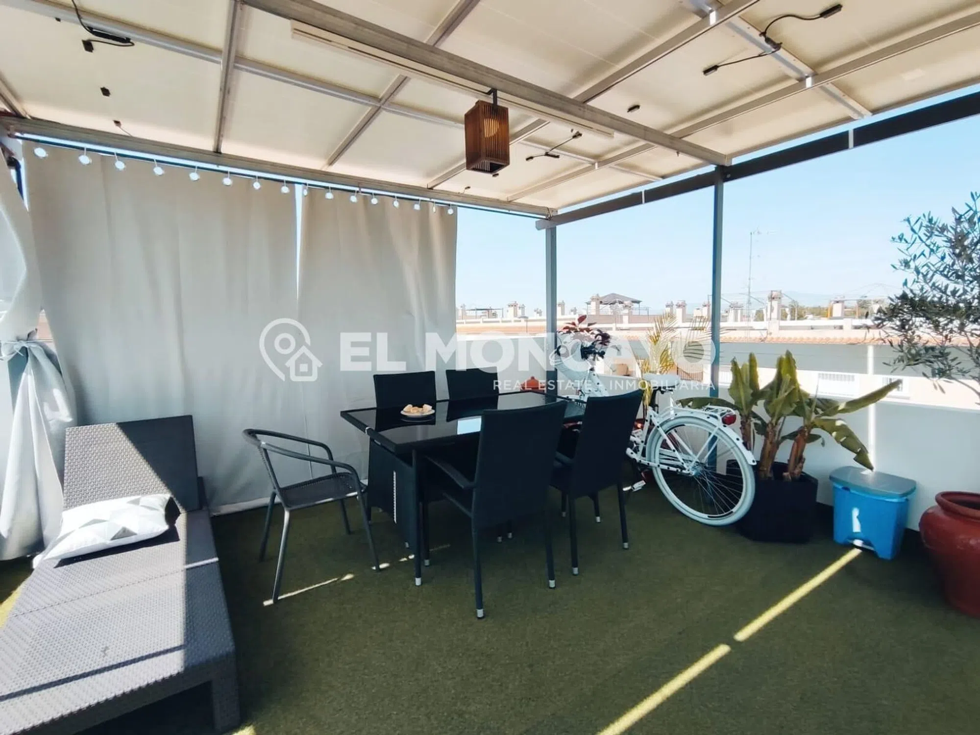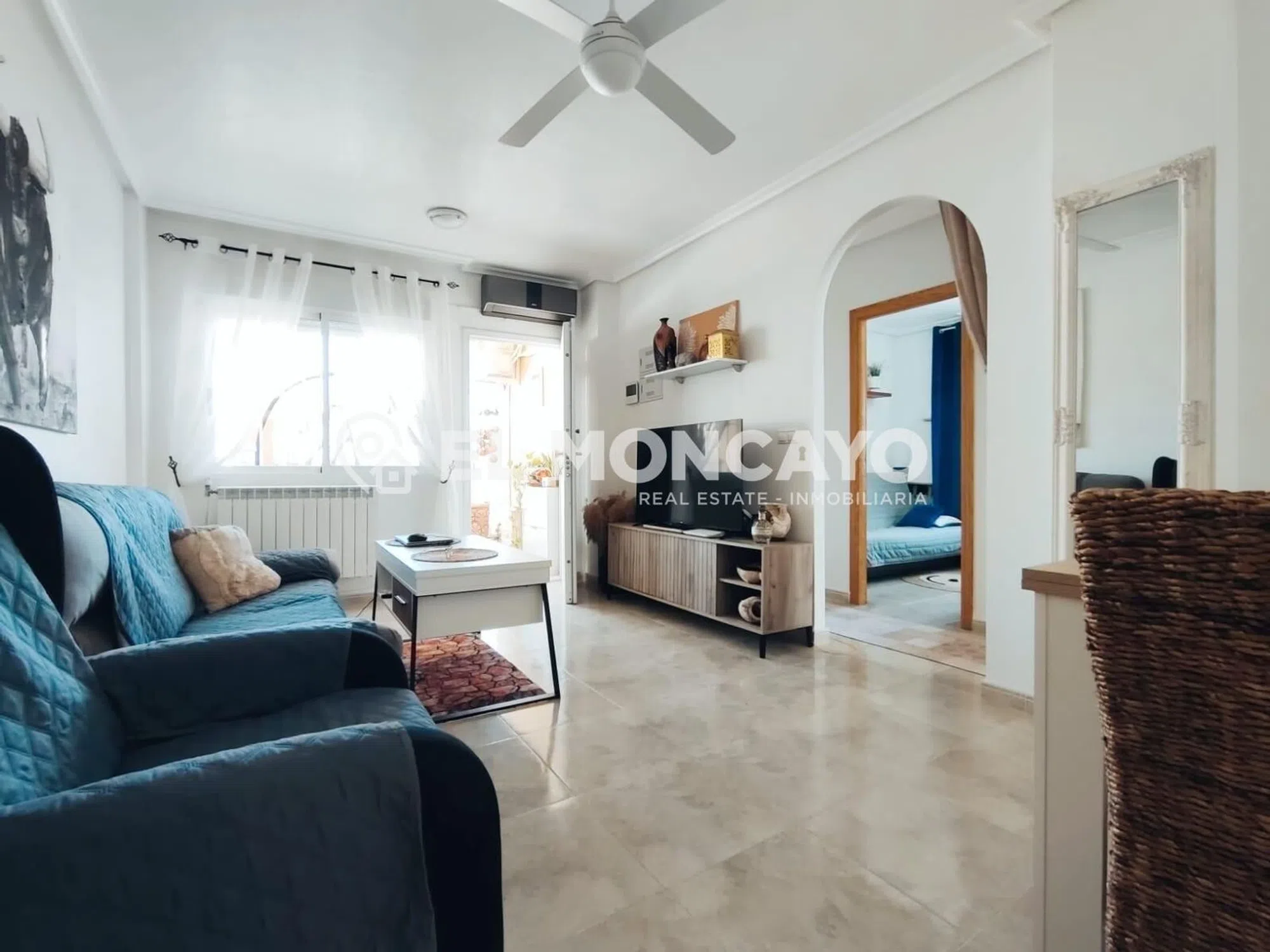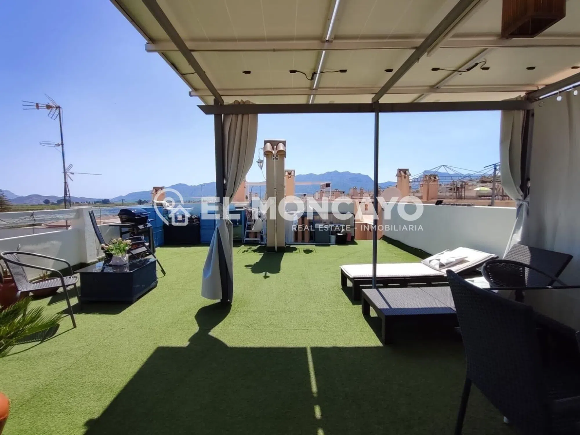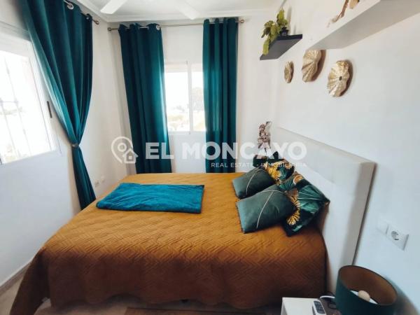 El Moncayo Properties pone a la venta este fantástico bungalow de planta alta en la tranquila urbanización de las 7 casas, a escasos 10 minutos de la histórica ciudad de Orihuela. La vivienda consta de 68m2 según escritura más un solárium de 56m2 con impresionantes vistas al paisaje. Consta de un amplio salón comedor, amueblado, con split de aire acondicionado y radiadores de pared. A su entrada además tenemos una pequeña terraza delantera. Cocina independiente totalmente equipada con electrodomésticos y acceso a una galería con una escalera exterior que accede al amplio solárium donde disfrutar de vistas panorámicas al bonito paisaje de esta zona. Tres dormitorios, dos con cama de matrimonio y un dormitorio más pequeño habilitado como estudio. Un baño completo con bañera, lavabo, inodoro y bidet. Este bonito apartamento consta de placas solares, radiadores de pared, puerta y rejas de seguridad. Se encuentra ubicado en una urbanización muy tranquila, rodeada de naturaleza y paisajes de ensueño, con amplias zonas ajardinadas, parques infantiles y piscina municipal justo enfrente de la comunidad. Perfectamente conectado con Orihuela y poblaciones vecinas, cerca de comercios y servicios. Un lugar ideal para vivir en plena naturaleza, a escasos metros de la ciudad. Llámanos y ven a visitarlo!