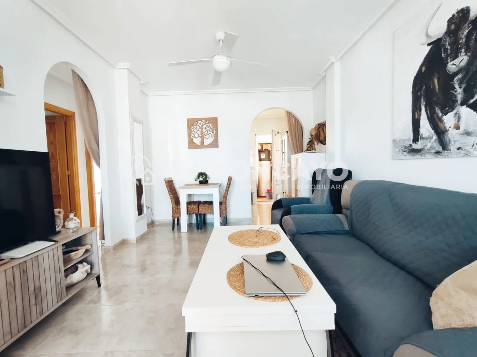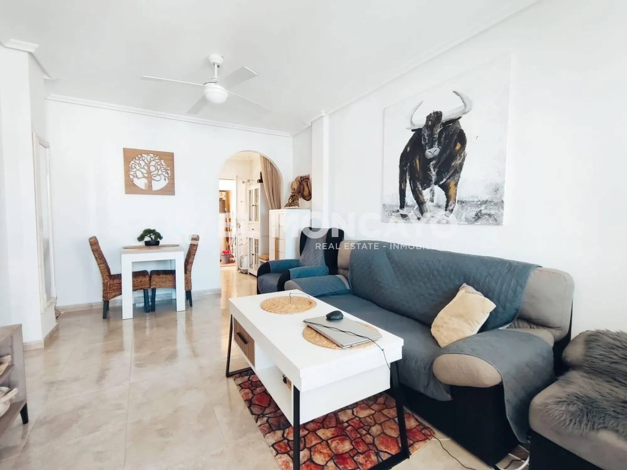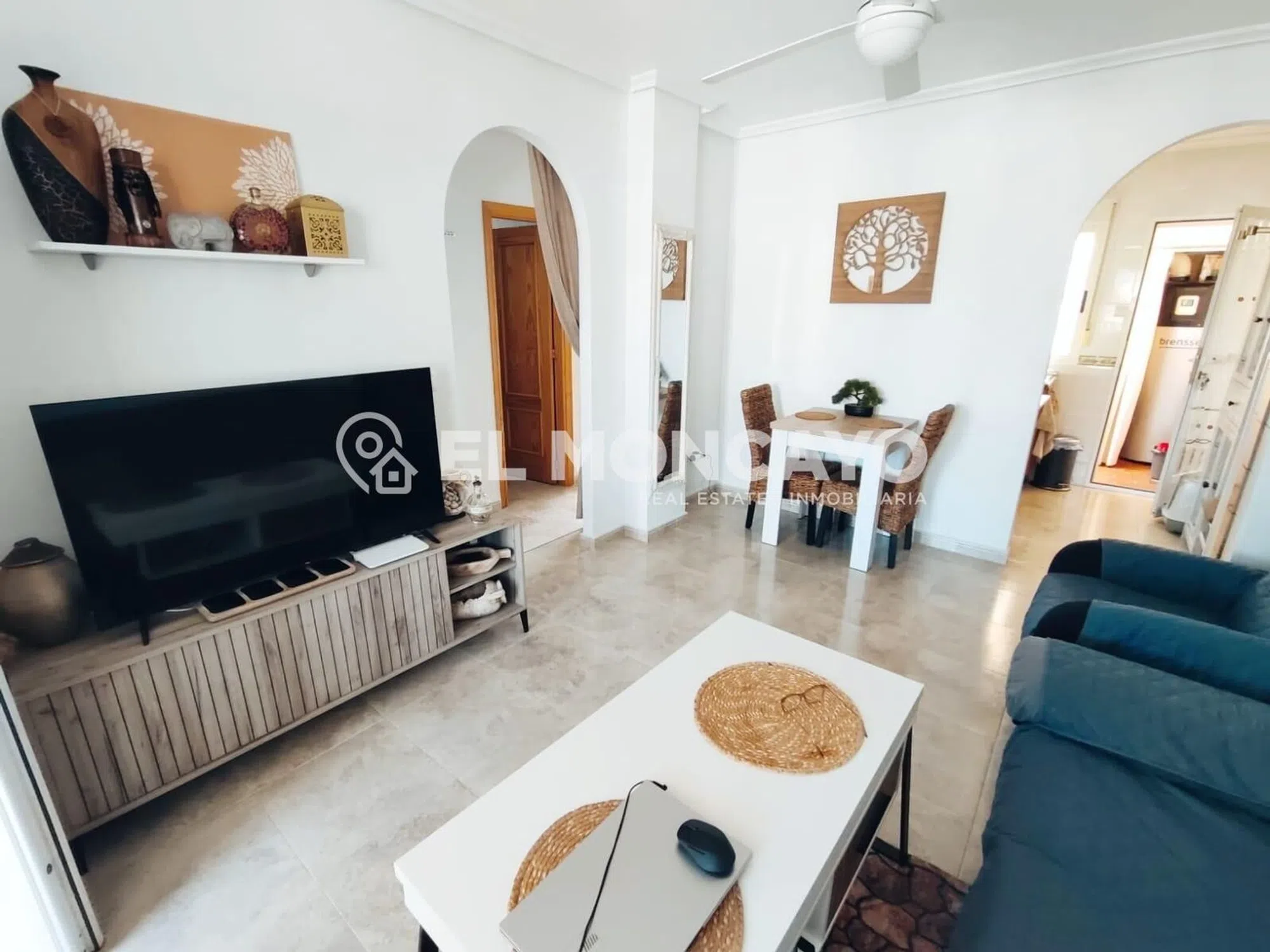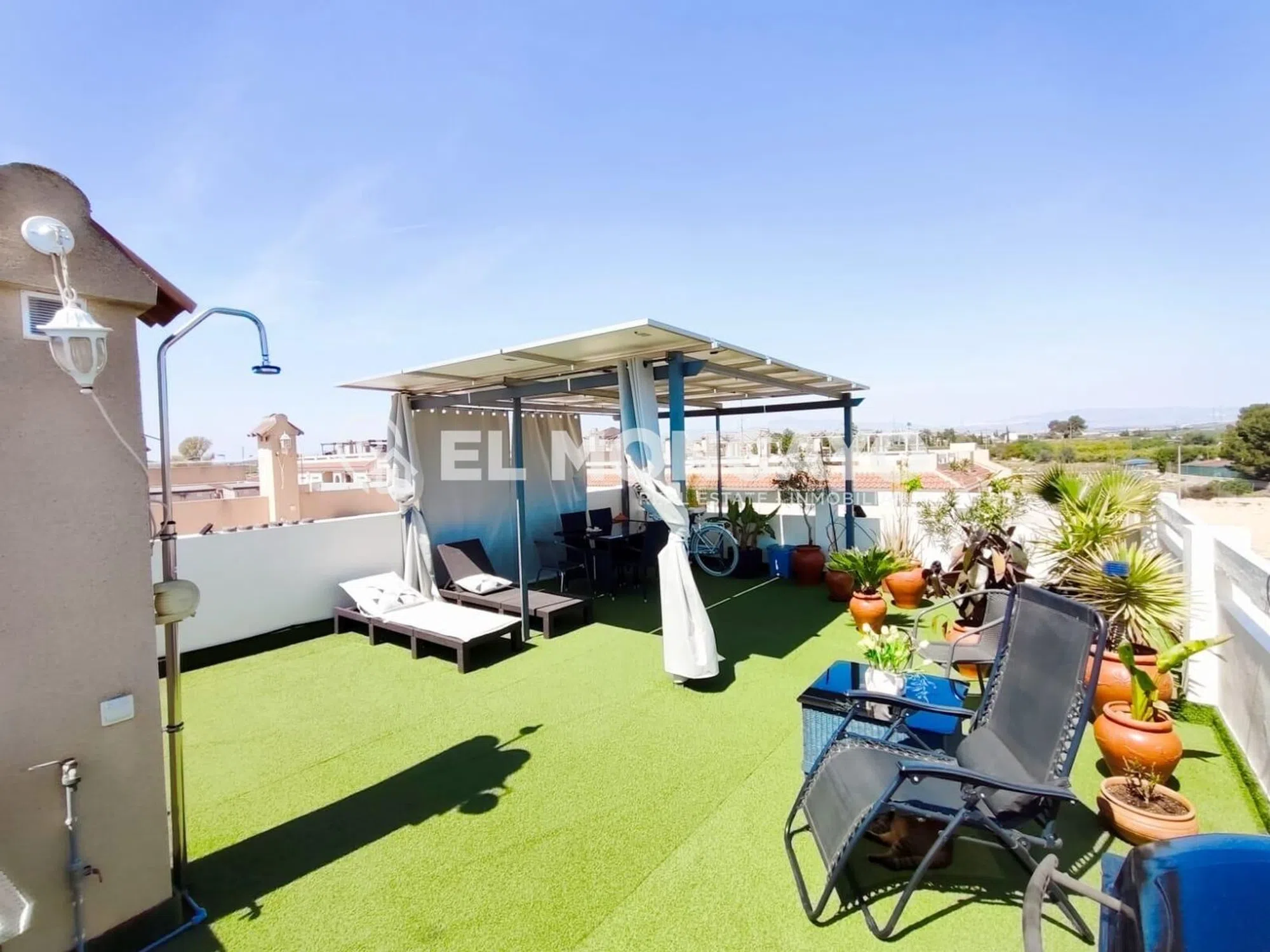 El Moncayo Properties pone a la venta este fantástico bungalow de planta alta en la tranquila urbanización de las 7 casas, a escasos 10 minutos de la histórica ciudad de Orihuela. La vivienda consta de 68m2 según escritura más un solárium de 56m2 con impresionantes vistas al paisaje. Consta de un amplio salón comedor, amueblado, con split de aire acondicionado y radiadores de pared. A su entrada además tenemos una pequeña terraza delantera. Cocina independiente totalmente equipada con electrodomésticos y acceso a una galería con una escalera exterior que accede al amplio solárium donde disfrutar de vistas panorámicas al bonito paisaje de esta zona. Tres dormitorios, dos con cama de matrimonio y un dormitorio más pequeño habilitado como estudio. Un baño completo con bañera, lavabo, inodoro y bidet. Este bonito apartamento consta de placas solares, radiadores de pared, puerta y rejas de seguridad. Se encuentra ubicado en una urbanización muy tranquila, rodeada de naturaleza y paisajes de ensueño, con amplias zonas ajardinadas, parques infantiles y piscina municipal justo enfrente de la comunidad. Perfectamente conectado con Orihuela y poblaciones vecinas, cerca de comercios y servicios. Un lugar ideal para vivir en plena naturaleza, a escasos metros de la ciudad. Llámanos y ven a visitarlo!