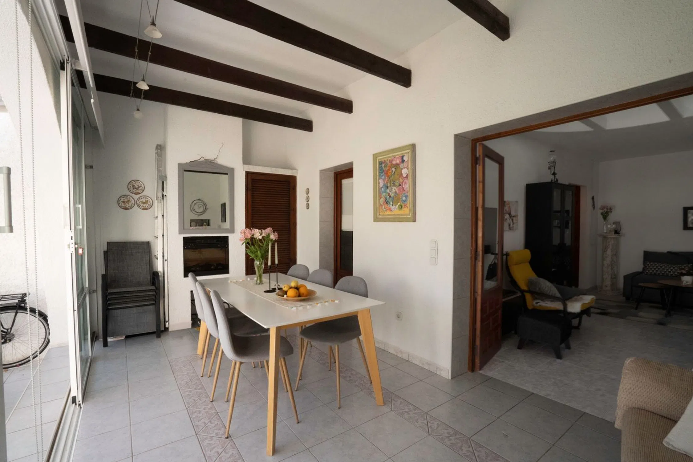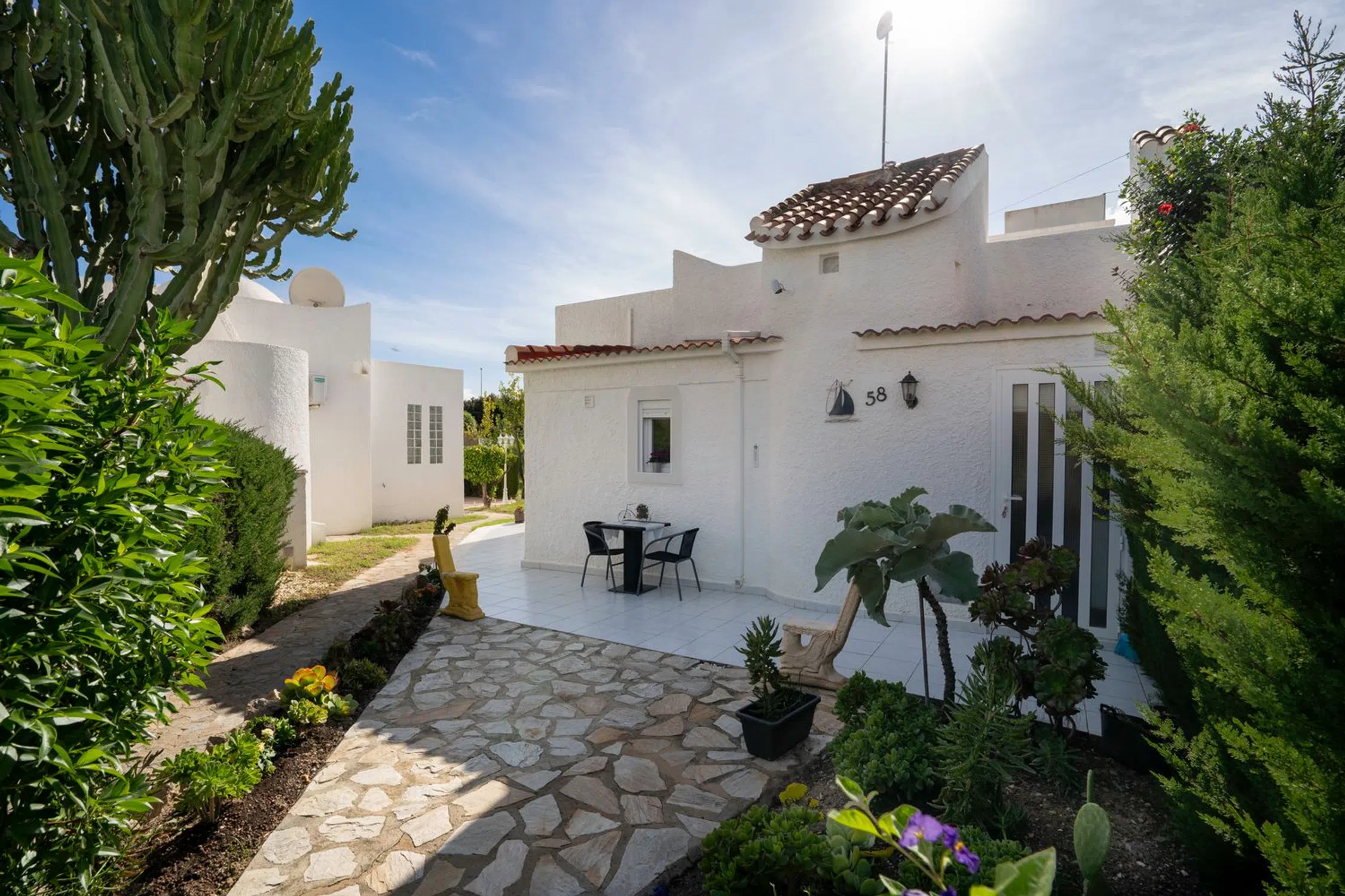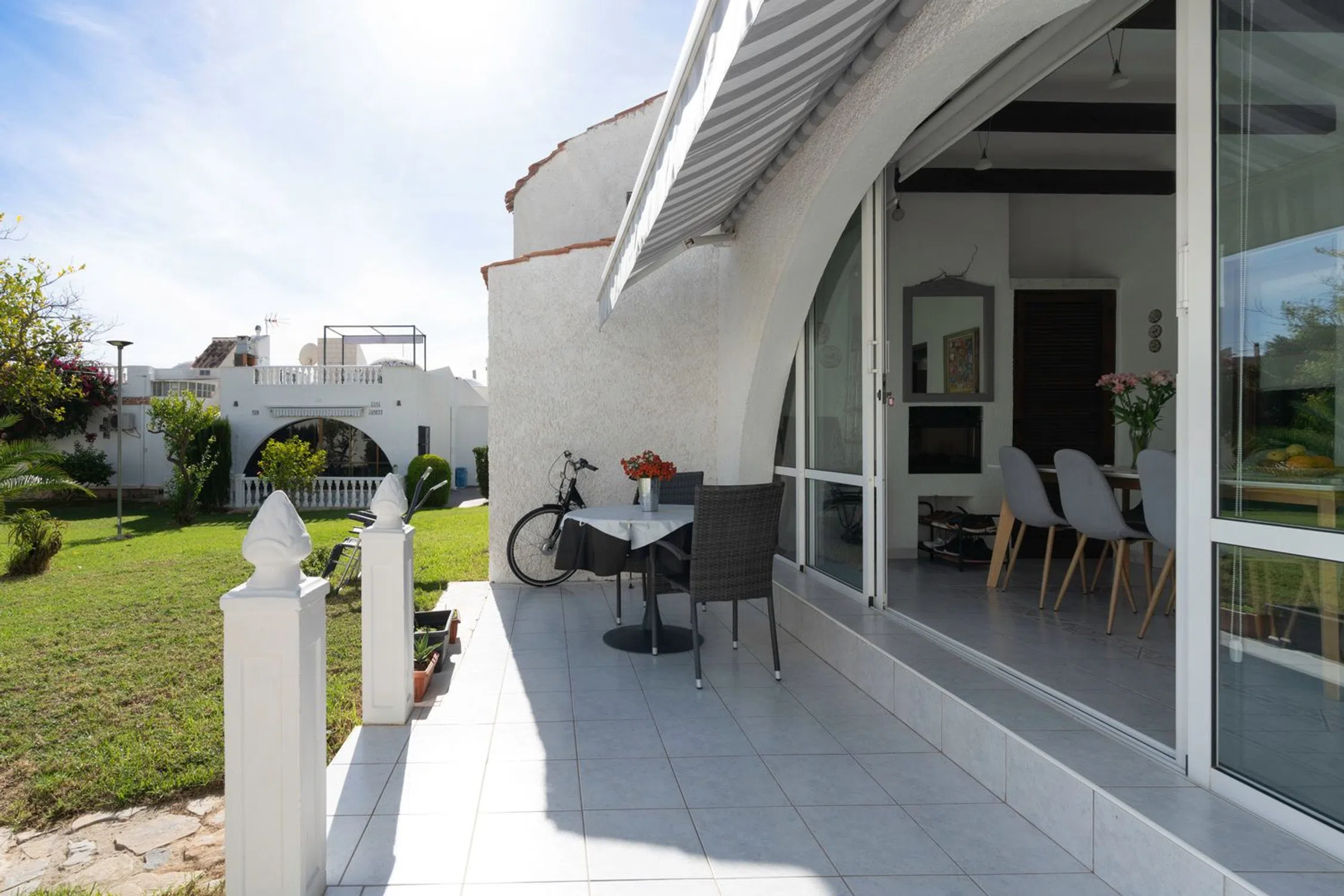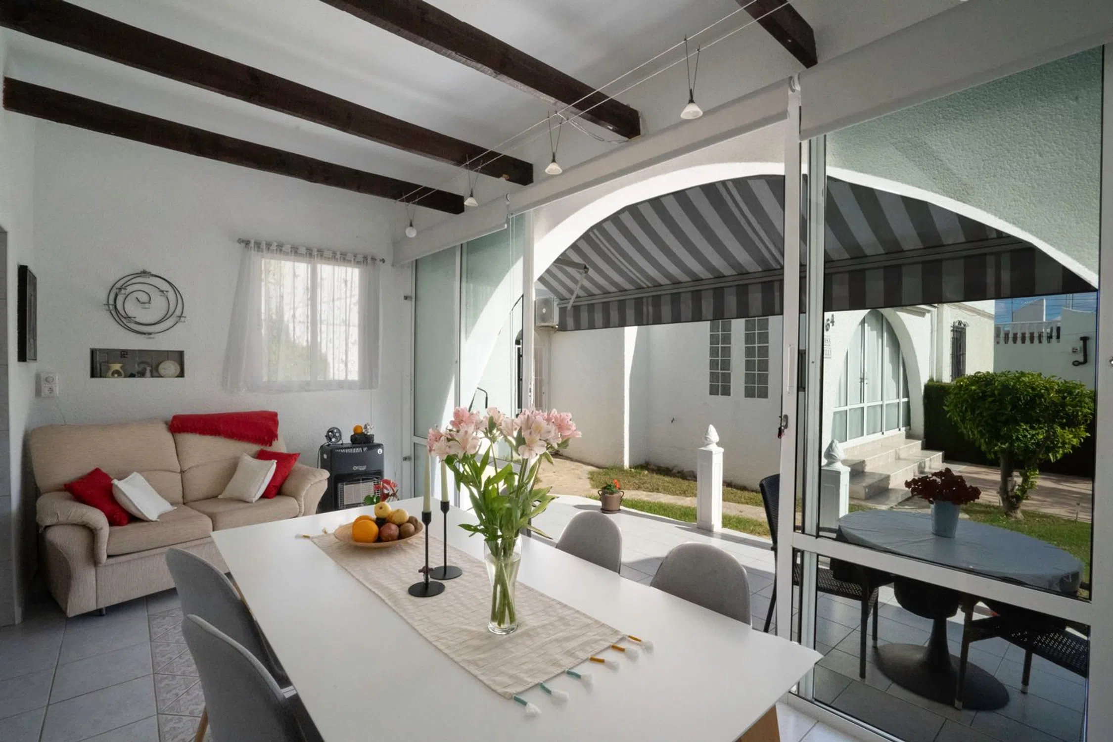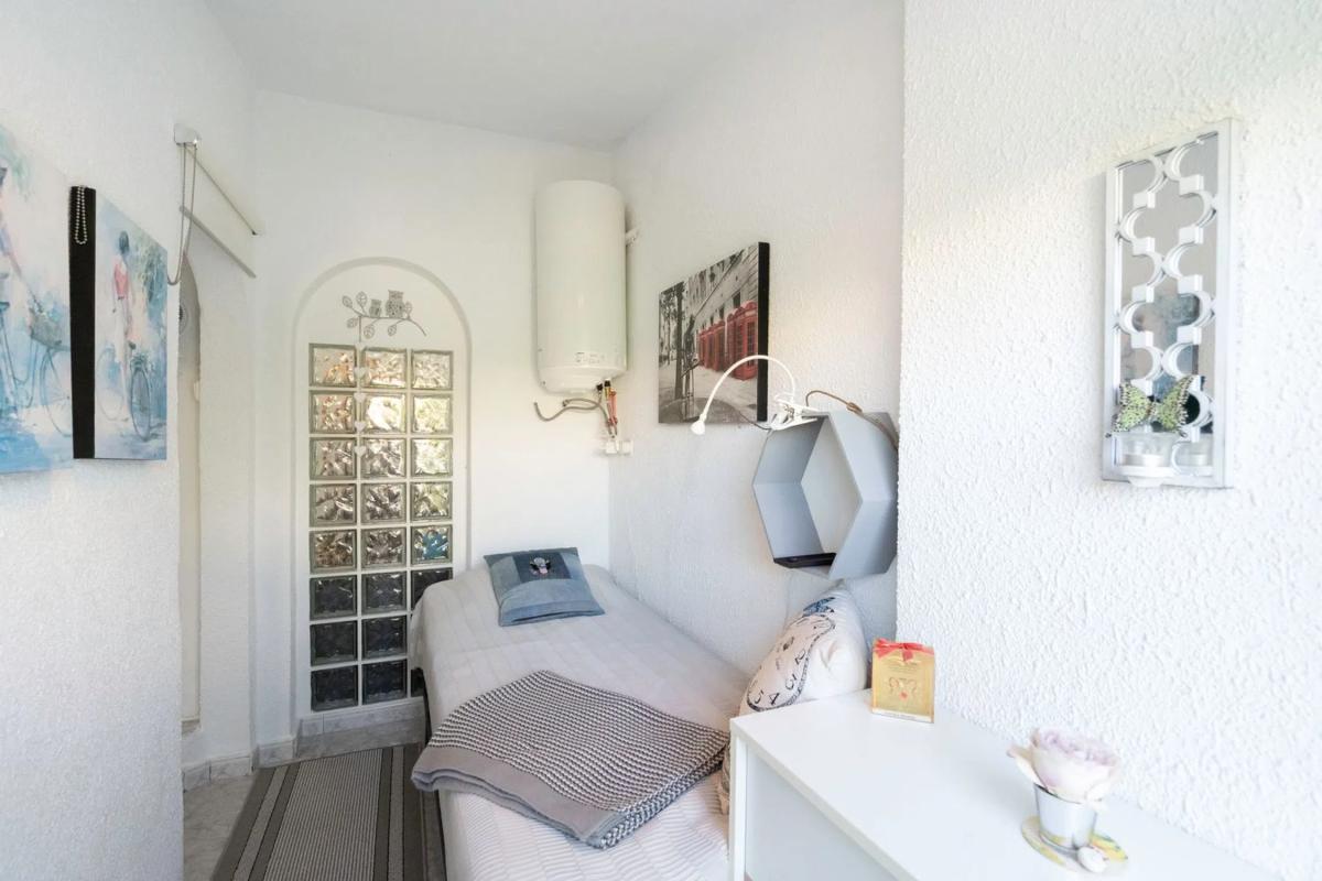 En SkandiaMäklarna Torrevieja nos complace presentar esta encantadora y bien distribuida casa adosada quad de una sola planta, situada en una zona tranquila y verde de la popular Playa Flamenca. Aquí vivirás cerca del mar, de todos los servicios y del ocio, en una vivienda que ofrece una sensación de confort genuino y un agradable estilo de vida mediterráneo durante todo el año. Al entrar por la soleada terraza delantera te recibe un espacio acogedor, perfecto para disfrutar del café de la mañana y de la tranquilidad del entorno. En el interior encontrarás un salón con cocina abierta, un dormitorio y un baño. Desde el salón se accede a una encantadora terraza acristalada que amplía la vivienda y crea una estancia adicional que puede utilizarse todo el año; actualmente se usa como comedor. Una escalera interior lleva a la azotea privada, un refugio soleado con bonitas vistas a los alrededores. Hay espacio más que suficiente para muebles de exterior, tumbonas o plantas, creando un rincón perfecto para relajarse bajo el sol español. Además, la vivienda cuenta con un práctico trastero, ideal para guardar mobiliario de jardín o equipamiento de playa. La zona es verde, tranquila y muy cuidada, con fácil acceso a pie a restaurantes, tiendas, La Zenia Boulevard y las preciosas playas de Orihuela Costa. Es un hogar perfecto para quienes buscan una vivienda cómoda, de fácil mantenimiento y con encanto, tanto para vivir todo el año como para disfrutar de las vacaciones. Una propiedad con mucho carácter, buenos espacios y todo el potencial para crear la casa de tus sueños junto al Mediterráneo. Contacta con nosotros en SkandiaMäklarna para más información. Bienvenido a casa!