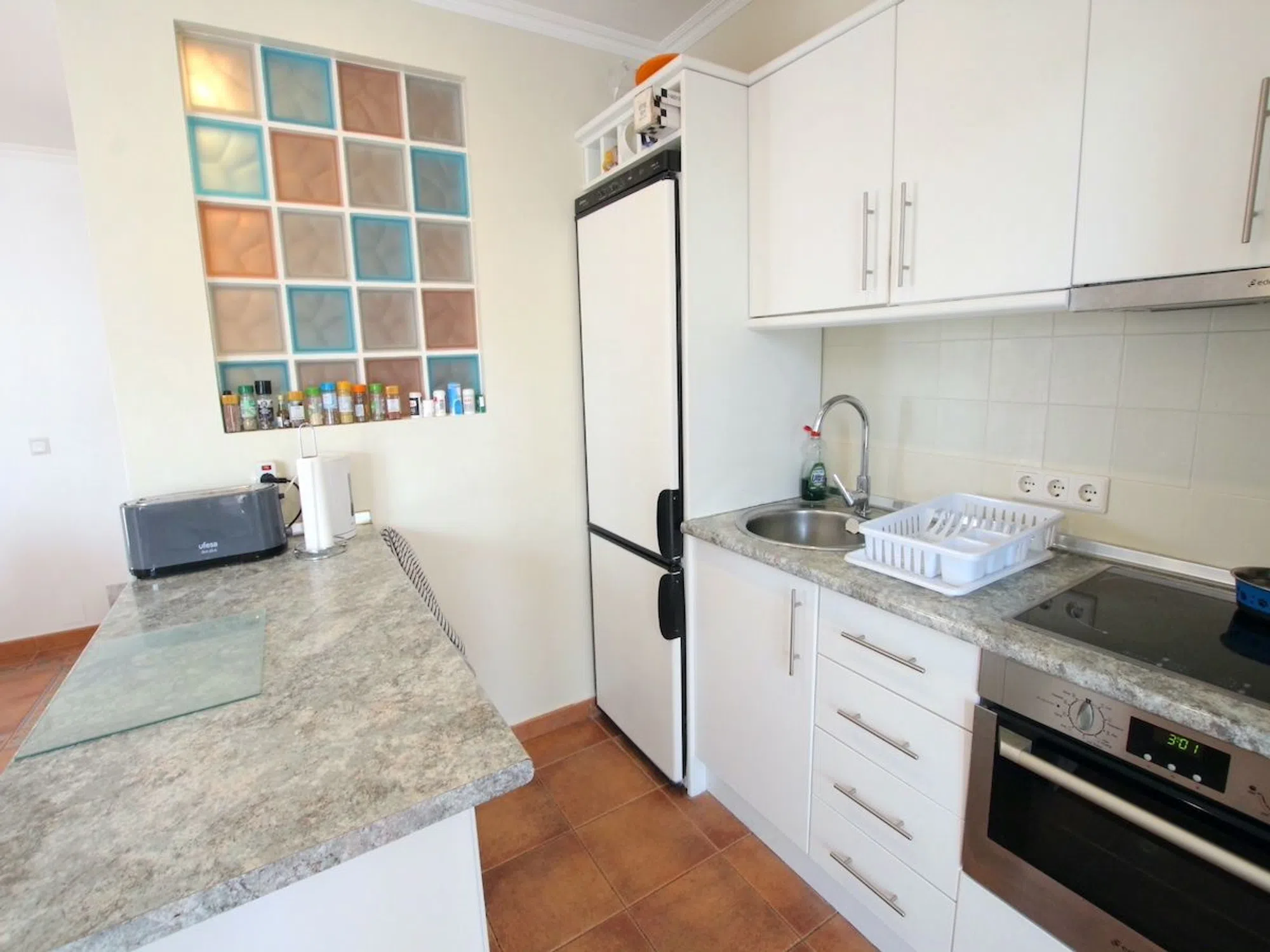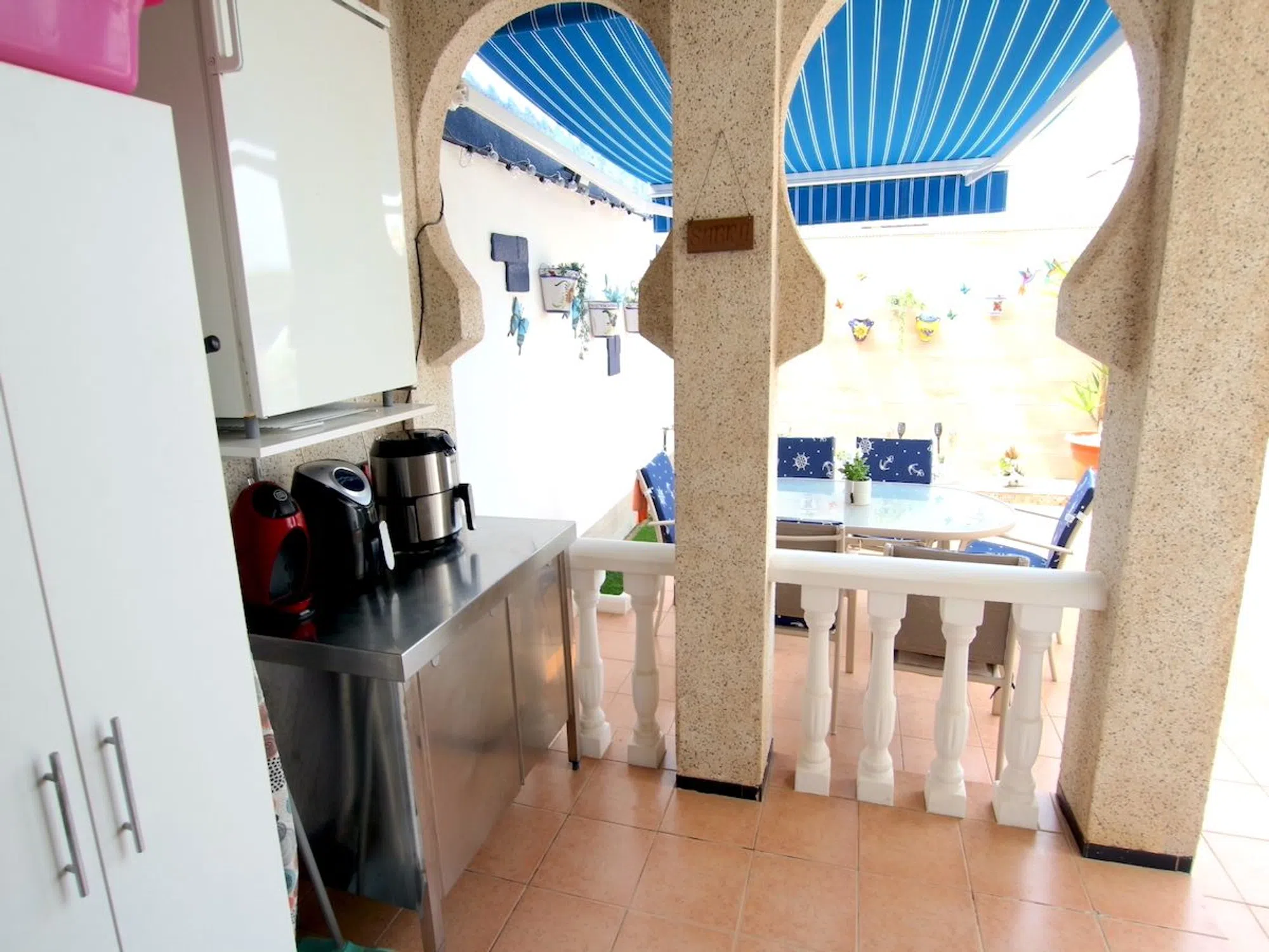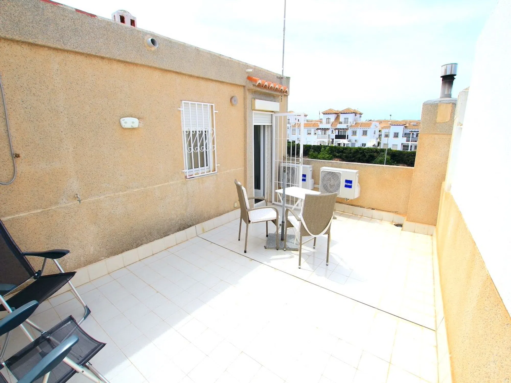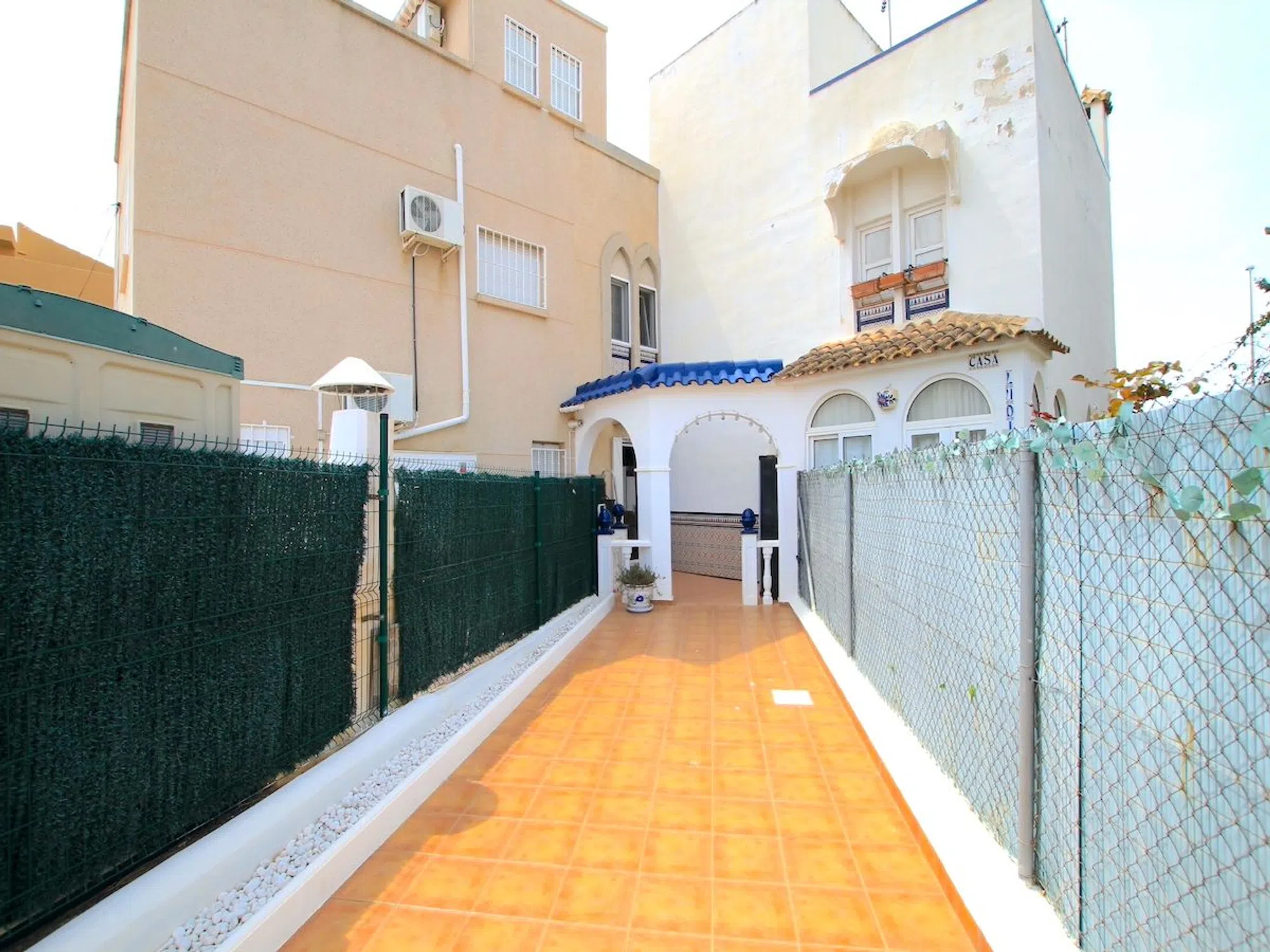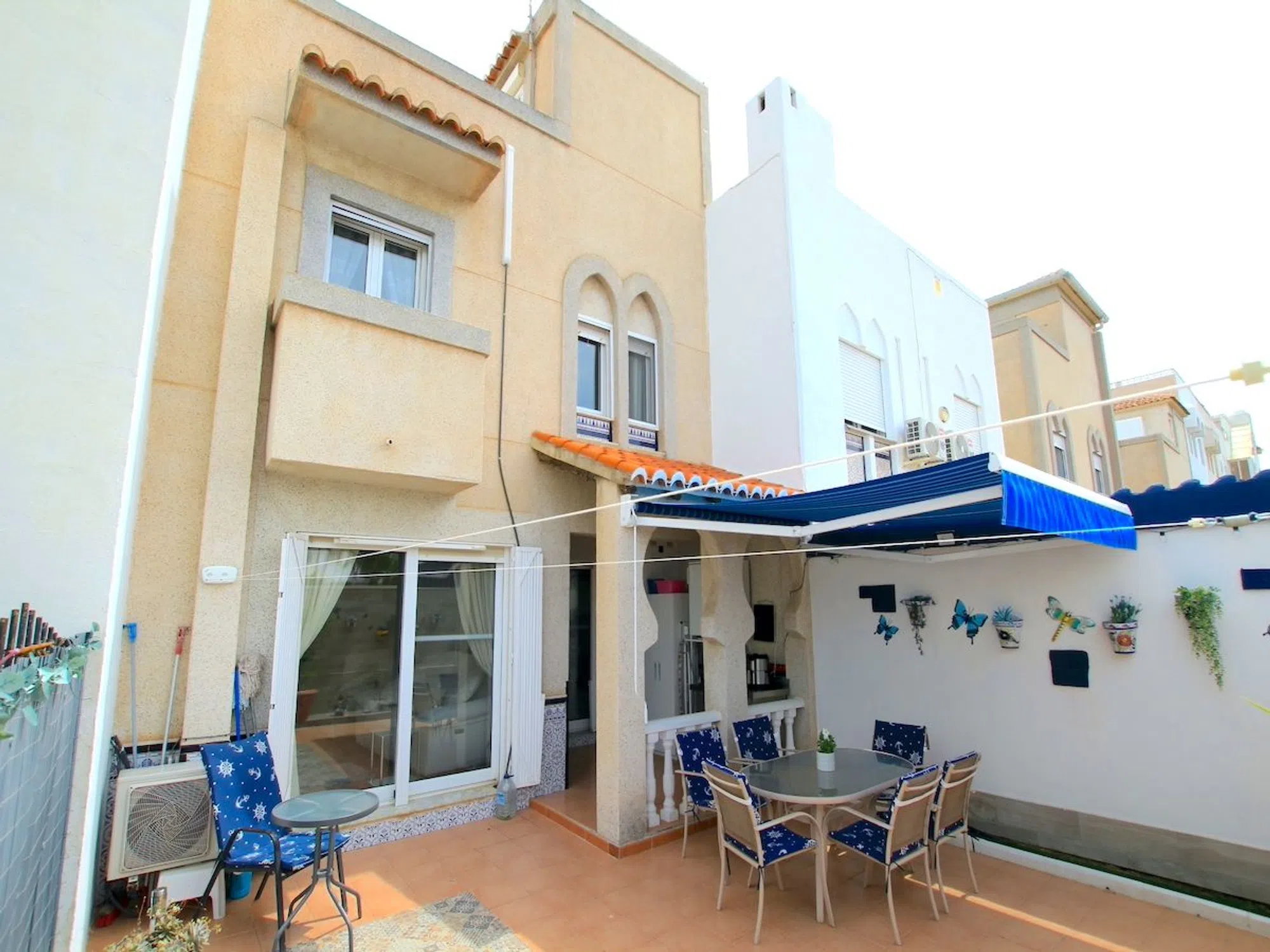 Aquí tenemos un encantador adosado de 3 dormitorios a la venta, a un corto paseo de las hermosas playas de arena dorada de La Zenia. Esta encantadora propiedad ha sido bellamente renovada para ofrecer una estética moderna, preservando a la vez parte de su carácter original. En la parte delantera, le da la bienvenida un espacioso jardín orientado al este que proporciona un cómodo acceso a la vivienda. Al entrar, encontrará un salón-comedor luminoso y abierto, con una estufa de pellets de alta calidad y grandes puertas de patio que se abren a un generoso jardín trasero. A su izquierda hay una elegante cocina equipada con amplio espacio de trabajo y soluciones de almacenamiento. Se puede acceder al patio trasero tanto desde la cocina como desde el salón; este espacio es perfecto para relajarse al aire libre y cenar. La planta baja también incluye un baño familiar. Subiendo a la primera planta, hay un dormitorio de invitados, que es doble con armarios empotrados, y un baño familiar de buen tamaño. El dormitorio principal es particularmente impresionante, ya que se han combinado dos habitaciones para crear un espacio amplio y espectacular. Una escalera interior conduce a la segunda planta, donde se encuentra otro dormitorio, con acceso directo a un soleado solárium en la azotea. Este solárium ofrece preciosas vistas del vecindario y hacia el mar Mediterráneo, lo que lo convierte en un lugar ideal para relajarse y descansar. Uno de los principales atractivos de este adosado costero es su inmejorable ubicación, ¡a pocos minutos de la playa! Hay 2 piscinas comunitarias cercanas donde podrá disfrutar de las instalaciones por un pequeño precio. No se pierda esta increíble oportunidad; se recomienda una visita temprana. Se ofrece a la venta parcialmente amueblado (sujeto a oferta).