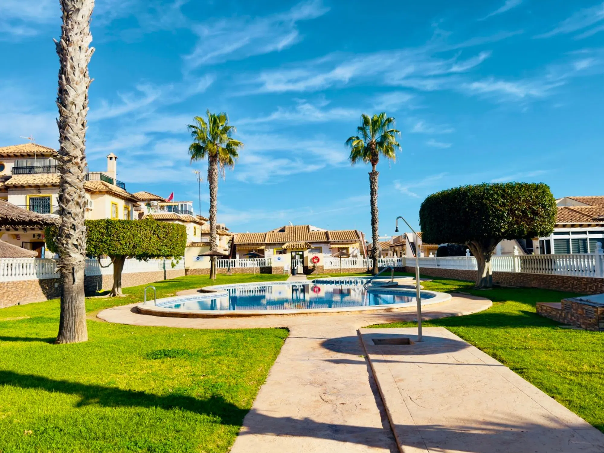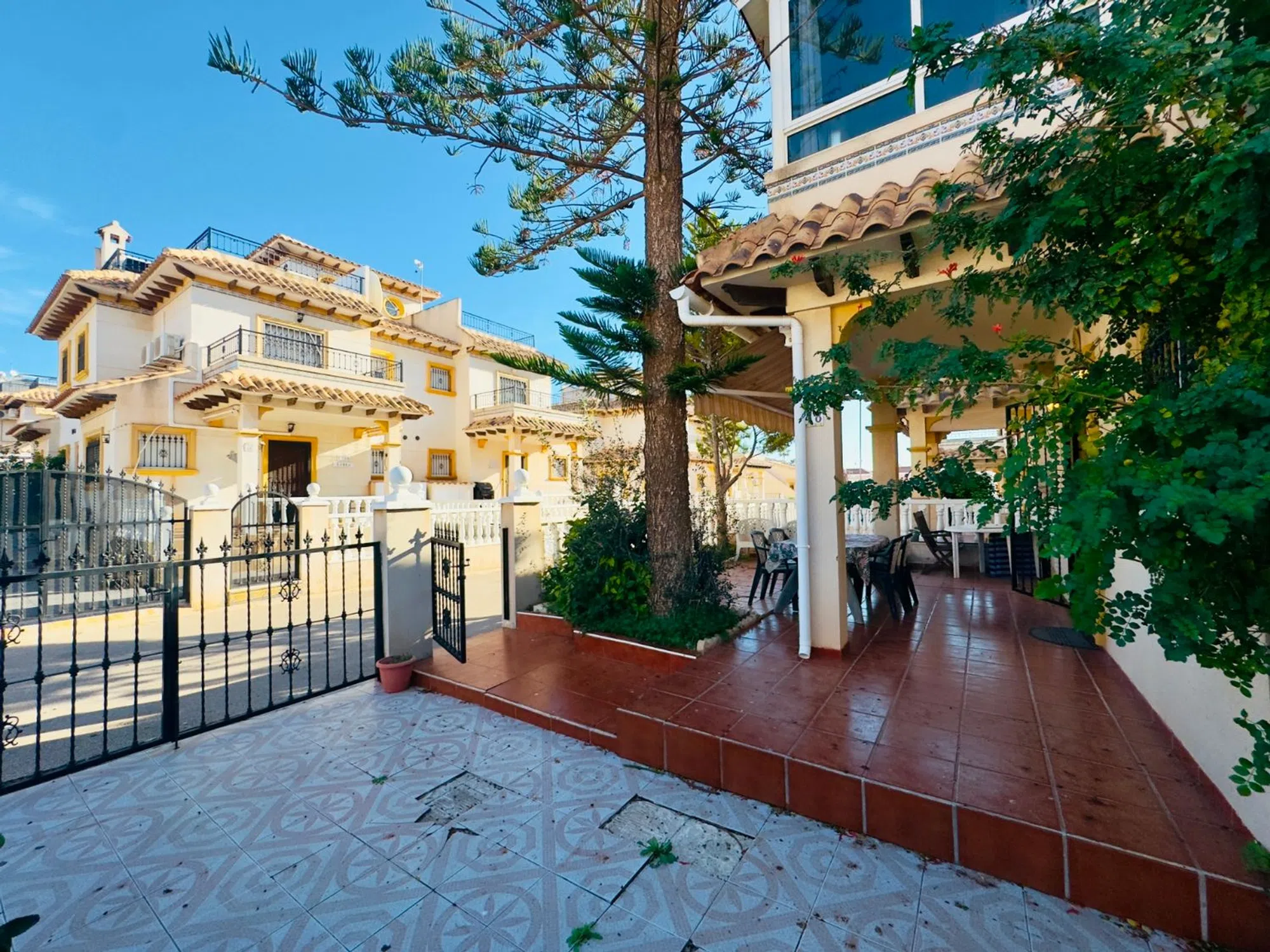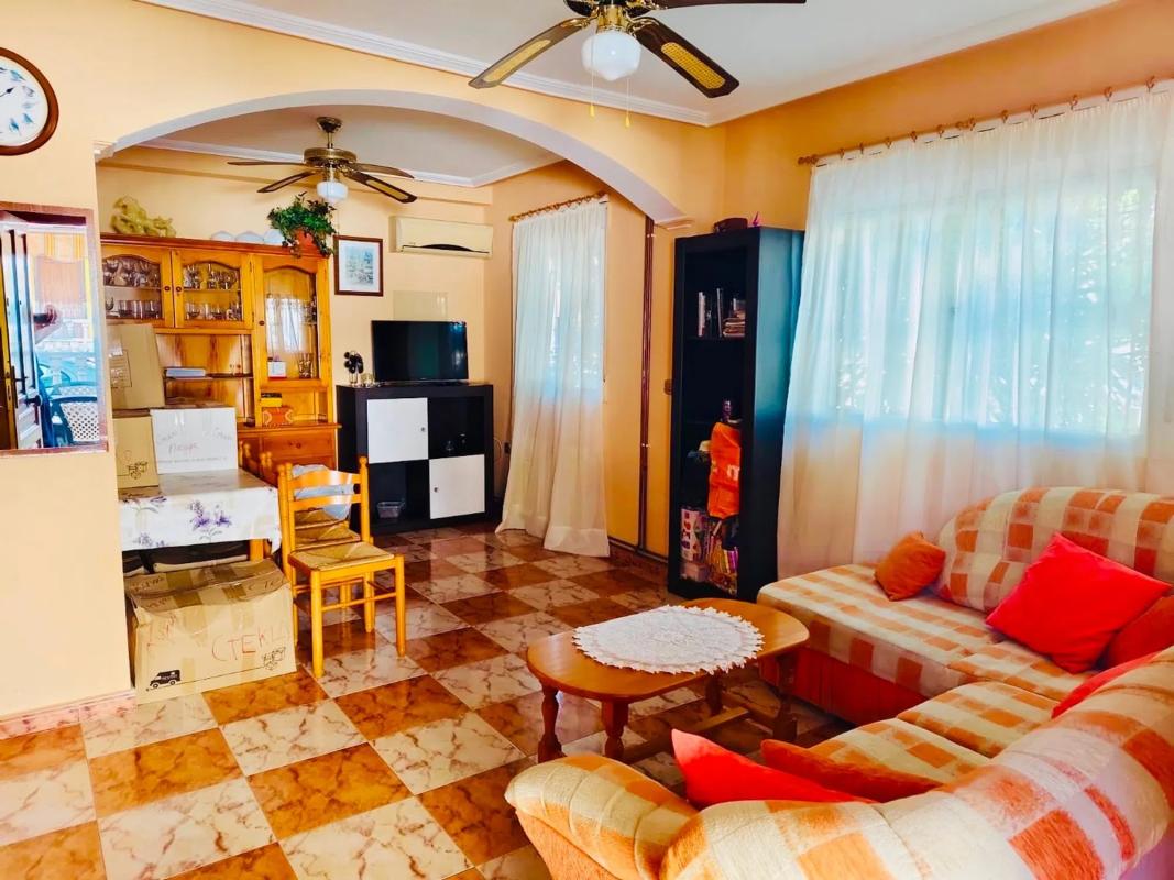 Este encantador townhouse de esquina en La Regia ofrece una excelente oportunidad de vivir en una de las zonas más codiciadas de la Costa Blanca. Con una distribución en tres plantas, esta propiedad tiene todo lo necesario para disfrutar de un estilo de vida cómodo y relajado. Con 74 m² construidos y una parcela de 84 m², la vivienda cuenta con un espacio privado para aparcar dentro de la parcela, lo que proporciona comodidad y seguridad. Al estar orientada al norte, la casa goza de una buena luminosidad sin el calor extremo del sol directo, creando un ambiente agradable durante todo el año. Además, se encuentra a tan solo dos minutos a pie de una piscina comunitaria, ideal para disfrutar del buen tiempo. En la planta baja, encontramos una cocina americana totalmente equipada, junto con una zona de comedor y salón de concepto abierto, que crea un ambiente espacioso y funcional. También en esta planta, se encuentra un aseo de cortesía, ideal para recibir visitas sin necesidad de acceder a las habitaciones. En el segundo piso, se encuentran dos acogedoras habitaciones, ambas con armarios empotrados. El baño completo en esta planta está diseñado para ofrecer la máxima comodidad. El dormitorio principal dispone de una terraza cubierta, que se puede utilizar tanto para disfrutar de un momento de relax como para crear un pequeño rincón de lectura o despacho. El solárium es uno de los puntos fuertes de esta propiedad, ya que cuenta con una habitación cerrada, perfecta para utilizar como trastero o para almacenamiento adicional. Desde el solárium, se accede a una terraza orientada al norte/noreste, donde se pueden disfrutar de vistas parciales al mar, creando el ambiente perfecto para tomar el sol o relajarse al aire libre. La ubicación es inmejorable: la famosa zona de Cabo Roig Strip está a tan solo 10 minutos a pie, con una gran variedad de bares, restaurantes y tiendas para explorar. También se encuentran diversas playas en un radio de 15 a 20 minutos caminando. Si te apetece ir de compras, el centro comercial La Zenia Boulevard está a solo 20 minutos a pie o a 3 minutos en coche. En definitiva, esta propiedad es una excelente opción tanto como residencia permanente como casa de vacaciones, ofreciendo un sinfín de comodidades y una ubicación privilegiada cerca de todo lo que necesitas para disfrutar del mejor estilo de vida costero.