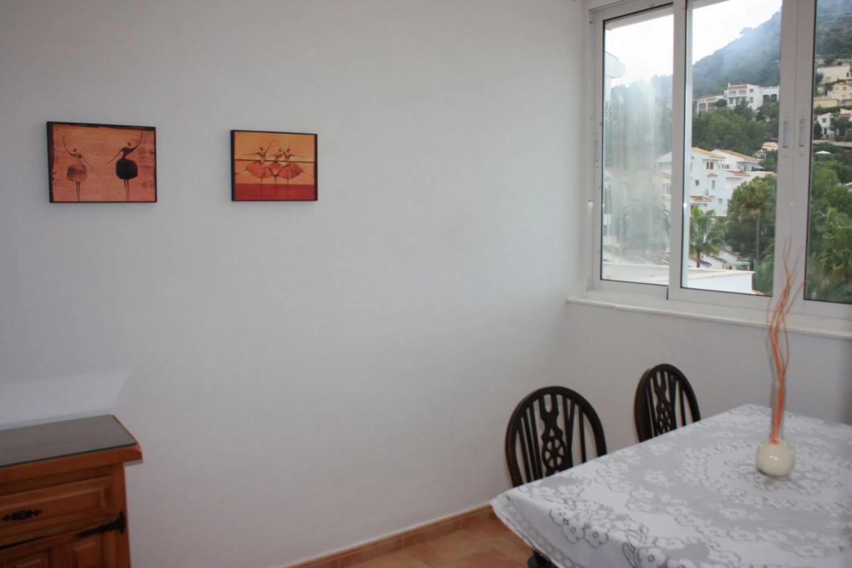 A 2 bedroom, 2 bathroom bungalow on a sought after development just a fifteen minute drive from the beach and the popular town of Denia. A few steps lead down from the car port to a separate entrance, opening to a large hallway, living room, kitchen, dining room, two spacious bedrooms and two bathrooms. There is a utility room and the main bedroom has an en suite bathroom. Both bedrooms have large built in wardrobes. Patio doors open from the living room to a large private sunny terrace with views. The property also benefits from air conditioning, a private car port and is in very good through out.