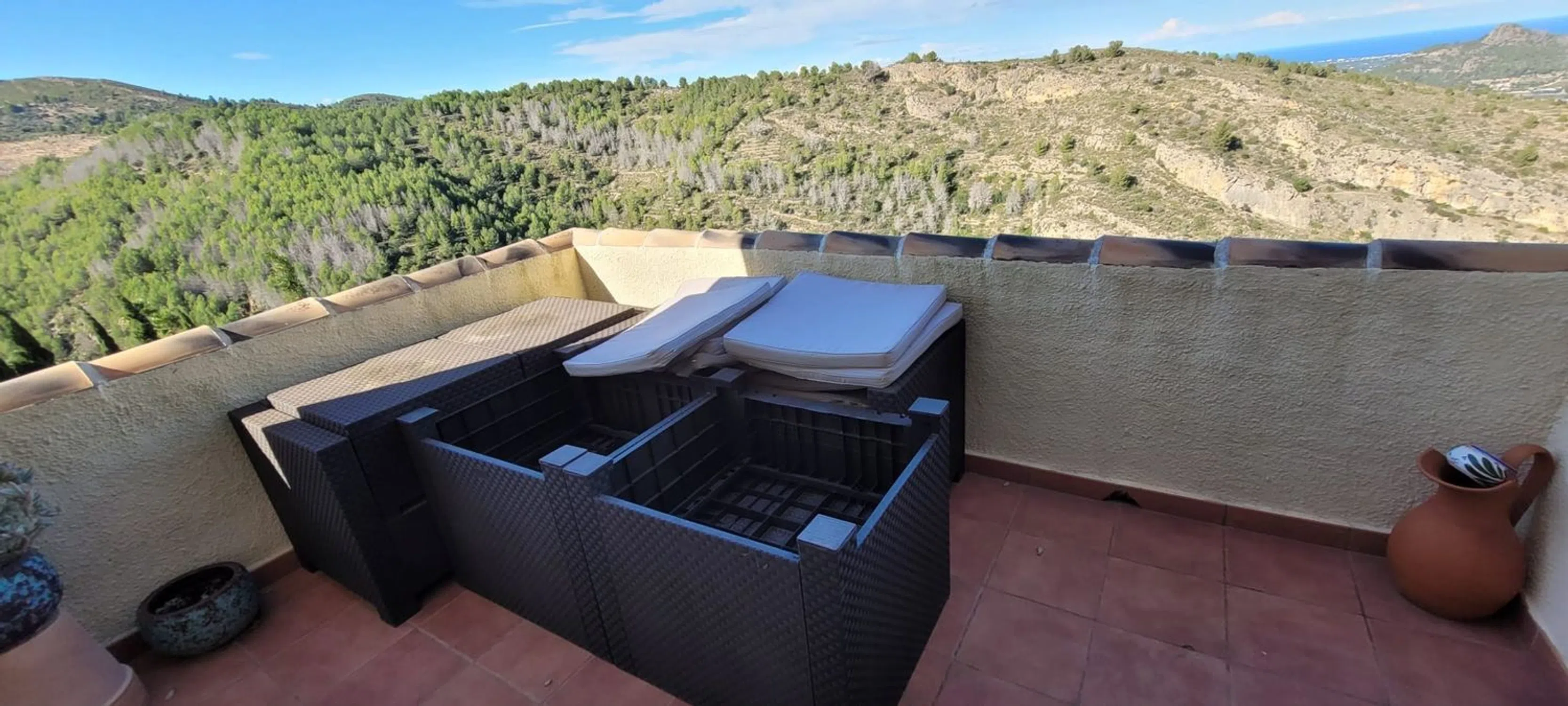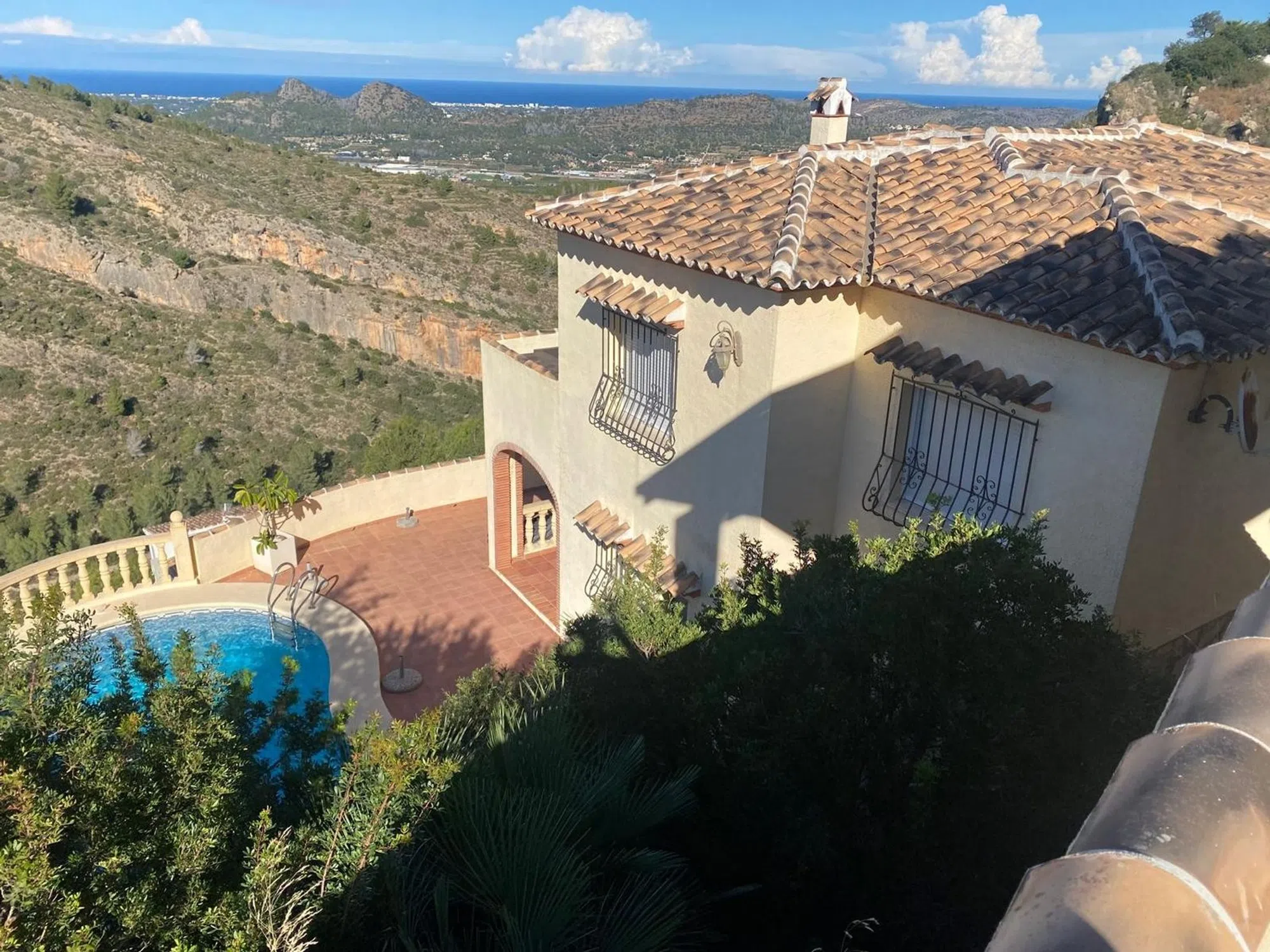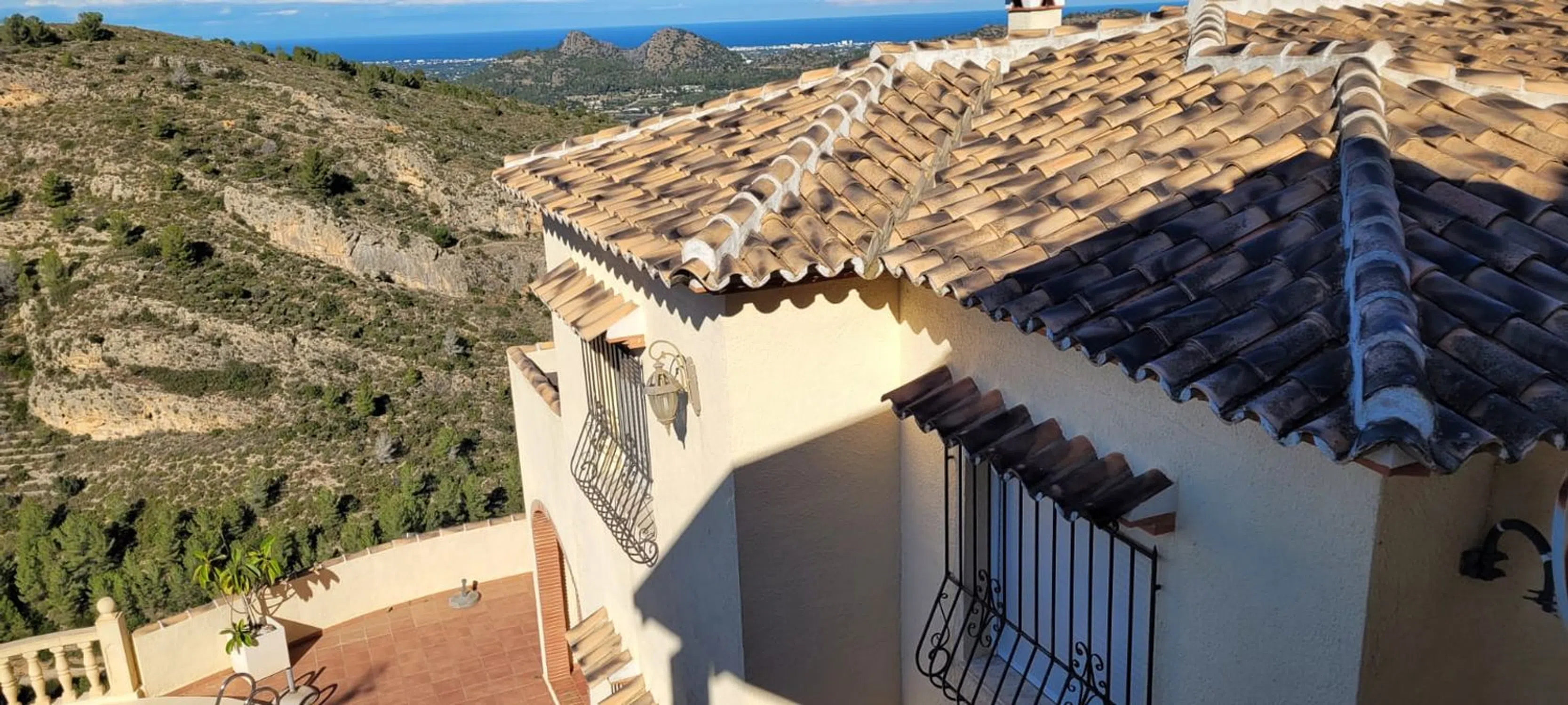 Exclusivo en Compare Properties España – Impresionante residencia que combina confort, privacidad y espectaculares vistas panorámicas tanto al mar como a las montañas circundantes. Situada en una amplia parcela de 655 m² con 180 m² construidos, esta vivienda ofrece un equilibrio perfecto entre espacios interiores amplios y acogedores exteriores. Un gran aparcamiento privado recibe a los visitantes en la entrada, con capacidad para dos coches o incluso una autocaravana. La vivienda principal se abre directamente a la zona de la piscina, creando un estilo de vida interior–exterior ideal para relajarse o recibir invitados. La planta baja alberga la serena suite principal, que incluye un amplio baño en suite y una impresionante ventana panorámica que enmarca vistas espectaculares al mar y a la montaña. Esta suite se conecta con un encantador espacio de entrada que conduce directamente a la piscina, reforzando la sensación de amplitud y conexión con el exterior. En la planta superior se encuentran dos dormitorios dobles de generosas dimensiones, cada uno lo suficientemente amplio para una cama king-size y con sus propias vistas impresionantes. Un moderno baño con ducha da servicio a esta planta. El corazón del hogar es el cálido y acogedor salón, que cuenta con una chimenea de gran tamaño. El salón se integra de manera fluida con el comedor y continúa hacia una espaciosa cocina de concepto abierto, ofreciendo comodidad y funcionalidad para el día a día. Entre otras características destacan un lavadero independiente y aire acondicionado frío-calor en toda la vivienda, garantizando confort durante todo el año. Con su distribución excepcional, habitaciones amplias, vistas panorámicas y atractivos espacios exteriores, esta propiedad representa una oportunidad única para quienes buscan un hogar hermoso en una ubicación privilegiada.