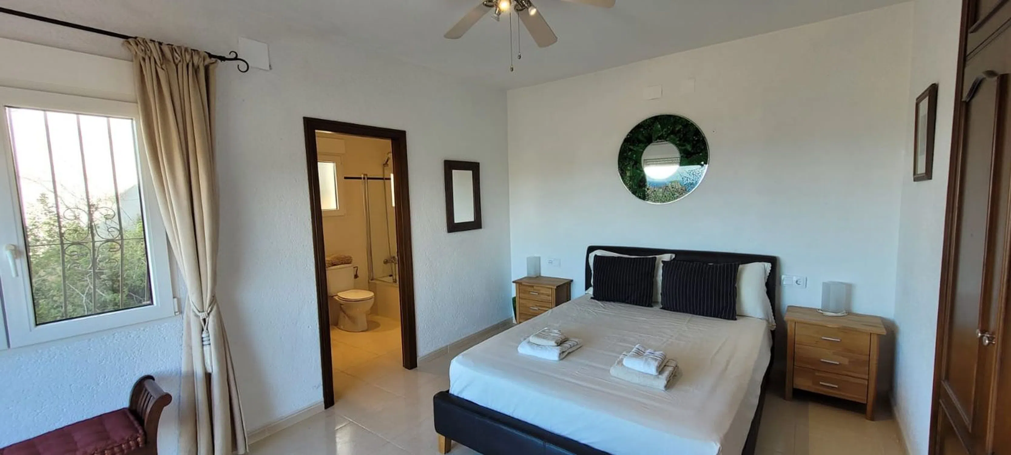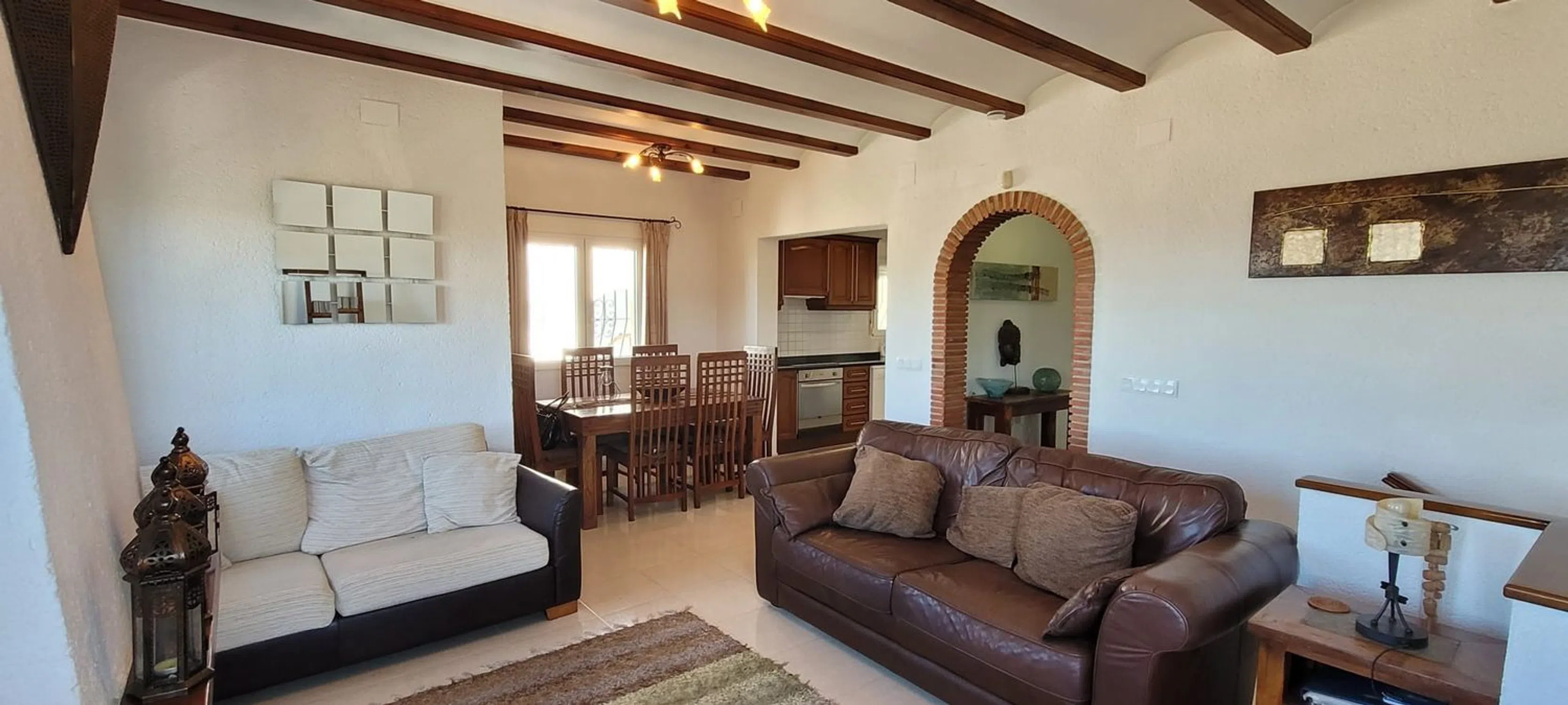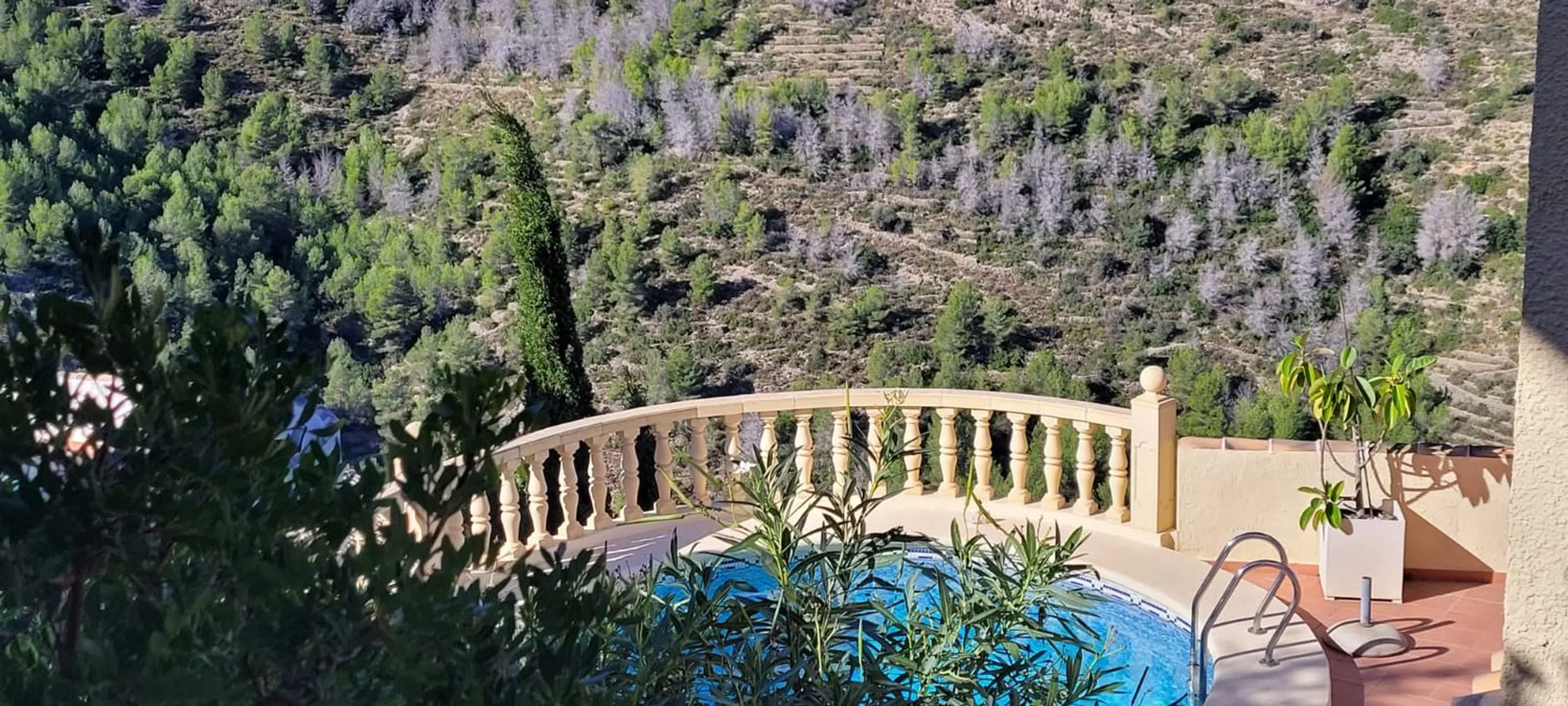 Exclusivo en Compare Properties España – Impresionante residencia que combina confort, privacidad y espectaculares vistas panorámicas tanto al mar como a las montañas circundantes. Situada en una amplia parcela de 655 m² con 180 m² construidos, esta vivienda ofrece un equilibrio perfecto entre espacios interiores amplios y acogedores exteriores. Un gran aparcamiento privado recibe a los visitantes en la entrada, con capacidad para dos coches o incluso una autocaravana. La vivienda principal se abre directamente a la zona de la piscina, creando un estilo de vida interior–exterior ideal para relajarse o recibir invitados. La planta baja alberga la serena suite principal, que incluye un amplio baño en suite y una impresionante ventana panorámica que enmarca vistas espectaculares al mar y a la montaña. Esta suite se conecta con un encantador espacio de entrada que conduce directamente a la piscina, reforzando la sensación de amplitud y conexión con el exterior. En la planta superior se encuentran dos dormitorios dobles de generosas dimensiones, cada uno lo suficientemente amplio para una cama king-size y con sus propias vistas impresionantes. Un moderno baño con ducha da servicio a esta planta. El corazón del hogar es el cálido y acogedor salón, que cuenta con una chimenea de gran tamaño. El salón se integra de manera fluida con el comedor y continúa hacia una espaciosa cocina de concepto abierto, ofreciendo comodidad y funcionalidad para el día a día. Entre otras características destacan un lavadero independiente y aire acondicionado frío-calor en toda la vivienda, garantizando confort durante todo el año. Con su distribución excepcional, habitaciones amplias, vistas panorámicas y atractivos espacios exteriores, esta propiedad representa una oportunidad única para quienes buscan un hogar hermoso en una ubicación privilegiada.