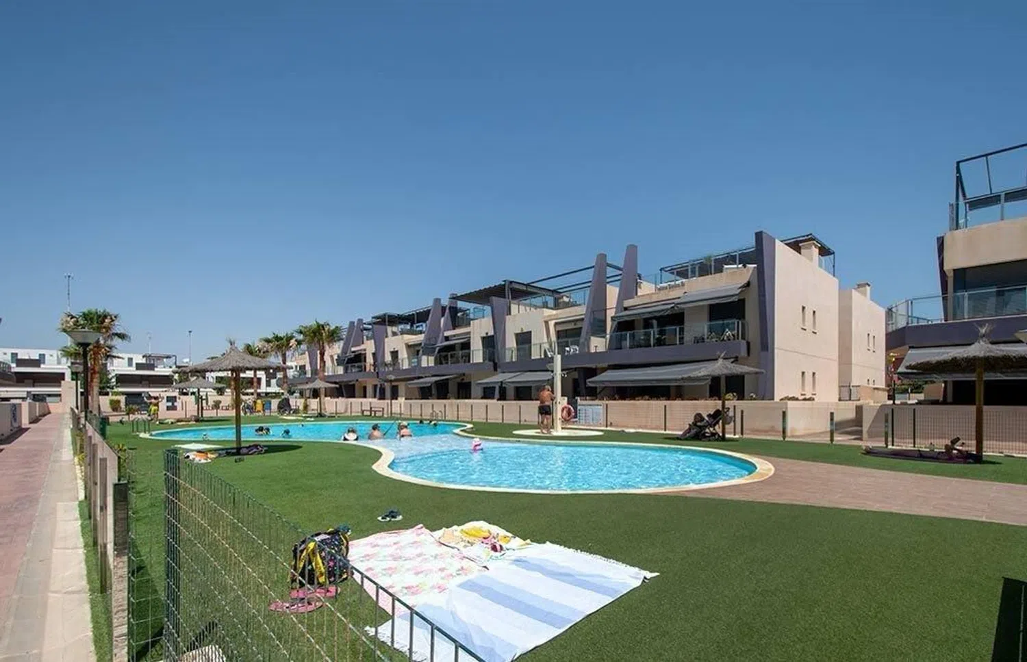 Bienvenidos a este hermoso ático a tan solo 300 metros de las playa de Higuericas, en Pilar de la Horadada. Con vistas al mar. Es un moderno apartamento de 3 dormitorios y 2 baños - uno en suite salón comedor, cocina abierta al salón, completamente equipada y una amplia terraza con vistas a la zona comunitaria del residencial. Cuenta con solarium de 80 m2 con vistas al mar, perfecto para tomar el sol en privado o relajarse. Se vende amueblado y con aire acondicionado. Dispone de piscina comunitaria en residencial y jardines, además de zona infantil. Concertar una visita.