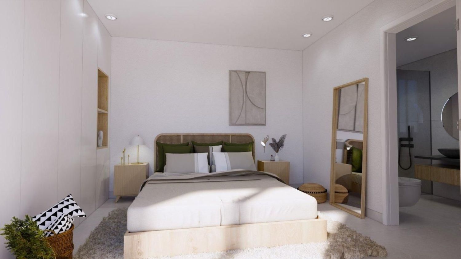 El espacio habitable se compone de un luminoso salón-comedor y una cocina completamente equipada, donde las grandes puertas correderas conectan perfectamente el interior con el exterior. Los dormitorios están equipados con armarios empotrados para maximizar el almacenamiento, y los baños cuentan con calefacción por suelo radiante, garantizando confort en todo momento. Cada propiedad incluye instalación de aire acondicionado y una plaza de aparcamiento privada.