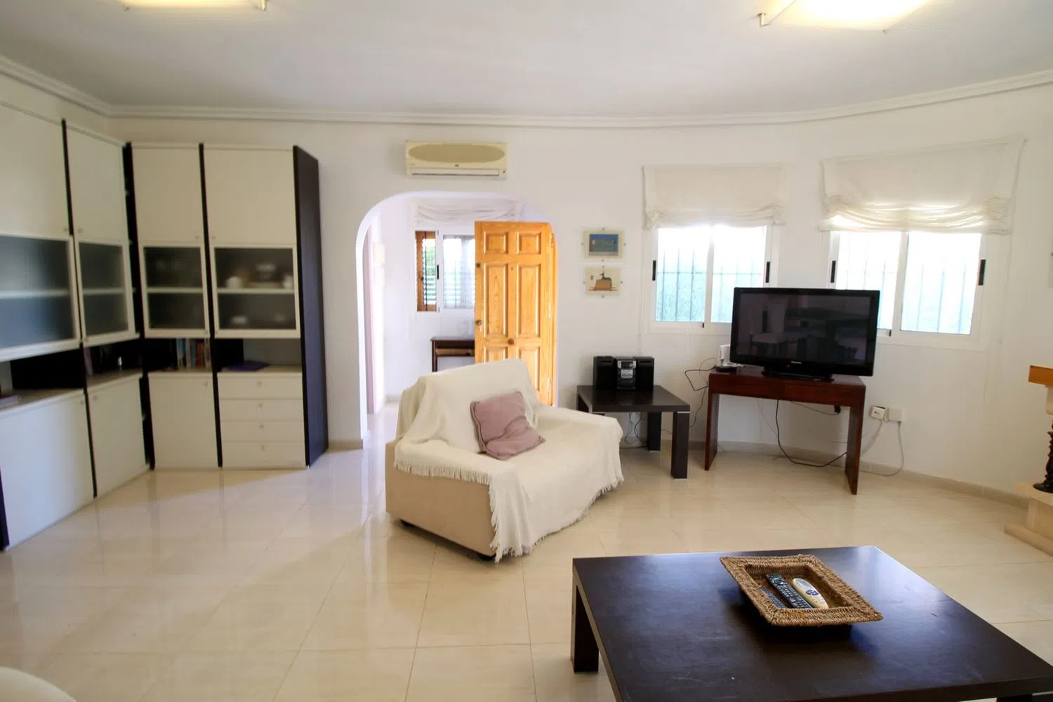 En el exterior, encontrarás una amplia terraza que invita a disfrutar del clima mediterráneo, así como una piscina privada para esos días soleados en los que deseas refrescarte. Además, la villa cuenta con aire acondicionado, proporcionando un ambiente fresco y agradable durante todo el año.