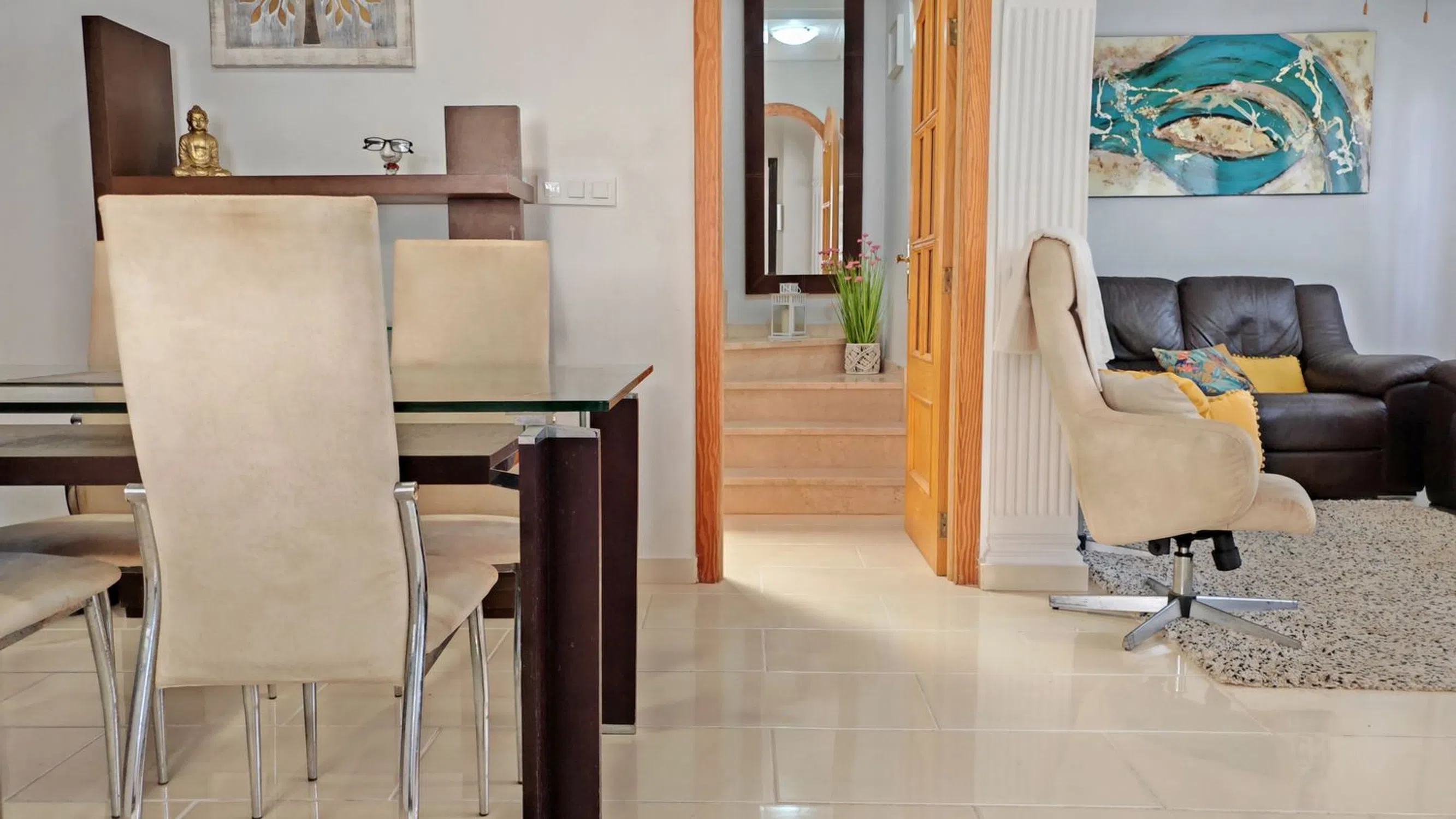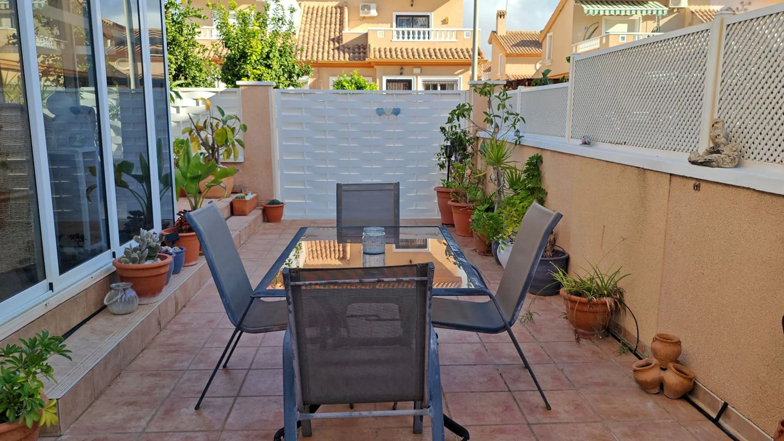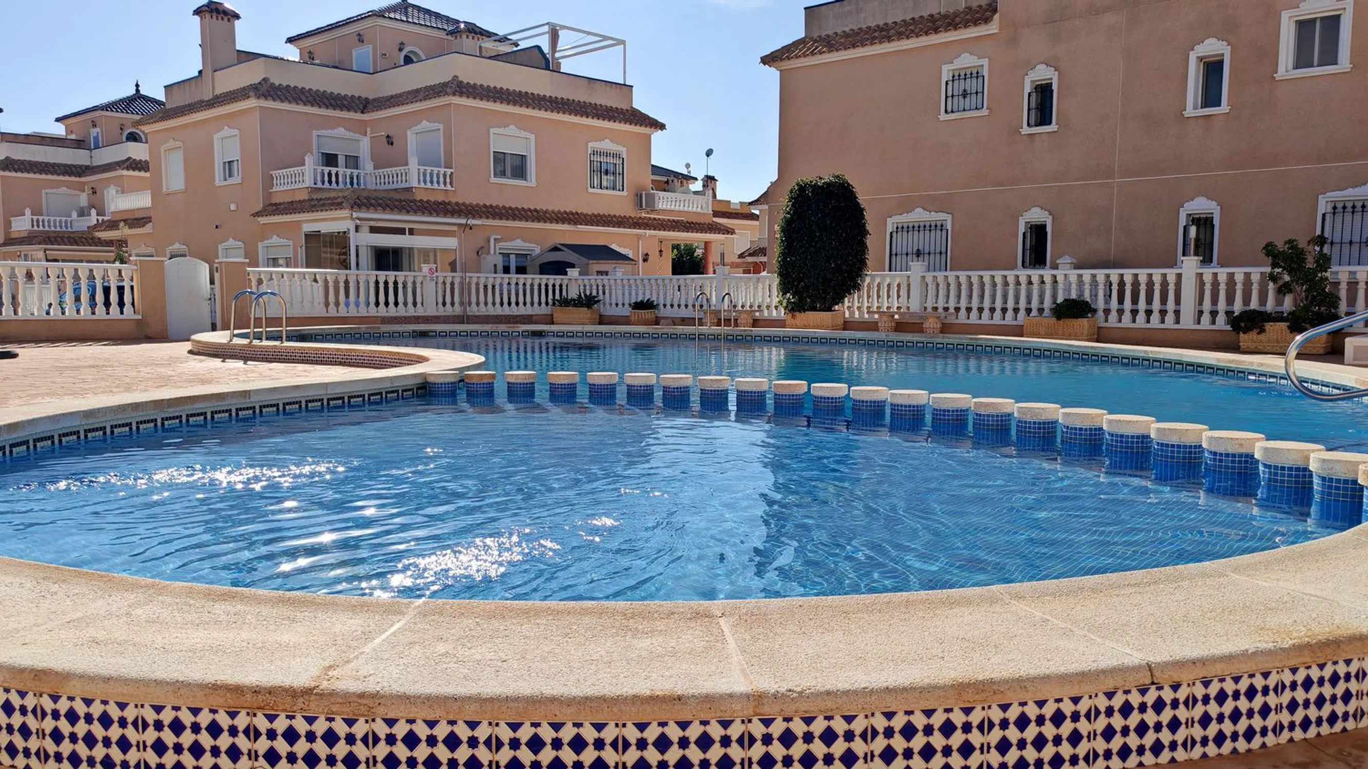 PRECIOSO DÚPLEX CON PISCINA COMUNITARIA EN TORRE DE LA HORADADA ¡Tenemos buenísimas noticias! Mira qué Dúplex tan bonito sale a la venta en Torre de la Horadada. Se encuentra ubicado nada más bajar el puente, una urbanización residencial muy tranquila, con Piscina Comunitaria, y a menos de 900 metros de las playas de Torre de la Horadada. La vivienda tiene su acceso por la Calle de Colón, una calle tranquila por donde sólo circulan vecinos, así que olvídate del ruido de los coches… ¡es genial! Y para ir a la piscina comunitaria sólo tienes que seguir por la misma acera de la vivienda, unos metros más adelante, hasta dar con el pasillo que conecta con la piscina. Al entrar, te encuentras con un porche de buen tamaño, lo suficiente para poder meter tu coche, organizar cenitas con amigos y familia, y disfrutar del buen tiempo de esta zona. Y ahora, vayamos dentro de la vivienda, porque si has visto las fotos seguro que te ha llamado la atención. La vivienda está MUY BIEN CONSERVADA, renovada, cuidada al detalle, donde en la planta baja hay un amplio salón, la cocina, y un baño. Si subimos a la primera planta, aquí nos encontramos con 2 dormitorios de buen tamaño con sus armarios empotrados; y un baño completo con lucernario eléctrico. ¿Sabes una cosa muy buena? Los 2 dormitorios tienen salida a un balcón común. Y, por último, en la segunda planta hay un solárium bastante grande. Así que, si eres de los que les gusta tomar el sol, aquí tienes para tomar todo el que tú quieras. ¡Esta vivienda es una pasada! Así que si estás buscando este tipo de vivienda en Torre de la Horadada, llámanos ya mismo para agendar una visita… seguro que te encanta. Llámanos al o escríbenos a.