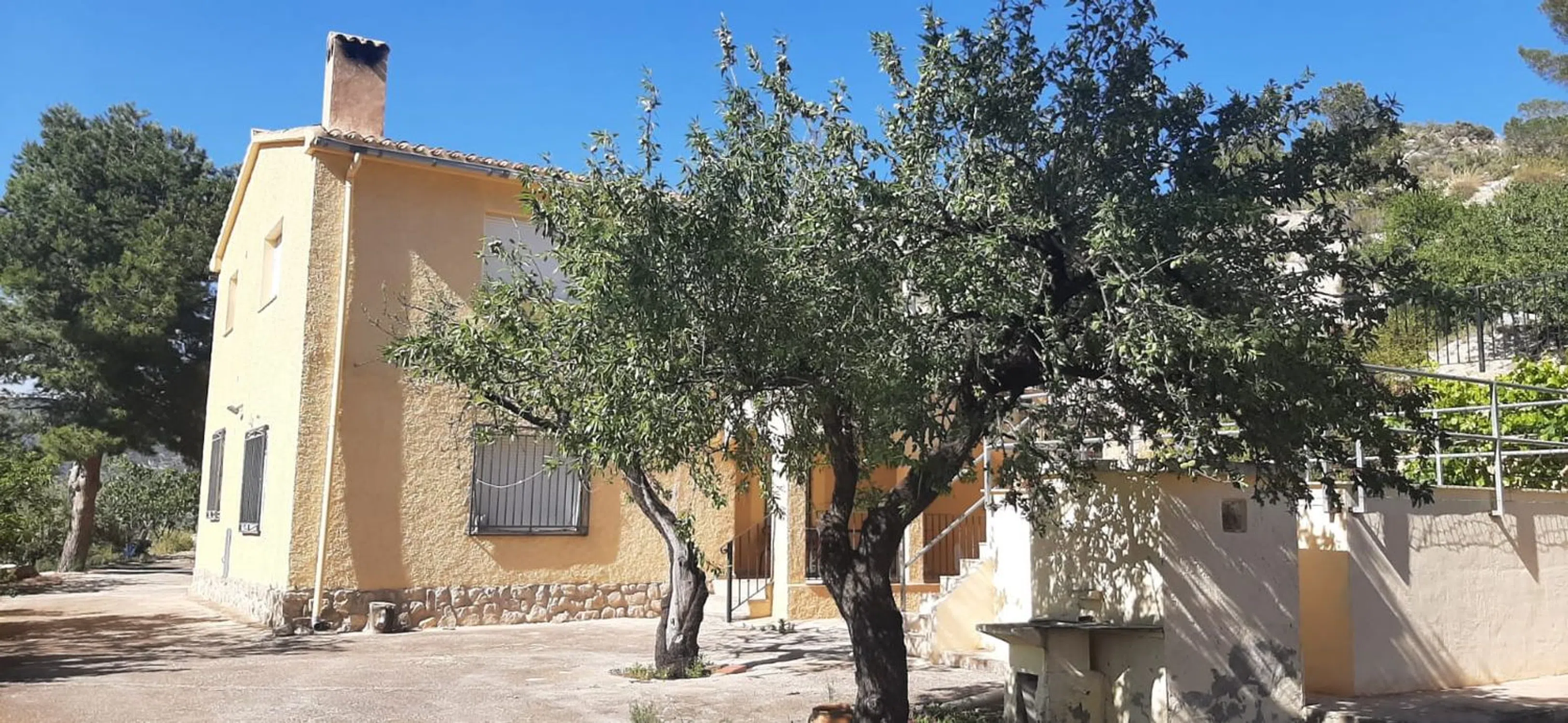 Excelente casa de campo - chalet en Relleu. Situado a solo 5 minutos en coche del pueblo y con fácil acceso desde la carretera principal pues el camino está asfaltado hasta la misma propiedad. Terreno con 29138 m2 y gran superficie construida 160 m2. La propiedad está distribuida en 2 plantas y físicamente son 2 casas completamente independientes. Ambas cuentan con porche techado, salón comedor con chimenea, cocina independiente, cuarto de baño completo y 3 dormitorios dobles. En el exterior encontramos 2 garajes, barbacoa y horno de leña y pequeña piscina para el uso y recreo infantil. A destacar de esta propiedad que cuenta con agua corriente del pueblo y electricidad y cuenta además con pozo propio con gran deposito de agua en uso para el riego de todos los arboles (olivos y almendros) plantados en el terreno. Cuenta demás con otras instancias dedicadas al apero de utillaje propio del campo. Si tiene una gran familia o le gusta recibir visitas y busca una zona tranquila en la que vivir o pasar fines de semanas y vacaciones no deje de visitarla sin compromiso alguno.