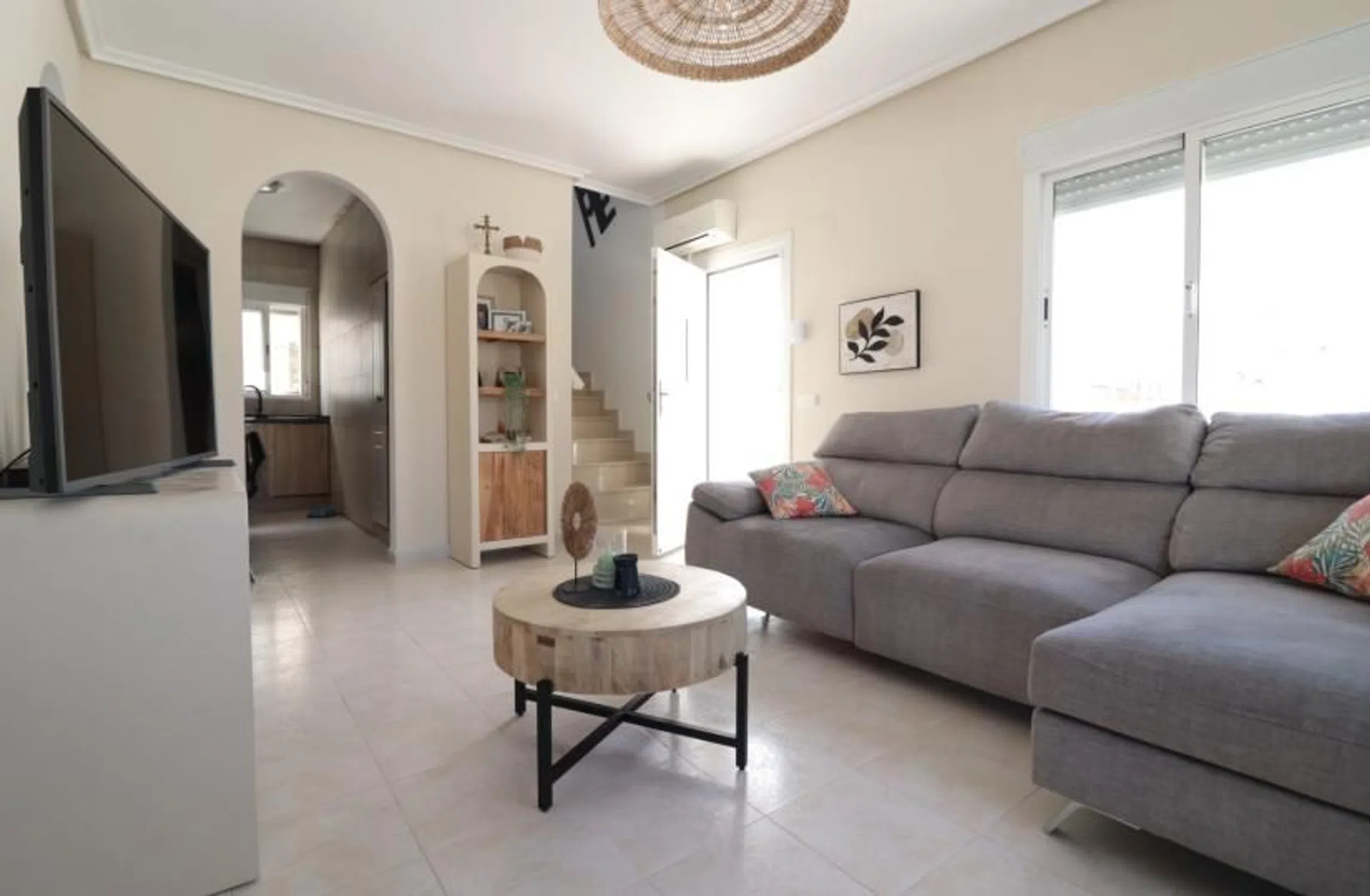 Villa de 2 dormitorios y 2 baños en Rojales (Benimar II), Alicante. Descubra esta encantadora villa independiente enclavada en el corazón de Benimar II, Rojales. Con una ubicación ideal en una vibrante comunidad, a solo cinco minutos a pie de una variedad de animados bares, tiendas y restaurantes, incluyendo un McDonald's convenientemente ubicado junto a un pintoresco lago y parque. Los amantes del golf apreciarán la proximidad al campo de golf La Marquesa, a solo 5-10 minutos en coche, mientras que las impresionantes playas de la Costa Blanca Sur se encuentran a 10 minutos, lo que la convierte en una ubicación ideal tanto para el ocio como para el estilo de vida. La villa ofrece una cómoda distribución con dos dormitorios y dos baños, con un total de 88 m² de espacio habitable bien diseñado en una parcela de 300 m² de fácil mantenimiento. La planta baja le da la bienvenida con un acogedor salón con estufa de pellets, perfecto para las noches más frescas, y un amplio arco que conduce al comedor con puertas de doble acristalamiento que dan directamente al jardín. La cocina independiente y totalmente equipada ofrece practicidad y comodidad. Un dormitorio doble y un baño familiar completan esta planta. En la planta superior, el dormitorio principal doble cuenta con ventilador de techo, baño en suite con ducha y acceso directo a una terraza privada. Desde aquí, podrá disfrutar de impresionantes vistas a la montaña y encantadoras puestas de sol, un lugar ideal para relajarse por la noche. Los espacios exteriores incluyen una piscina privada con césped artificial, perfecta para los días de verano, junto con una zona ajardinada con superficies principalmente embaldosadas que requieren un mantenimiento mínimo. Otras características incluyen aparcamiento privado, armarios empotrados y aire acondicionado en toda la vivienda, lo que garantiza comodidad durante todo el año. La propiedad también cuenta con una piscina comunitaria, que ofrece opciones de ocio adicionales, y medidas de seguridad como un sistema de alarma. Construida en 2003, esta casa combina comodidades prácticas con una ubicación privilegiada, lo que la convierte en una magnífica oportunidad para quienes buscan una residencia familiar o un refugio vacacional en la codiciada zona de Benimar, en la Costa Blanca Sur. Dormitorios: 2 Baños: 2 Superficie construida: 88 m² Parcela: 300 m² Orientación: Oeste Año de construcción: 2003 Aire acondicionado Quemador de pellets Trastero Terraza Jardín Alarma Piscina privada Piscina comunitaria Aparcamiento.