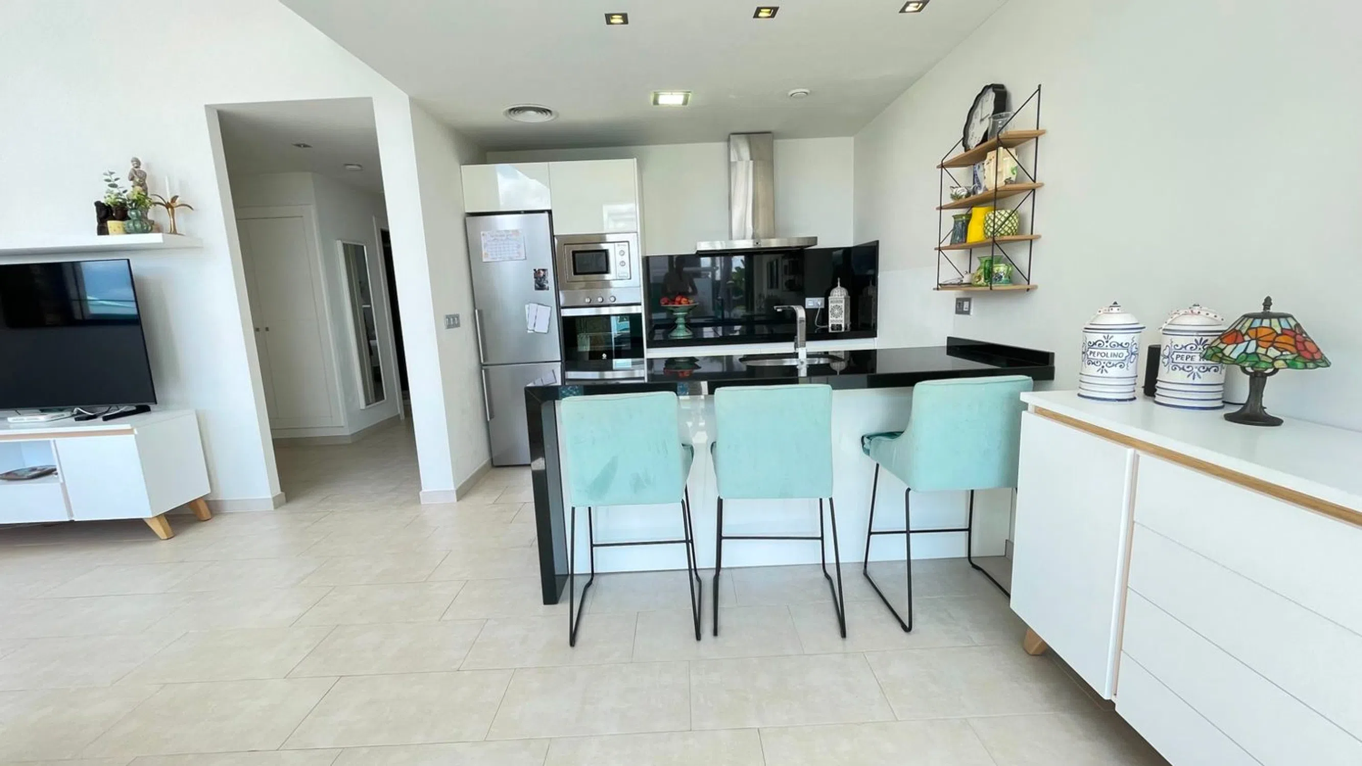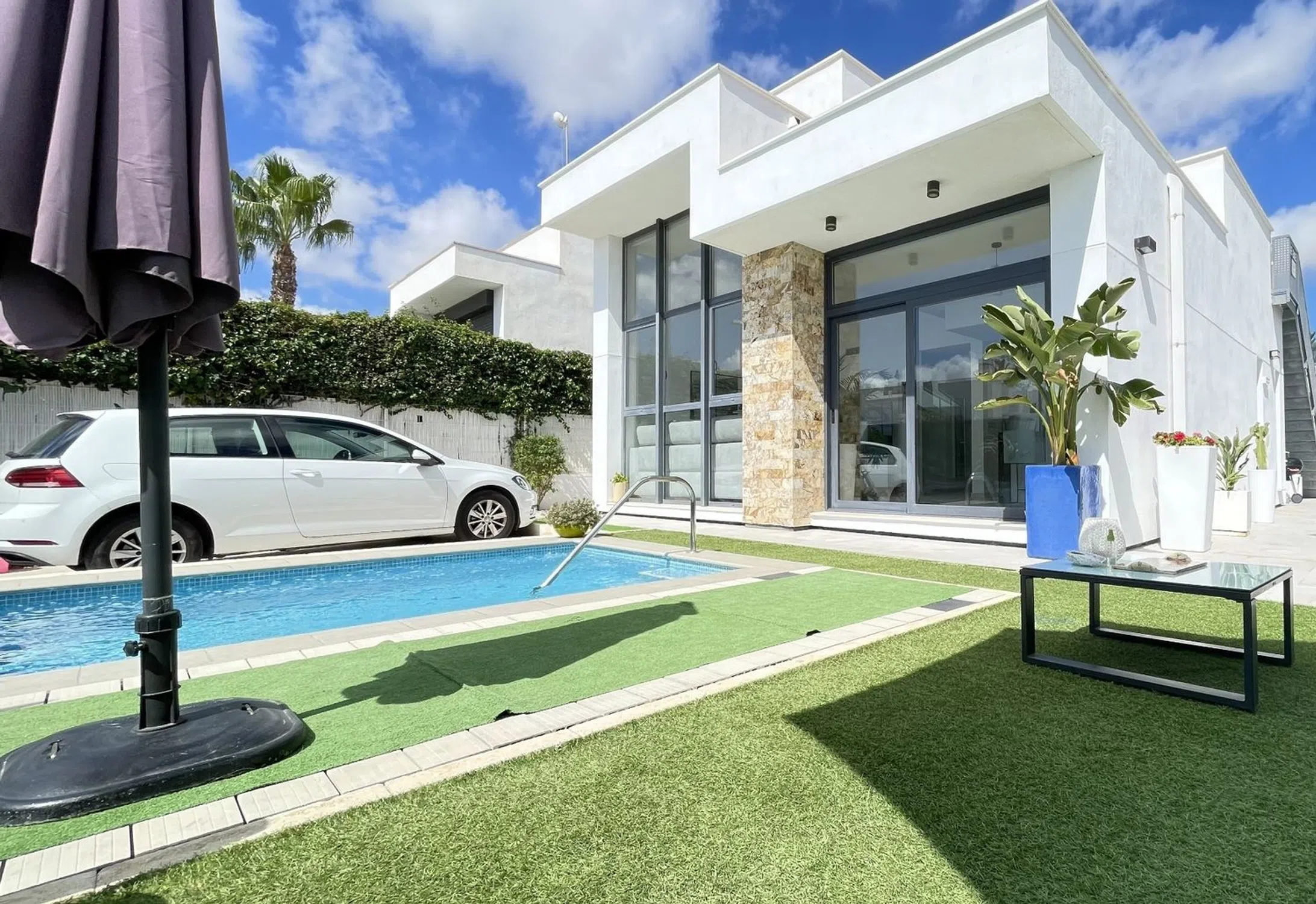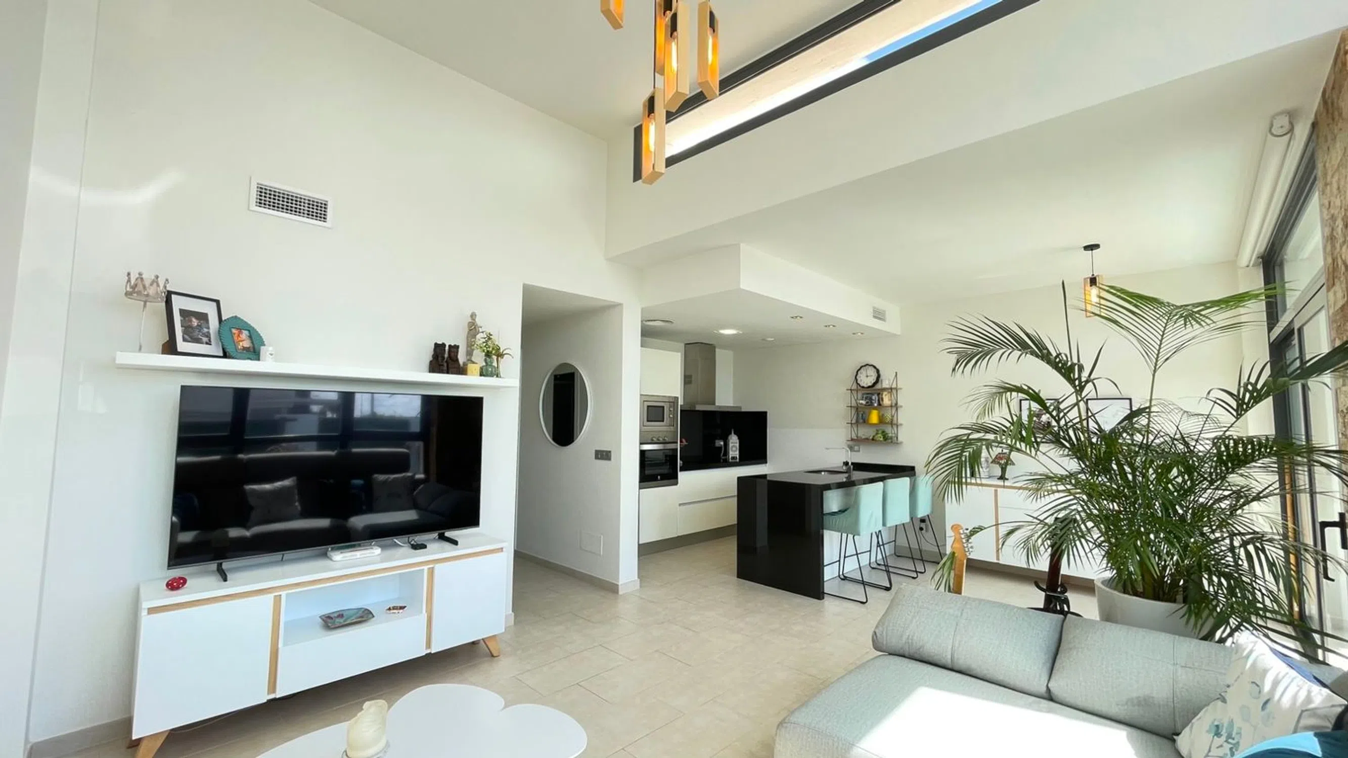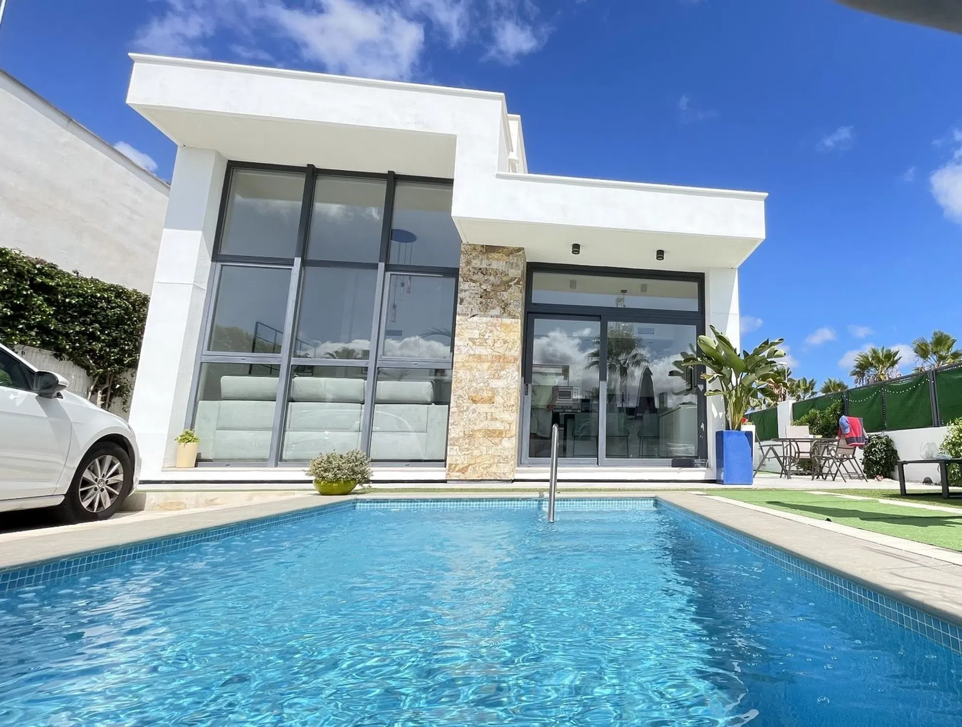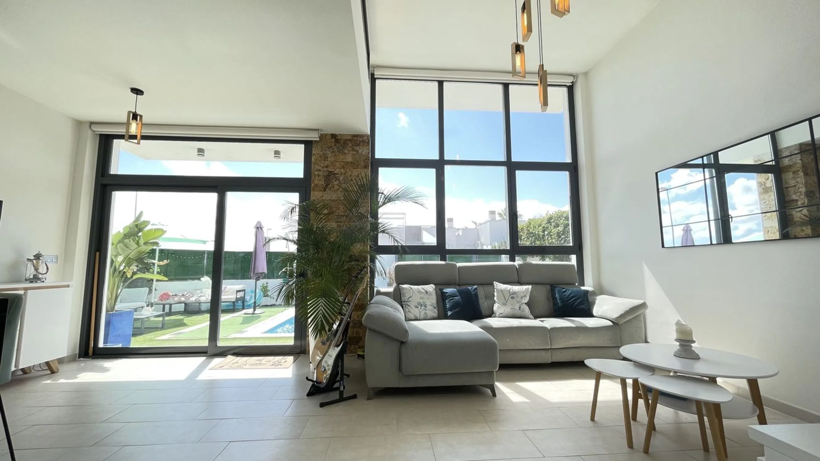 Villa de una sola planta con 2 dormitorios, 2 baños y solarium Orientación suroeste Parcela esquinera Totalmente equipada y amueblada Diseño moderno con techos altos y grandes ventanales Ubicación privilegiada a un paseo de todos los servicios Playa de Guardamar a 6 km Golf La Marquesa a 3 km Centro de Ciudad Quesada a 2 km Aeropuerto de Alicante a 40 km.