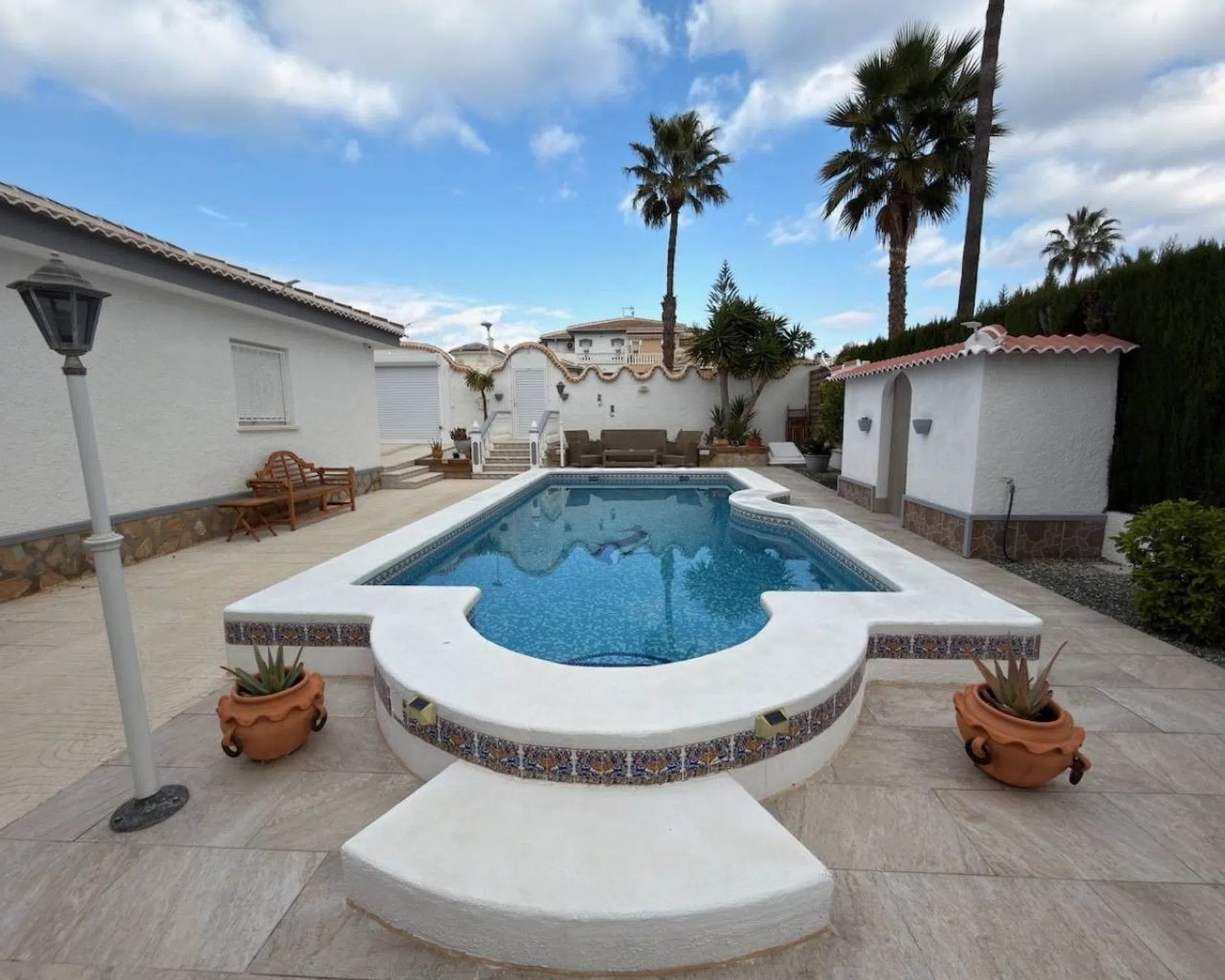 Villa de Lujo de 3 Dormitorios en Venta en Ciudad Quesada, Costa Blanca Referencia: SLP2744 | Precio: 475.000 € | Estado: Reventa Descubra esta magnífica villa en venta en Ciudad Quesada, situada en una de las zonas más demandadas de la Costa Blanca, Alicante. Esta propiedad de reventa en excelente estado ofrece una combinación perfecta de comodidad, privacidad y estilo de vida mediterráneo, ideal como vivienda habitual, casa de vacaciones o inversión inmobiliaria en España. Espacios Amplios y Luminosos con Diseño Moderno La villa cuenta con un elegante salón-comedor de concepto abierto, diseñado para aprovechar al máximo la luz natural. La cocina americana, totalmente equipada con electrodomésticos incluidos, combina funcionalidad y diseño moderno, perfecta para la vida diaria y para recibir invitados. El salón dispone de chimenea, aportando calidez y carácter, mientras que el aire acondicionado y los ventiladores de techo garantizan confort durante todo el año. La vivienda es orientación este, ideal para disfrutar del sol de la mañana y de temperaturas agradables. 3 Dormitorios y 3 Baños – Comodidad y Privacidad Esta villa de 3 dormitorios en Ciudad Quesada dispone de armarios empotrados en las habitaciones, ofreciendo amplio espacio de almacenamiento. Los 3 baños modernos proporcionan comodidad y privacidad tanto para la familia como para los invitados. Piscina Privada, Jardines y Zonas Exteriores En el exterior encontrará una espectacular piscina privada, con agradables vistas a la piscina, rodeada de jardines privados ideales para relajarse, tomar el sol o disfrutar de comidas al aire libre. La propiedad incluye un cuarto de lavandería (utility room), garaje y aparcamiento privado dentro de la parcela, aportando comodidad y seguridad. Los muebles son negociables, permitiendo adaptar la vivienda a sus necesidades. A Poca Distancia de Todos los Servicios Una de las grandes ventajas de esta villa es su ubicación, a poca distancia a pie de todos los servicios: supermercados, restaurantes, bares, centros médicos y zonas de ocio. Ciudad Quesada es conocida por su comunidad internacional, su ambiente relajado y su excelente infraestructura. Ubicación Privilegiada en la Costa Blanca Situada en la Costa Blanca (Alicante), Ciudad Quesada ofrece: Playas de Guardamar del Segura a solo 10 minutos Campo de golf La Marquesa muy cercano Aeropuerto de Alicante a unos 35 minutos en coche Fácil acceso a centros comerciales, colegios internacionales y servicios médicos El clima mediterráneo de la zona es reconocido por su calidad y bienestar durante todo el año. Características Principales 3 Dormitorios | 3 Baños Villa de Reventa en Excelente Estado Piscina Privada Salón-Comedor de Concepto Abierto Cocina Americana con Electrodomésticos Chimenea Aire Acondicionado y Ventiladores de Techo Armarios Empotrados Jardines Privados Garaje y Aparcamiento Privado Cuarto de Lavandería Orientación Este Muebles Negociables A Pie de Servicios Una Oportunidad Única en Ciudad Quesada Esta villa en venta en Ciudad Quesada, Costa Blanca, representa una excelente oportunidad para quienes buscan calidad, ubicación y estilo de vida en España. Perfecta tanto para vivir todo el año como para disfrutar de una segunda residencia o realizar una inversión segura.