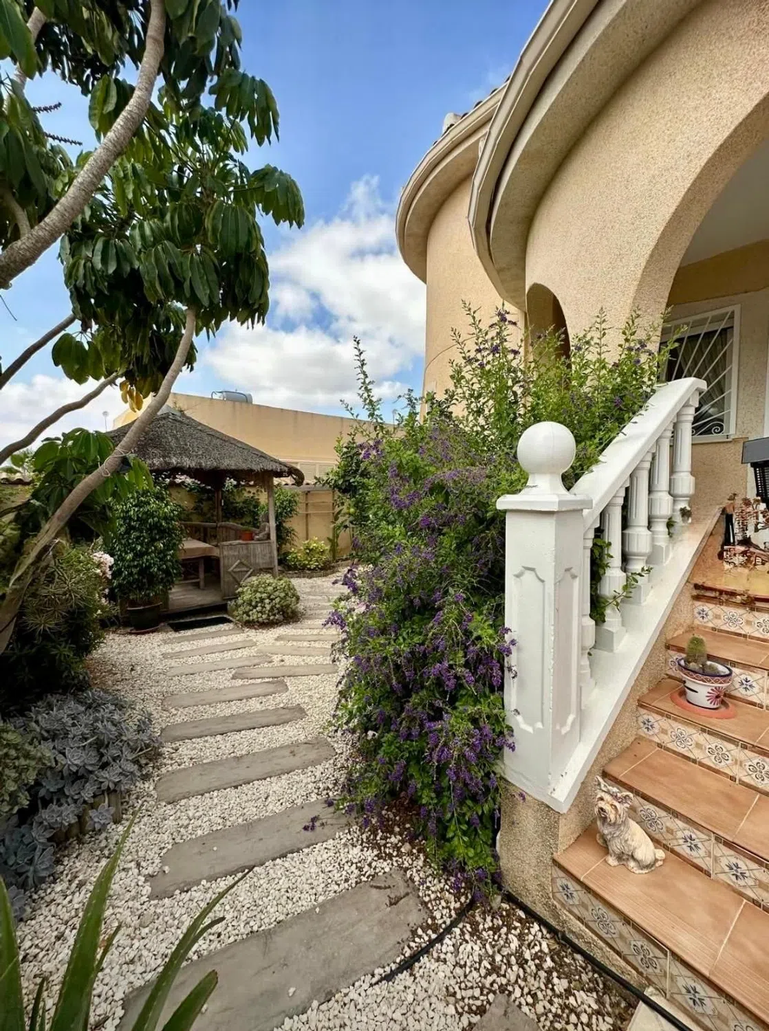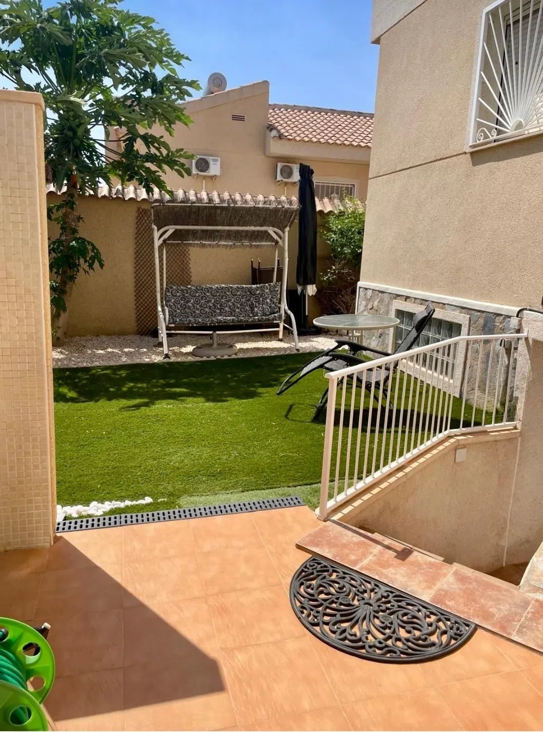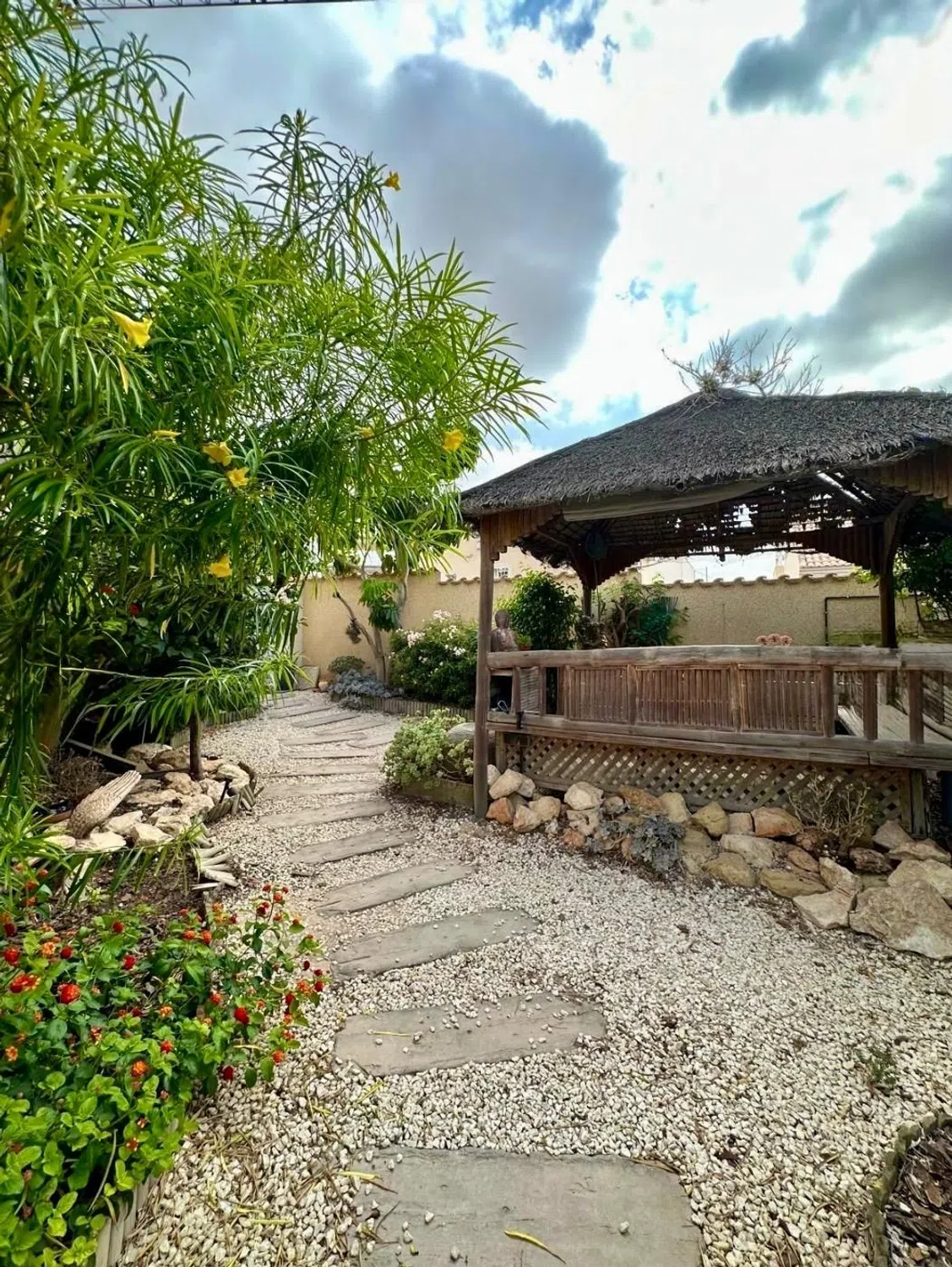 Descubre este excepcional chalet independiente de 109 m², diseñado para ofrecer funcionalidad y un estilo acogedor que hará las delicias de cualquier familia. Con tres amplias habitaciones, dos baños completos, una cocina completamente equipada y un luminoso salón-comedor ideal para reuniones familiares o momentos relajantes. Además, en la misma parcela encontrarás un estudio independiente de 64 m² que incluye una habitación adicional, baño completo y cocina; perfecto como espacio extra para invitados o incluso alquiler a corto plazo. El exterior no se queda atrás: disfruta de tu propio jardín privado donde podrás pasar agradables tardes al aire libre. La propiedad cuenta también con caseta de jardín, portón eléctrico para mayor seguridad, trastero independiente y capacidad suficiente para aparcar hasta dos vehículos sin inconvenientes. Su excelente orientación gracias a su ubicación en esquina te permitirá disfrutar del sol durante todo el día. Viene totalmente amueblada azulando así todas tus necesidades desde el primer momento. Situada cerca de todos los servicios esenciales como supermercados, restaurantes, centros médicos y zonas recreativas; esta propiedad representa una opción única e inmejorable en el mercado inmobiliario actual.