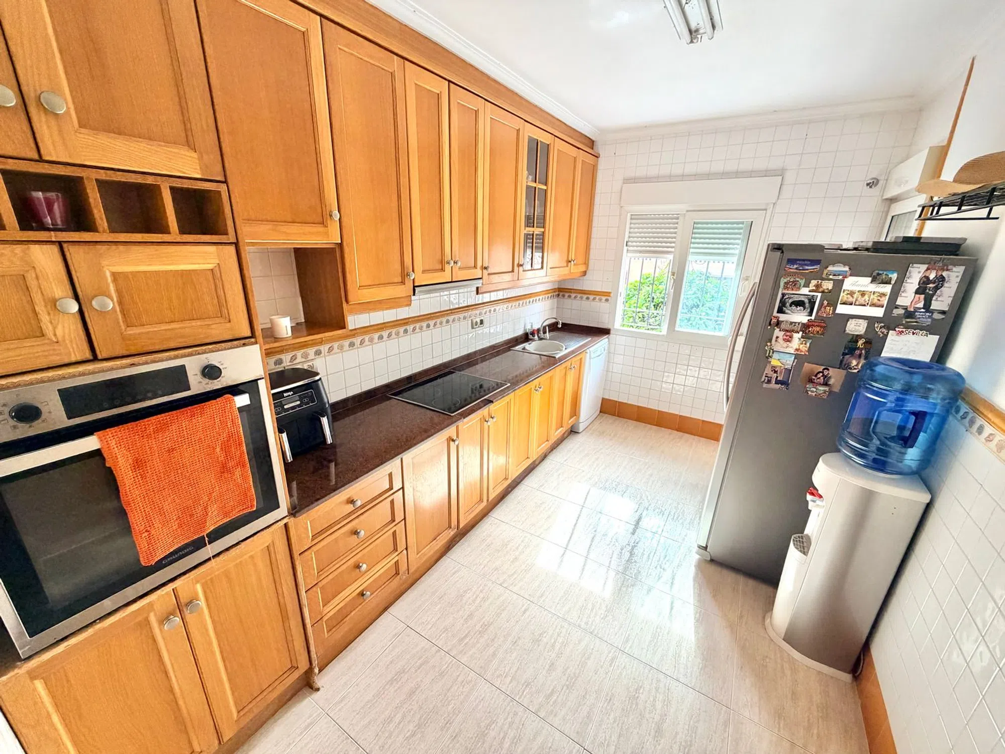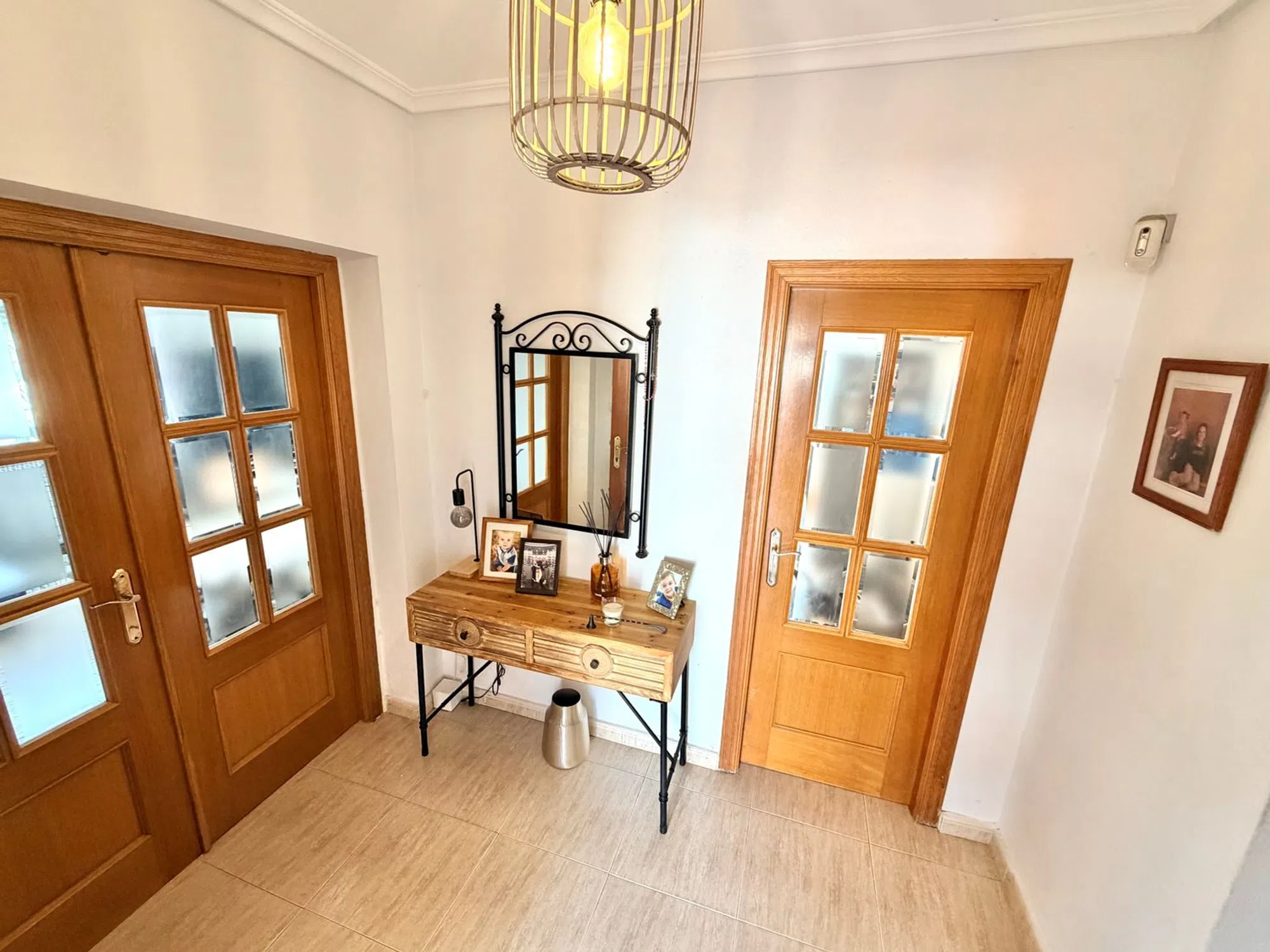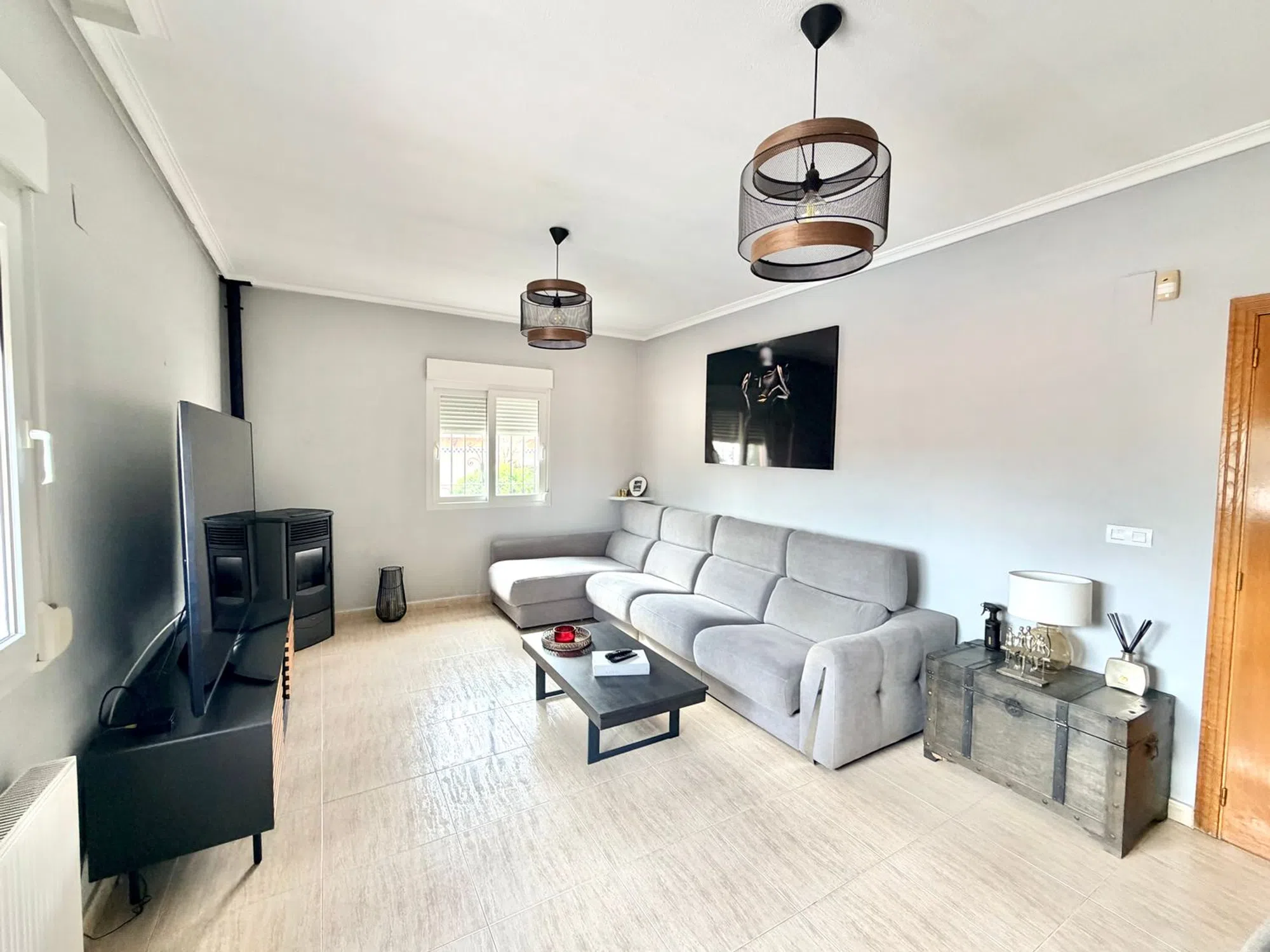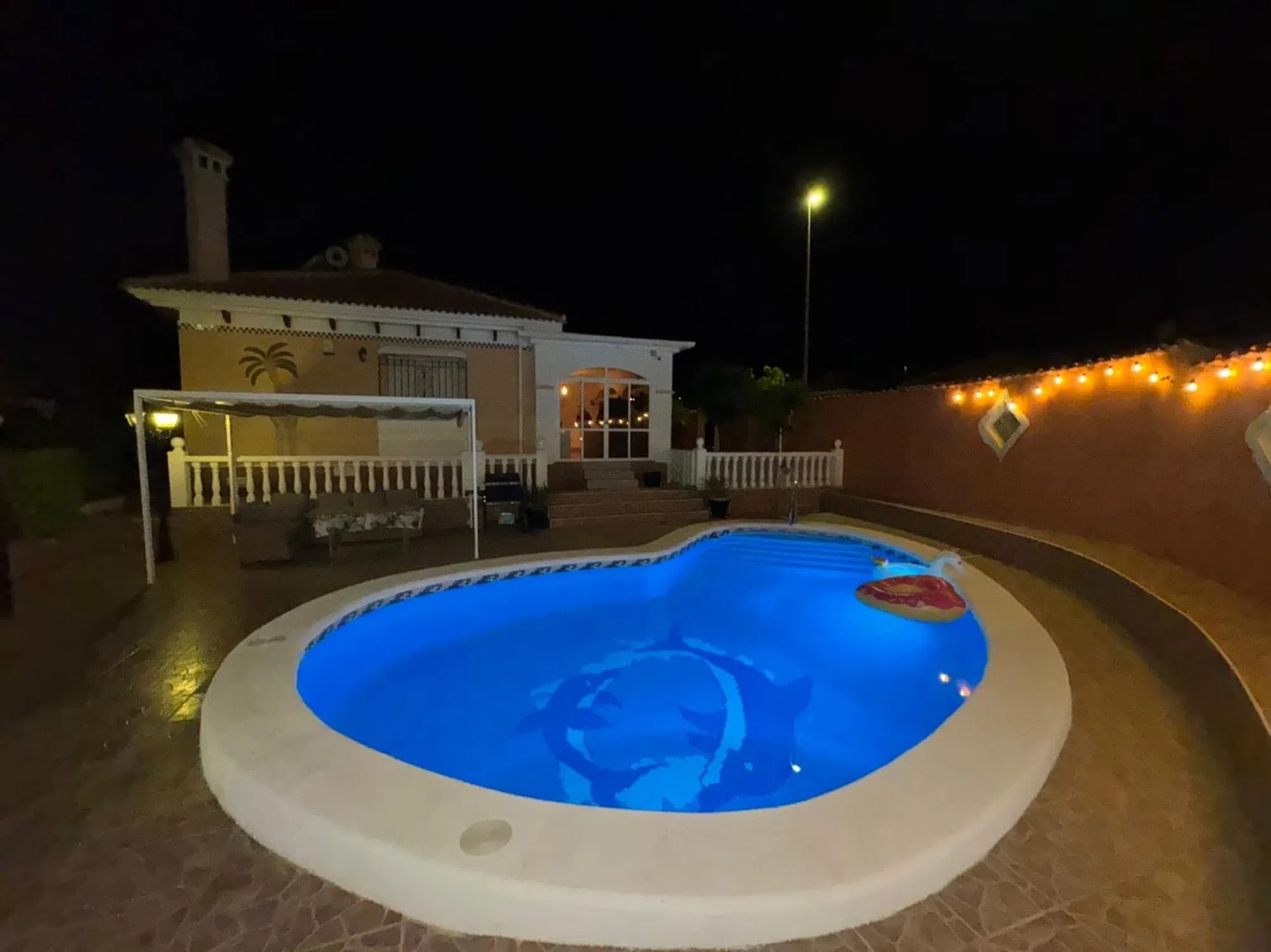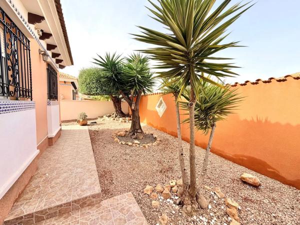 Presentamos con orgullo esta encantadora villa independiente con una fabulosa piscina privada y total privacidad. Esta magnífica villa independiente se encuentra en una espaciosa parcela esquinera, ofreciendo un entorno ideal para disfrutar del clima mediterráneo con la máxima privacidad. Al entrar en la propiedad, le sorprenderán los altos muros perimetrales que rodean una hermosa zona exterior con piscina privada, una caseta de verano de madera con jacuzzi, una zona de sombra, un comedor exterior con toldo retráctil, ducha junto a la piscina, un precioso jardín con naranjos y limoneros, un gran olivo y yucas. Una entrada adicional cuenta con una puerta corredera eléctrica y zonas ajardinadas con suelo de baldosas y grava, así como un cobertizo para almacenaje y un amplio porche acristalado, perfecto para relajarse durante todo el año. El interior de la villa cuenta con una acogedora recepción y un amplio salón-comedor equipado con aire acondicionado y estufa de pellets, que proporciona calidez y confort. Además, la propiedad dispone de calefacción central de gasoil con radiadores en toda la vivienda para los meses de invierno. La cocina, totalmente equipada, incluye vitrocerámica, campana extractora, horno, lavavajillas y lavadero con lavadora, además de acceso directo al jardín trasero y al fabuloso solárium. Un pasillo conduce a dos amplias habitaciones de invitados, una de ellas con aire acondicionado y ventilador de techo. La segunda habitación de invitados dispone de aire acondicionado, armario empotrado y ventilador de techo. El dormitorio principal cuenta con aire acondicionado, ventilador de techo, armarios empotrados y un baño en suite recién reformado con ducha a ras de suelo con mampara de cristal, un moderno mueble de lavabo con espejo y luces, y WC. El baño familiar se completa con bañera con ducha, bidé, WC y mueble de lavabo. Esta villa combina a la perfección comodidad, estilo y privacidad, ofreciendo un entorno tranquilo y bien cuidado. Ubicación ideal: a tan solo 5 minutos de la popular Plaza Consum y a 2 minutos de las pistas de tenis y pádel, lo que la convierte en una opción perfecta tanto para residencia permanente como para casa de vacaciones.