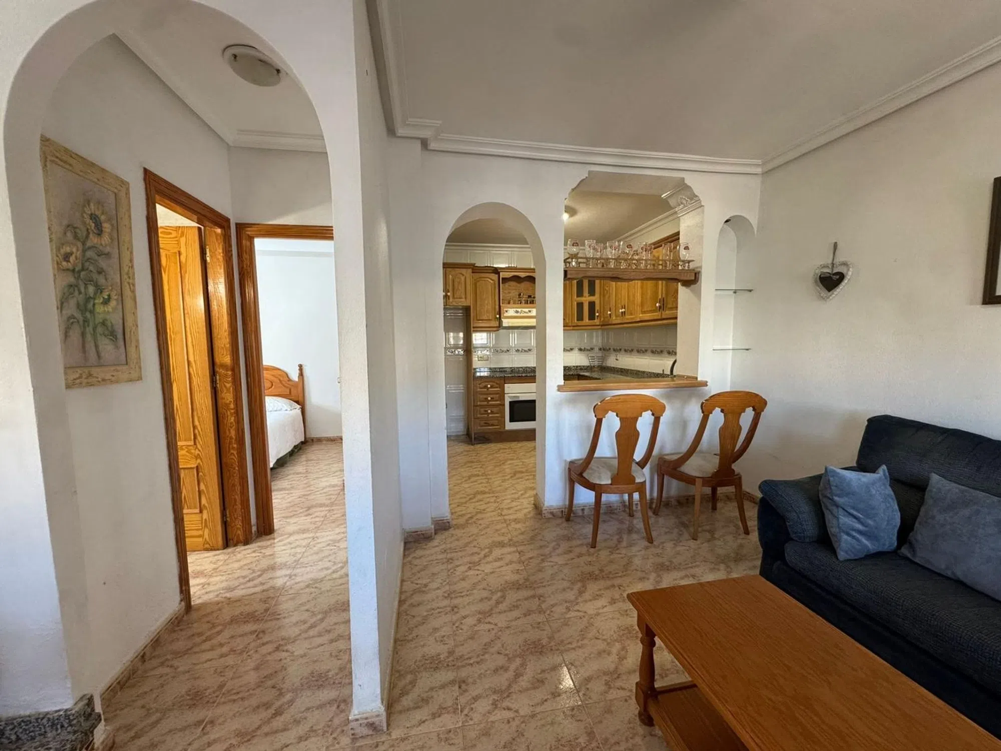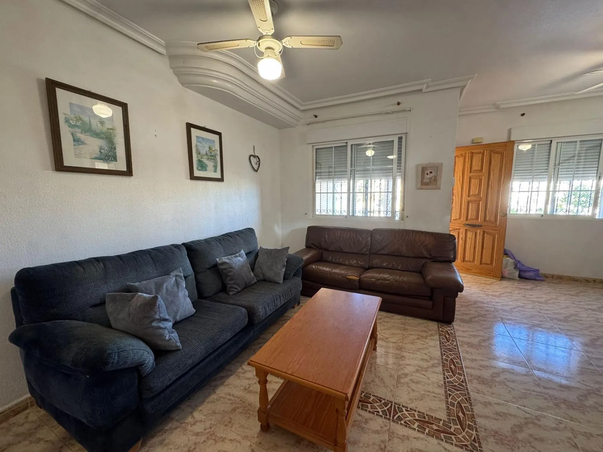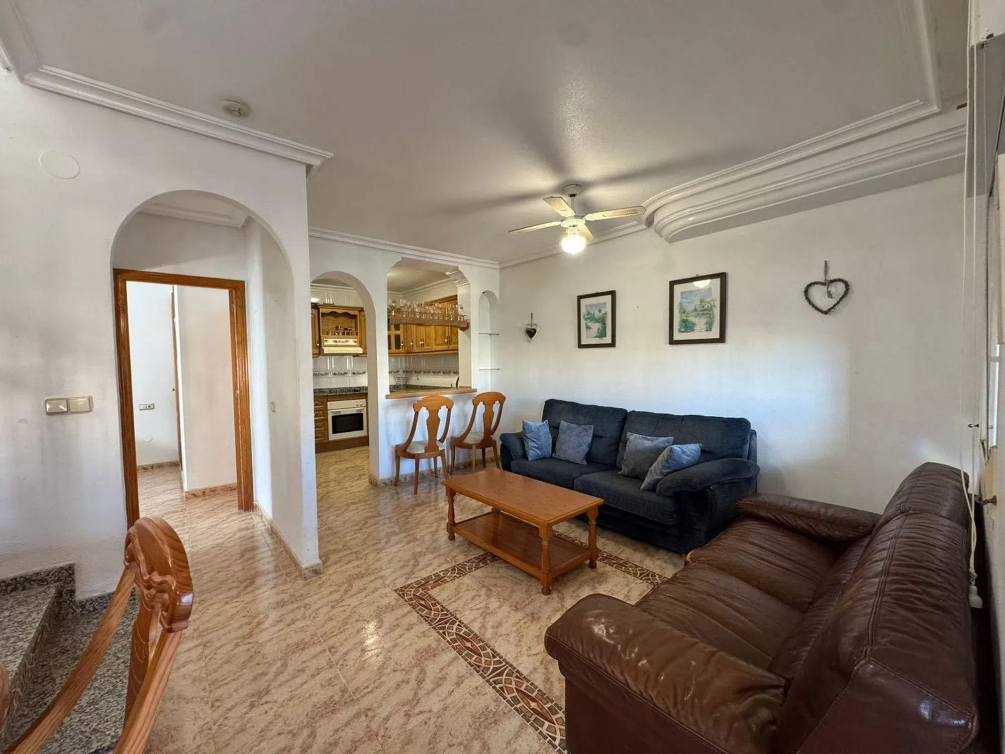 Descubre esta magnífica propiedad ubicada en la tranquila urbanización de Blue Lagoon, Orihuela Costa. Con un atractivo precio de venta de 240,000 euros, este quad cuenta con una superficie construida de 105 m2 y útil de 98 m2. La vivienda se encuentra en buen estado y ofrece tres amplias habitaciones todas con armarios empotrados y dos baños completos. Su orientación noreste garantiza luminosidad durante el día. Situada a tan solo 3000 metros del mar Mediterráneo, disfrutarás no solo del agradable clima sino también proximidad a servicios esenciales como supermercados, bares y restaurantes locales. Además, estarás cerca del renombrado campo de golf Campoamor-Villamartín; así como a menos diez minutos las espectaculares playas de Orihuela Costa y el famoso centro comercial Zenia Boulevard. La casa destaca por su amplio jardín al ser esquina e incluye una piscina privada ideal para relajarse bajo el sol casi todo el año. Por si fuera poco: ¡su gran solárium te permitirá contemplar vistas impresionantes hacia los alrededores! Perfecta para familias o quienes buscan calidad vida.