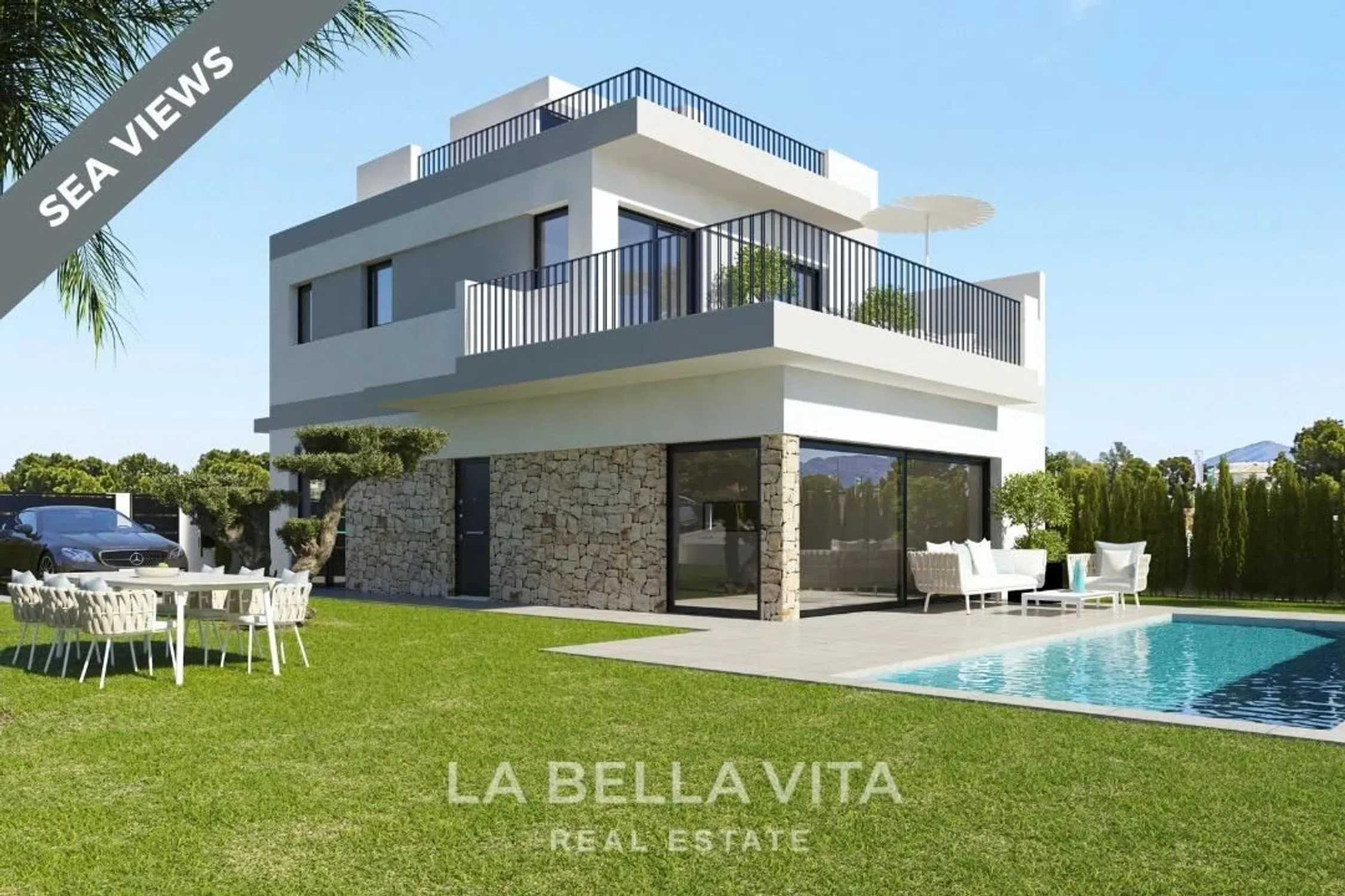 ►►► Descubre un lujo sin igual con esta exclusiva villa con vistas panoramicas al mar en la tranquila y pintoresca San Miguel de Salinas. Esta propiedad es un epítome de brillantez arquitectónica, ofreciendo una combinación única de confort, elegancia y sofisticación moderna. Está perfectamente complementada por impresionantes vistas panorámicas al mar y vistas encantadoras del lago rosa, haciendo de ella más que una casa; es una declaración de estilo de vida en una clase propia. Espacios de Vivienda Majestuosos Diseñados para la Élite Entra en esta villa y serás recibido por un amplio espacio de vida de planta abierta, bañado en luz natural gracias a las puertas correderas de vidrio de piso a techo que enmarcan el fascinante paisaje marino. En el corazón del hogar se encuentra una cocina moderna y elegante, un refugio culinario equipado con electrodomésticos de alta gama, gabinetes a medida y una selección de acabados de élite que te permiten personalizar tu espacio. La transición sin problemas del interior a un jardín privado exuberante asegura que cada momento en casa se sienta como unas vacaciones. Confort Supremo y Comodidades de Última Generación Esta villa de lujo es una obra maestra del diseño, con lujosos dormitorios equipados con armarios empotrados e iluminación LED, ofreciendo un santuario de paz. La suite principal es un retiro lujoso, completo con un vestidor, un baño en suite similar a un spa y acceso directo a una terraza privada donde el horizonte se extiende infinitamente. La casa también es consciente del medio ambiente, equipada con un sistema aerotérmico de 150L, aire acondicionado por conductos y logrando una codiciada calificación de eficiencia energética clase A. Exclusividad en Cada Esquina La opulencia se extiende al exterior con una impresionante piscina privada de 8 x 3.5 metros, un emblema de lujo y relajación. La parcela cuenta con un espacio de estacionamiento dedicado con una puerta eléctrica y preinstalaciones para cargadores de coches eléctricos, combinando comodidad con vida ecológica. Opta por el solarium adicional de 50 m² para una vista inigualable del horizonte de Costa Blanca, transformando tu hogar en un observatorio de las estrellas y los mares. Opciones Personalizadas para Compradores Exigentes Reconociendo las diversas necesidades de nuestra distinguida clientela en San Miguel, esta propiedad ofrece espacios opcionales en el sótano, perfectos para un cine en casa, gimnasio o dormitorios adicionales, cada uno bañado en luz natural de ventanas estratégicamente colocadas. Esta adaptabilidad garantiza que tu hogar no solo cumpla, sino que supere todas las expectativas, ofreciendo infinitas posibilidades de comodidad y ocio. Una Rara Oportunidad de Inversión Este proyecto marca una rara oportunidad para invertir en una de las ubicaciones más codiciadas de la Costa Blanca. Aprovecha los precios introductorios, ya que los precios aumentarán gradualmente. Elige esta villa para aprovechar una vida de lujo y tranquilidad sin igual, diseñada no solo para cumplir sino para redefinir las expectativas. Contáctanos hoy para explorar cómo esta magnífica casa puede ser tuya. Recuerda, cuando se trata de vivir tu mejor vida, ¿por qué conformarte con menos cuando puedes tener lo mejor?
