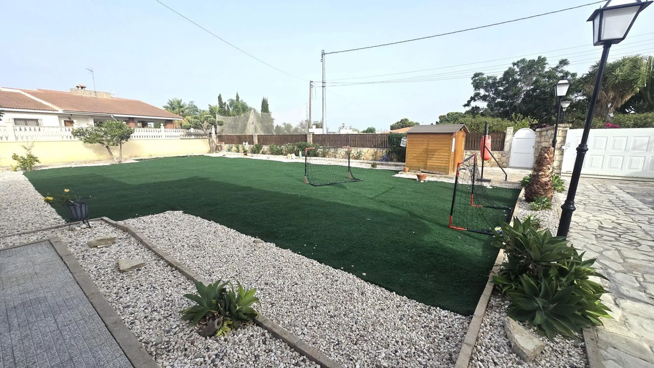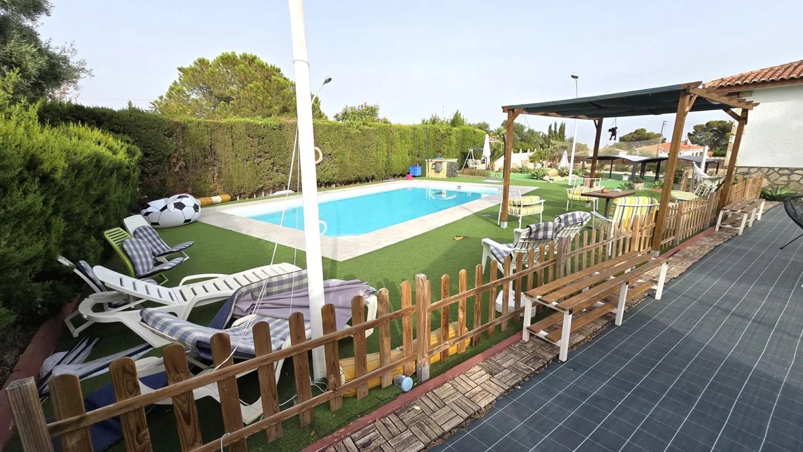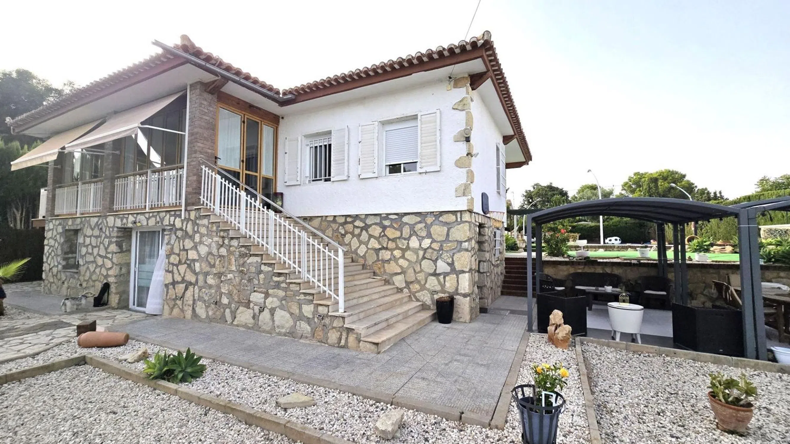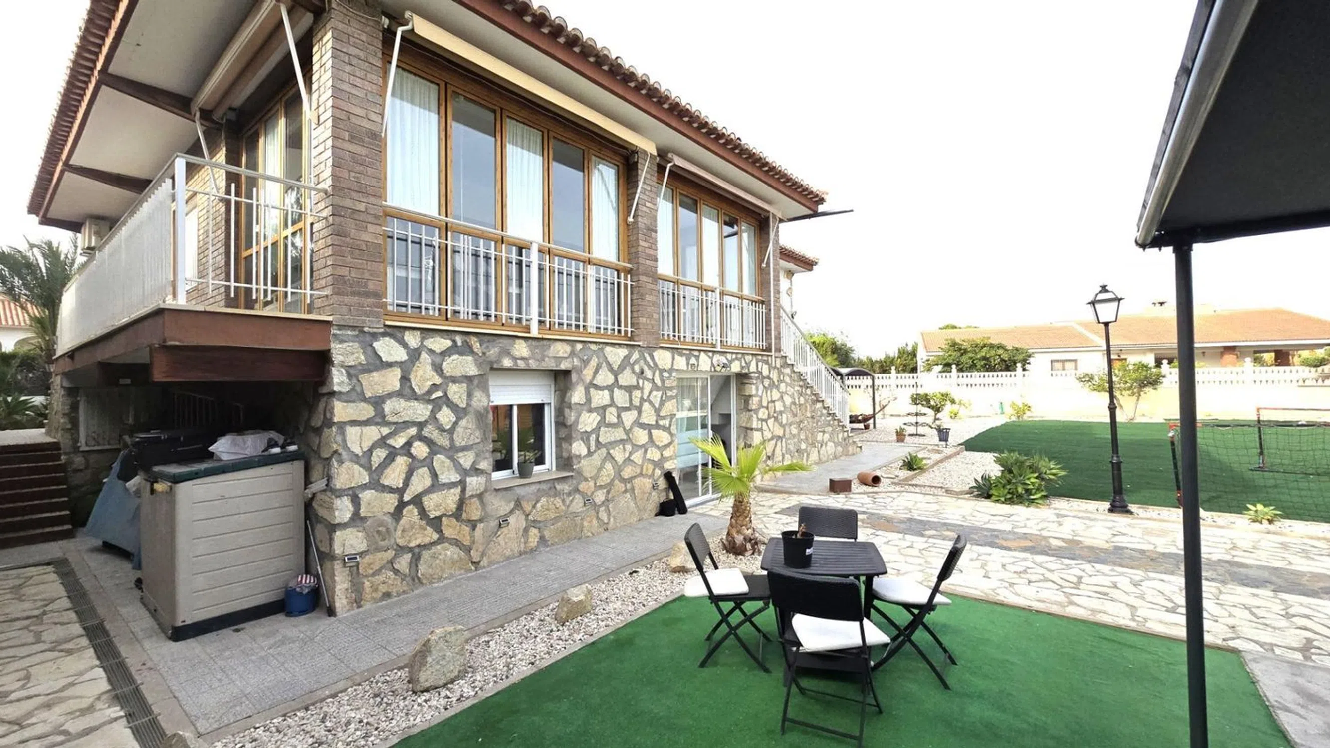 Damar Home presenta: Chalet en venta con casa de invitados, amplio jardín y piscina en las inmediaciones de San Vicente del Raspeig Se vende magnífico chalet de dos plantas, ubicado en una zona tranquila y bien comunicada a pocos minutos de San Vicente del Raspeig. Una propiedad que destaca por su amplitud, luminosidad y por ofrecer espacios perfectamente diseñados tanto para el confort interior como para el disfrute exterior. Planta principal (vivienda principal) La vivienda principal se encuentra en la planta superior y cuenta con un salón muy amplio y luminoso, conectado directamente a una espectacular terraza acristalada con vistas al jardín y a la piscina. La terraza dispone de cerramientos de PVC de alta calidad, completamente abatibles, que permiten integrarla con el jardín y el salón, creando un sugerente efecto de espacio abierto. La cocina es moderna, semi independiente y está situada junto al salón, aportando funcionalidad y diseño. Las habitaciones son amplias, con mucha luz natural, y los baños han sido renovados con un estilo contemporáneo y duchas de gran comodidad. Planta baja (casa de invitados) En la planta baja se encuentra la casa de invitados, con entrada independiente. Dispone de un gran salón con cocina americana integrada, una habitación de matrimonio y un baño completo. Desde el salón se accede directamente a la zona exterior, lo que ofrece independencia y privacidad, perfecta para alojar familiares, amigos o incluso como espacio para alquilar. Zona exterior El exterior es uno de los puntos fuertes de esta propiedad. El terreno, amplio y muy bien distribuido, está diseñado para ofrecer diversas zonas de ocio y relax: Piscina privada Área de barbacoa Merenderos con pérgolas situados en puntos estratégicos del jardín Cama balinesa y tumbonas Zona de descanso Un pequeño campo de fútbol ideal para niños Todo ello rodeado de vegetación y espacios abiertos, en un entorno tranquilo y con fácil acceso a todos los servicios. Una propiedad única que ofrece calidad de vida, privacidad y muchas posibilidades. Lista para entrar a vivir y disfrutar desde el primer día. ¡No dejes pasar esta oportunidad de adquirir esta increíble vivienda! Contáctanos ahora mismo para obtener más información y concertar una visita. Damar Home estará encantado de ayudarte en todo el proceso.