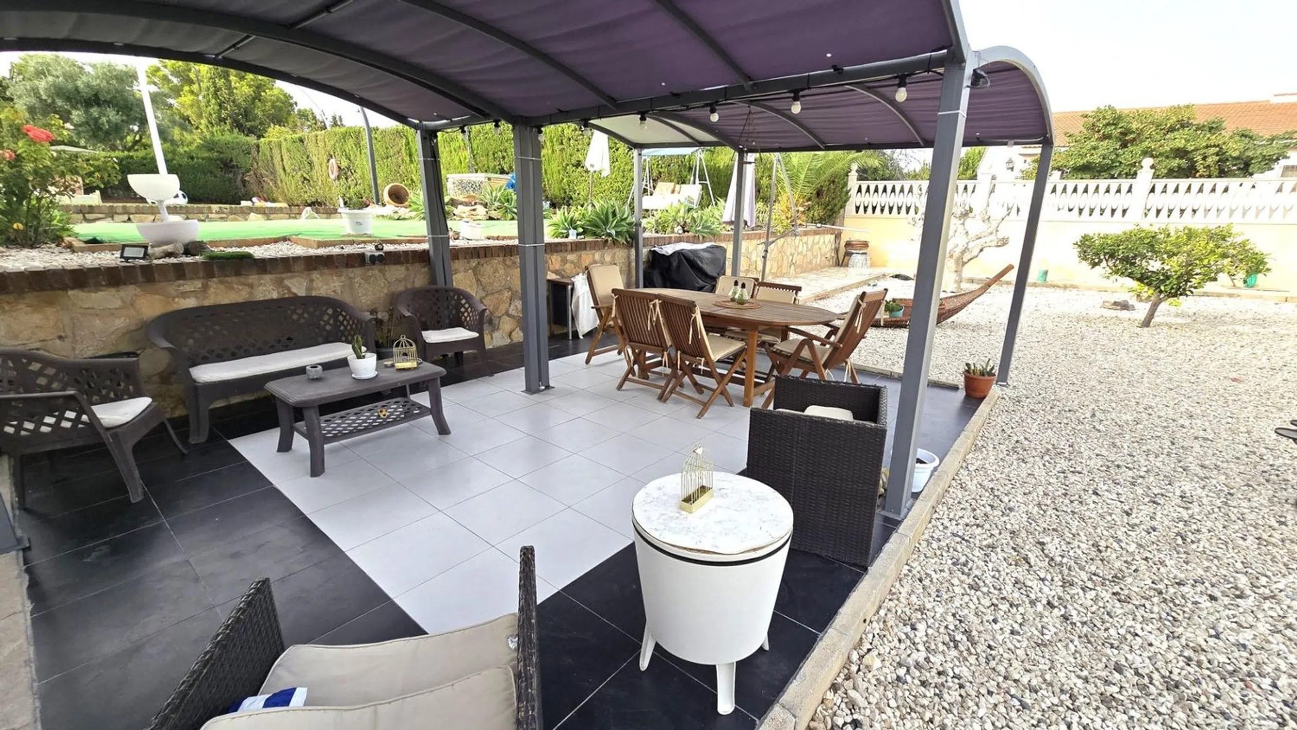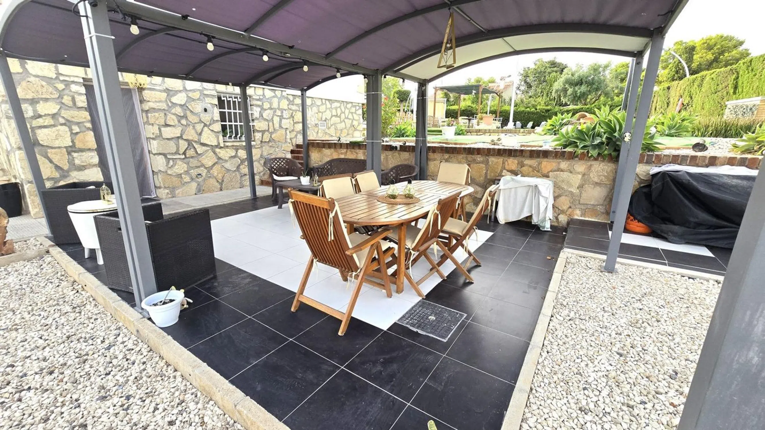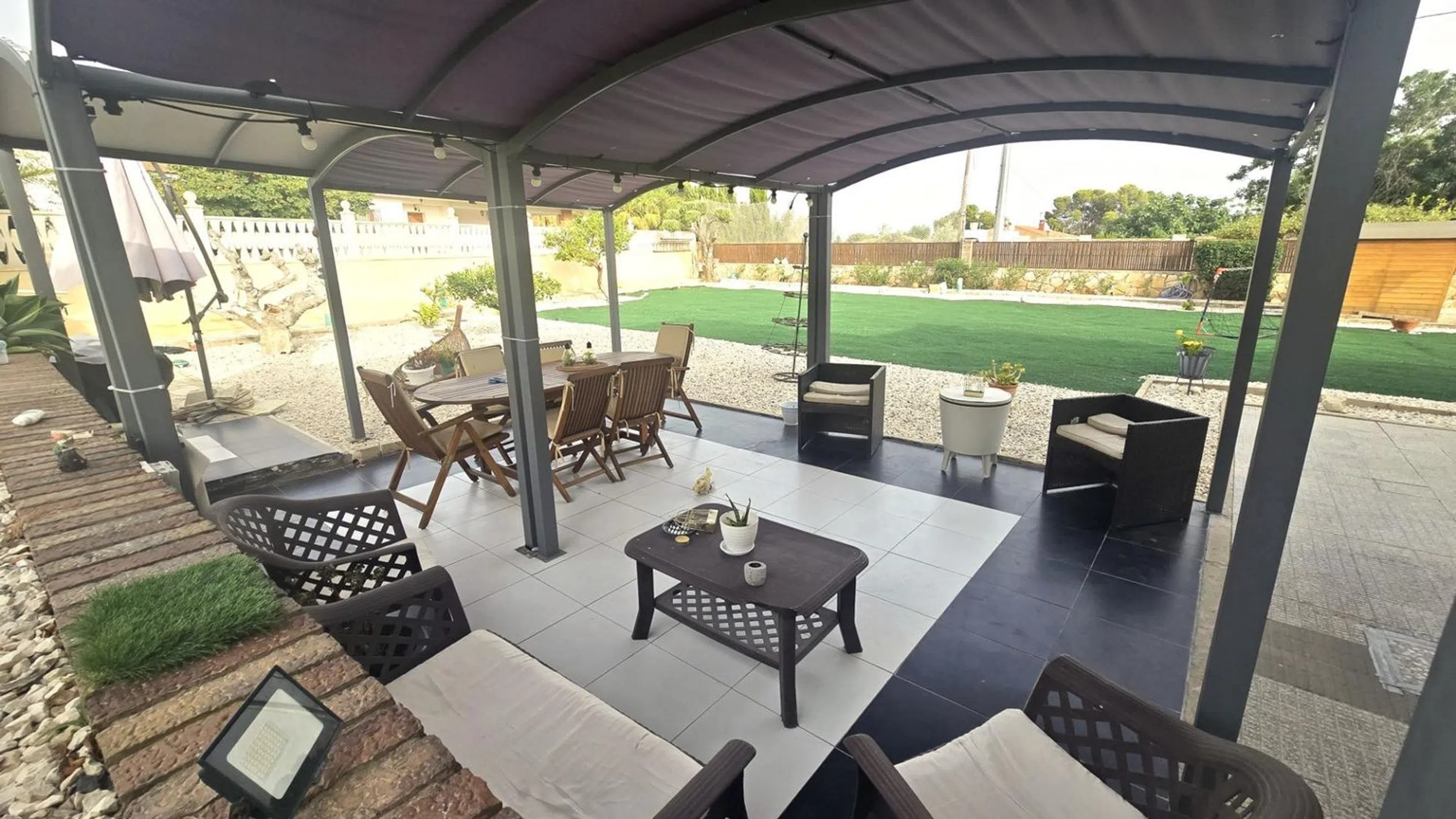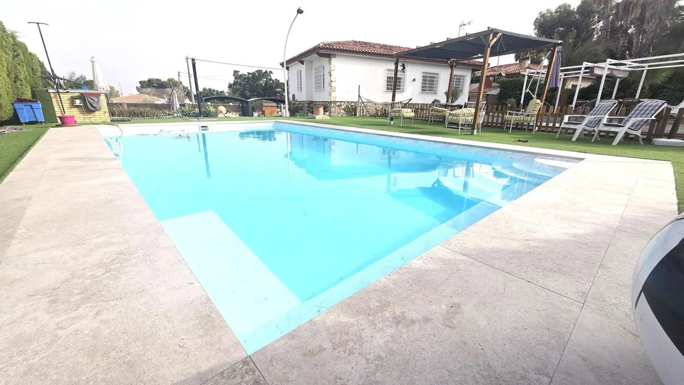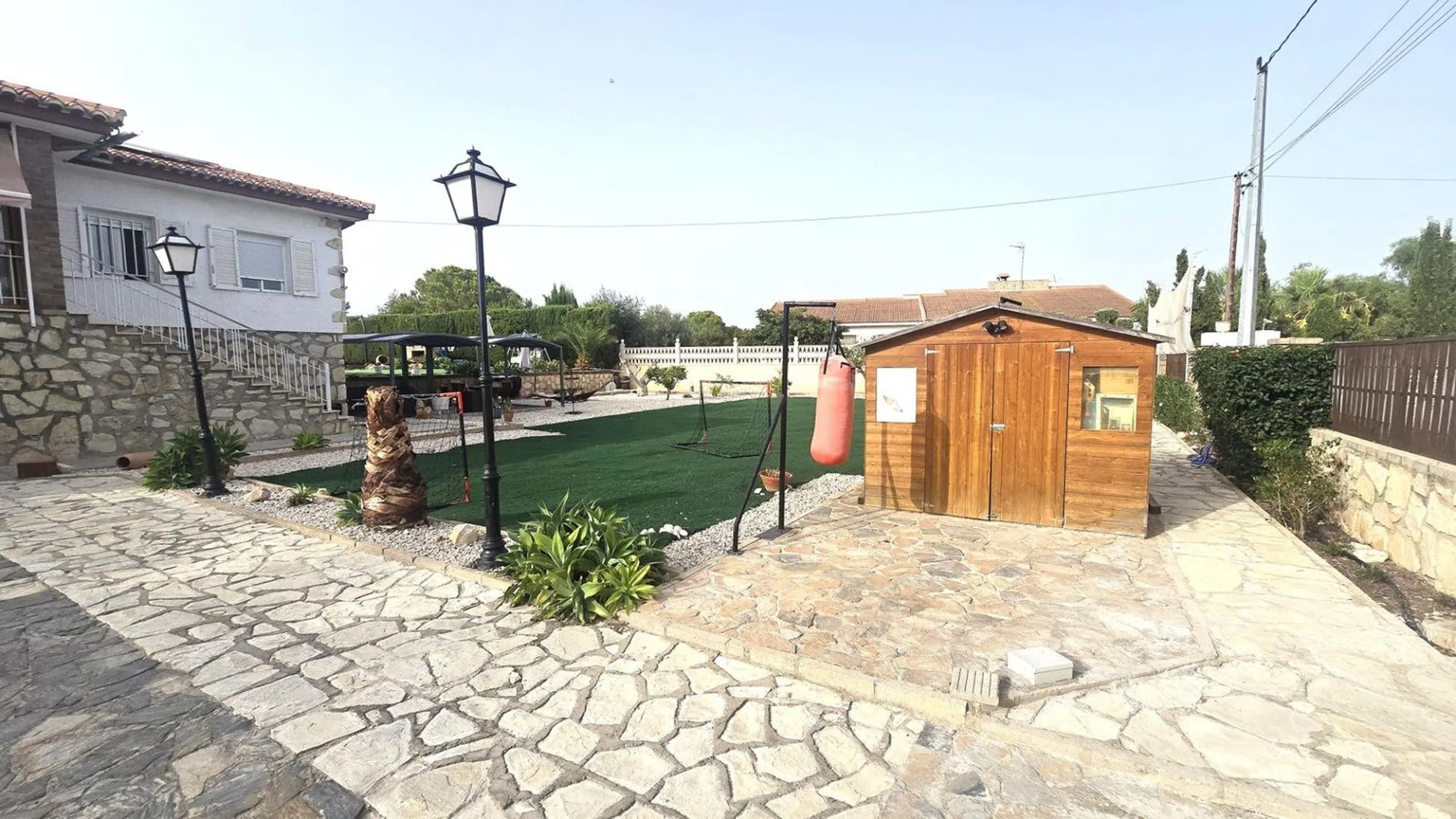 Damar Home presenta: Chalet en venta con casa de invitados, amplio jardín y piscina en las inmediaciones de San Vicente del Raspeig Se vende magnífico chalet de dos plantas, ubicado en una zona tranquila y bien comunicada a pocos minutos de San Vicente del Raspeig. Una propiedad que destaca por su amplitud, luminosidad y por ofrecer espacios perfectamente diseñados tanto para el confort interior como para el disfrute exterior. Planta principal (vivienda principal) La vivienda principal se encuentra en la planta superior y cuenta con un salón muy amplio y luminoso, conectado directamente a una espectacular terraza acristalada con vistas al jardín y a la piscina. La terraza dispone de cerramientos de PVC de alta calidad, completamente abatibles, que permiten integrarla con el jardín y el salón, creando un sugerente efecto de espacio abierto. La cocina es moderna, semi independiente y está situada junto al salón, aportando funcionalidad y diseño. Las habitaciones son amplias, con mucha luz natural, y los baños han sido renovados con un estilo contemporáneo y duchas de gran comodidad. Planta baja (casa de invitados) En la planta baja se encuentra la casa de invitados, con entrada independiente. Dispone de un gran salón con cocina americana integrada, una habitación de matrimonio y un baño completo. Desde el salón se accede directamente a la zona exterior, lo que ofrece independencia y privacidad, perfecta para alojar familiares, amigos o incluso como espacio para alquilar. Zona exterior El exterior es uno de los puntos fuertes de esta propiedad. El terreno, amplio y muy bien distribuido, está diseñado para ofrecer diversas zonas de ocio y relax: Piscina privada Área de barbacoa Merenderos con pérgolas situados en puntos estratégicos del jardín Cama balinesa y tumbonas Zona de descanso Un pequeño campo de fútbol ideal para niños Todo ello rodeado de vegetación y espacios abiertos, en un entorno tranquilo y con fácil acceso a todos los servicios. Una propiedad única que ofrece calidad de vida, privacidad y muchas posibilidades. Lista para entrar a vivir y disfrutar desde el primer día. ¡No dejes pasar esta oportunidad de adquirir esta increíble vivienda! Contáctanos ahora mismo para obtener más información y concertar una visita. Damar Home estará encantado de ayudarte en todo el proceso.