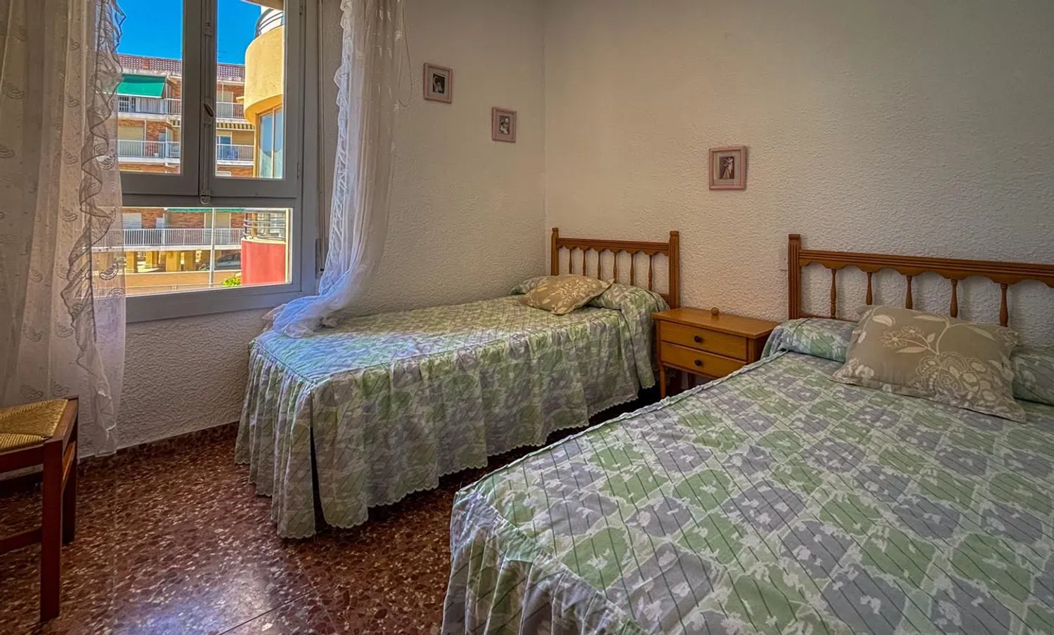 Amplio piso con piscina y plaza de aparcamiento a tan solo un paso de la playa. Ubicado en una urbanización que ofrece todas las comodidades, los residentes disfrutarán de acceso exclusivo a una refrescante piscina, jardines bien cuidados y áreas de descanso y recreo para toda la familia. Este hogar se encuentra en la primera planta y es accesible mediante ascensor.