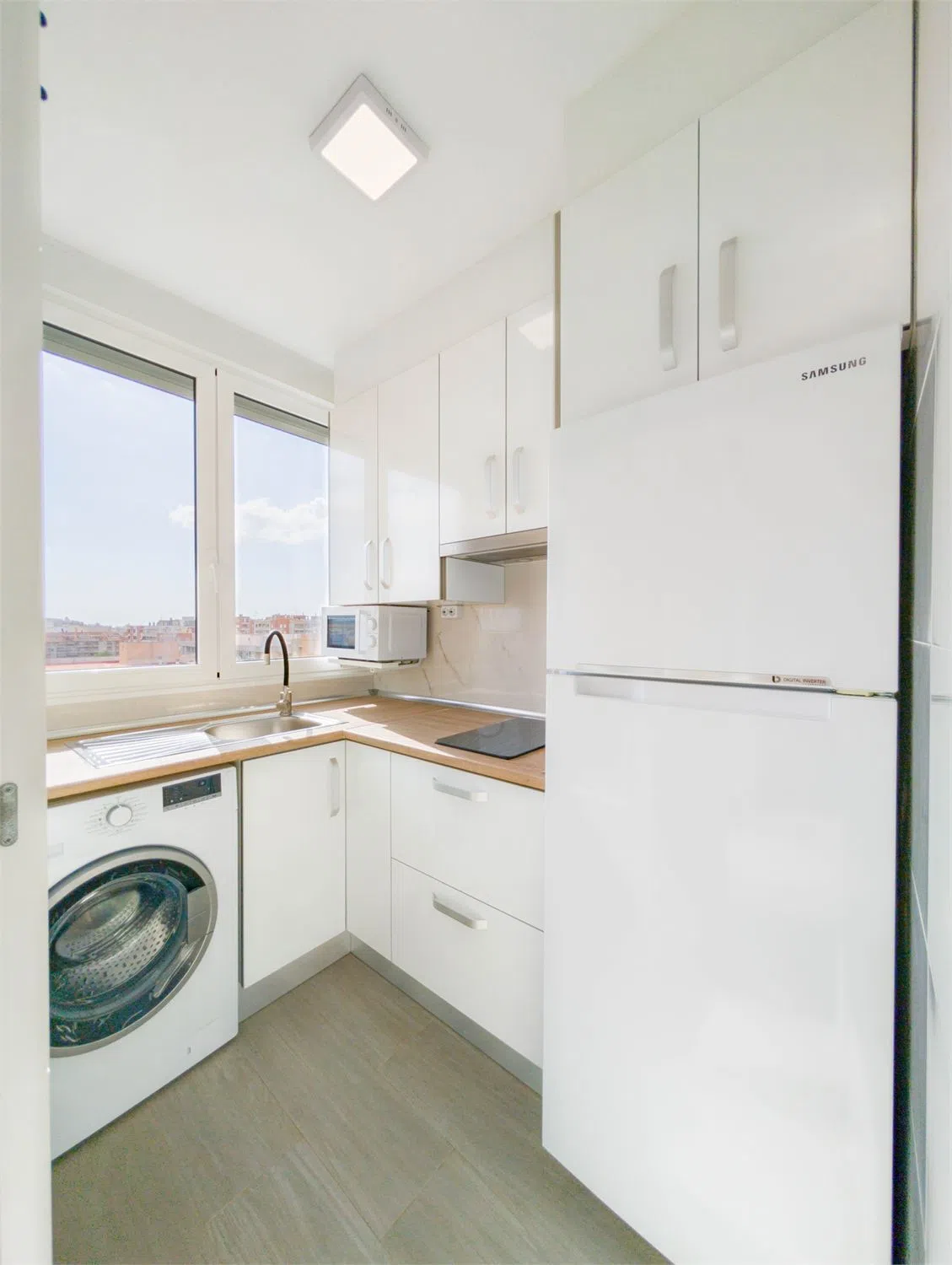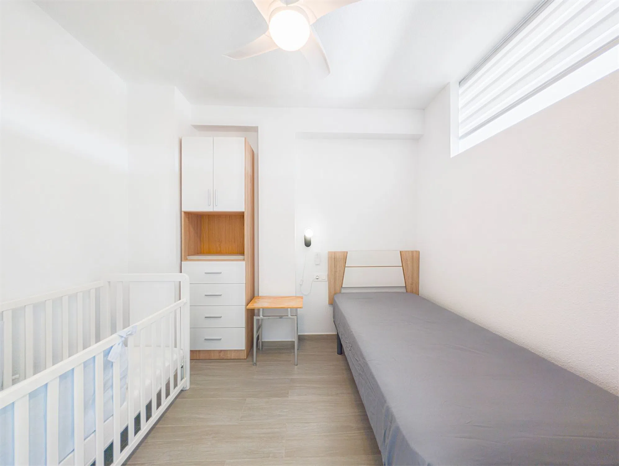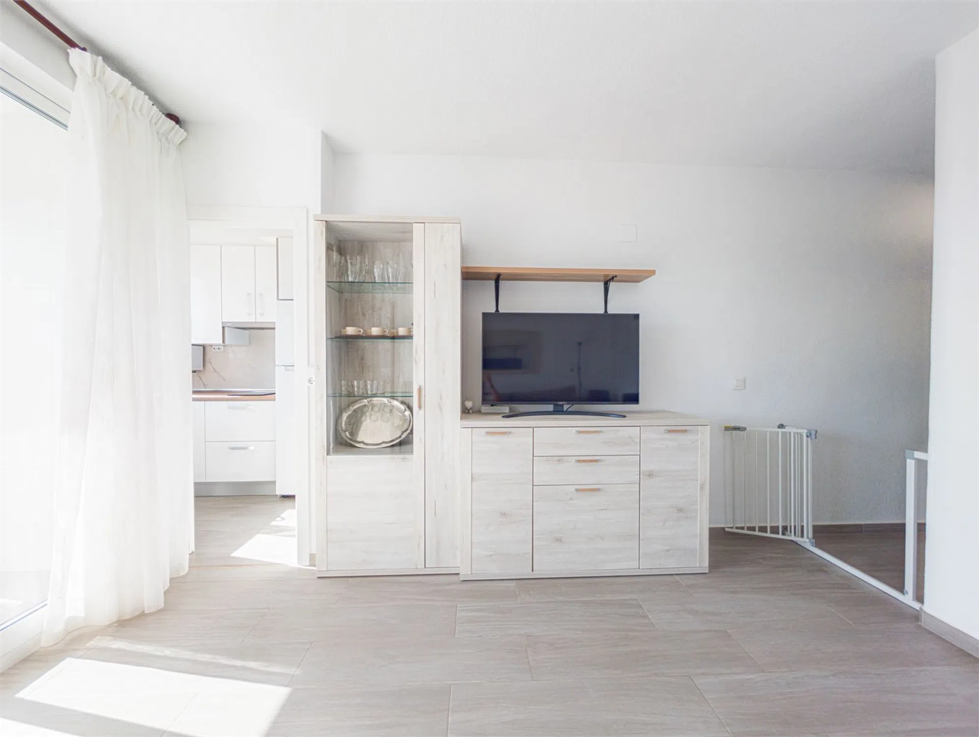 Piso reformado con vistas Bienvenido a este piso renovado con mucho gusto, situado en la octava planta de un edificio con ascensor, en pleno corazón de Santa Pola. Vivirás a poca distancia a pie de la playa, tiendas, restaurantes, mercado de abastos, transporte público y todo lo que el animado centro tiene para ofrecer. La vivienda cuenta con una distribución luminosa y funcional, con dos dormitorios, un baño moderno y un salón amplio en concepto abierto con la cocina. Todo el piso es muy luminoso y dispone de ventiladores de techo que proporcionan una brisa agradable en los días más calurosos. El bonito balcón ofrece unas vistas fantásticas sobre los alrededores y los tejados de Santa Pola, ideal para disfrutar del café por la mañana o una cena relajada al atardecer. Es una vivienda perfecta tanto para residencia habitual como para vacaciones, gracias a su excelente ubicación, cercanía al mar y vistas despejadas. LA VIVIENDA Salón Salón luminoso y acogedor con espacio para sofá y zona de comedor. Desde aquí se accede al balcón. Abierto a la cocina y equipado con ventilador de techo. Cocina Situada junto al salón, con mucho espacio de almacenaje. Equipada con frigorífico/congelador, horno, vitrocerámica, microondas, campana extractora y lavadora. Baño Baño moderno y totalmente alicatado, con ducha, lavabo y WC. Dormitorio 1 Dormitorio amplio y luminoso con espacio para una cama doble y armario. Con ventilador de techo. Dormitorio 2 Ideal como habitación de invitados, despacho o dormitorio infantil. Espacio para cama individual o doble pequeña. Con ventilador de techo. Balcón Balcón soleado con vistas agradables – un lugar perfecto para relajarse durante todo el año.