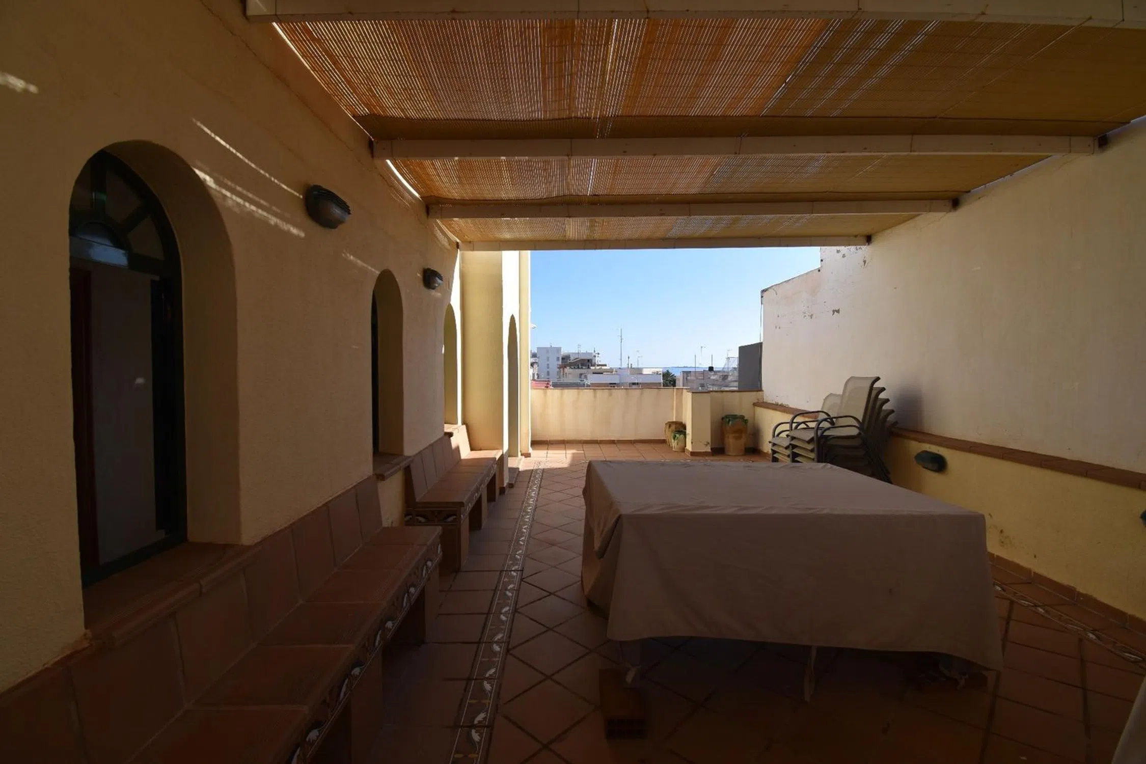 Única, especial y encantadora vivienda ÁTICO en la cotizada zona De Santiago Bernabéu. Encontramos está maravillosa propiedad a tan solo 50 metros de la playa de Santis Bernabéu, sus calas, paseos y maravillosas zonas de ocio para disfrutar del encanto que caracteriza la zona. En el mismo vecindario encontrará todos los servicios del día a día necesarios para disfrutar de ocio, restauración, supermercados, farmacias etc. Además el centro comercial POLAMAX a tan solo 5 minutos andando, donde se ubica MERCADONA, GIMNASIO, CINES etc; todo un lujo contar con estos servicios a pie de calle. Escuela Náutica, centros deportivos, y un sin fin de servicios rodean la zona. La vivienda pertenece a una comunidad muy bien cuidada, con acceso para personas con movilidad reducida en la entrada del edificio, ascensor y sita en la QUINTA PLANTA ÁTICO, desde donde podrá disfrutar de vistas increíbles al mar. Se distribuye en dos amplios dormitorios dobles, dos baños completos, cocina independiente con galería-lavadero y un gran salón con ventanales que le dan una gran entrada de luz a la estancia, balcón accesorio y una INCREIBLE TERRAZA con acceso desde el salón de 50m2 y unas vistas únicas al mar. Es una casa muy especial y con mucho encanto. Única en la zona por sus características y distribución. Se encuentra de origen aunque muy bien cuidada, podría ser perfectamente habitada, aunque tiene muchas posibilidades de reforma y construir su vivienda a gusto propio. Tiene muy buena entrada de luz natural y ventilación. Además cuenta con splits de aire acondicionado en los dormitorios. No dude en consultar para mas información. ´´´´´´´´´´´´´´´´´´´´´´´´.