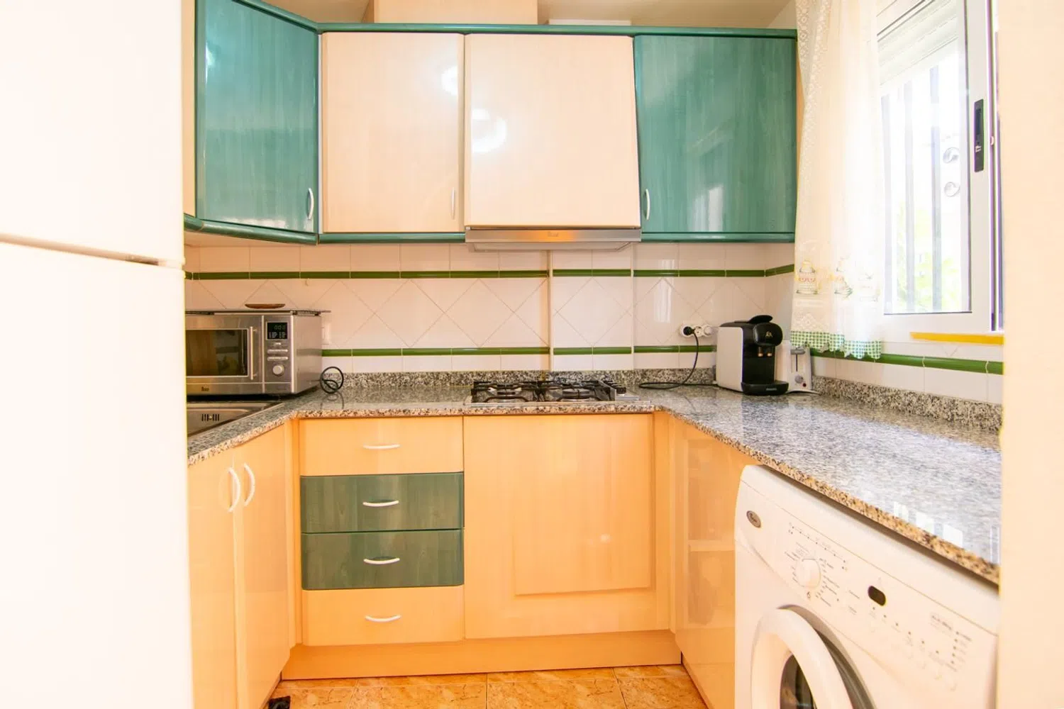 La distribución de la vivienda es excepcional. En la planta principal, se accede directamente a un amplio y luminoso salón-comedor que invita a compartir momentos en familia. Adyacente a esta área se encuentra una cocina independiente, también amueblada y equipada, junto con un práctico aseo. Desde aquí, puedes acceder a la primera terraza, un espacio ideal para aprovechar el magnífico clima local, caracterizado por más de 300 días de sol al año.