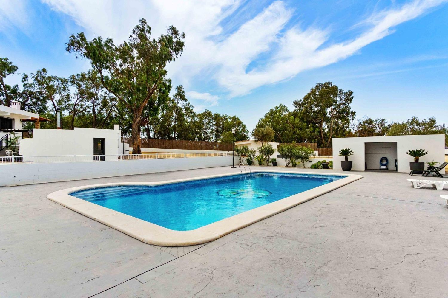 Además, la propiedad cuenta con una cocina exterior completamente equipada, perfecta para disfrutar de momentos al aire libre, que incluye una barbacoa, una zona de merendero, un horno de leña y un baño, todo ello en 96 m2. También hay una segunda construcción que se puede utilizar como garaje o almacén y que abarca 200 m2. Para los visitantes, hay una acogedora caseta prefabricada de 15 m2 con una habitación y baño, además de otra edificación de 29 m2 cerca de la zona infantil y deportiva.