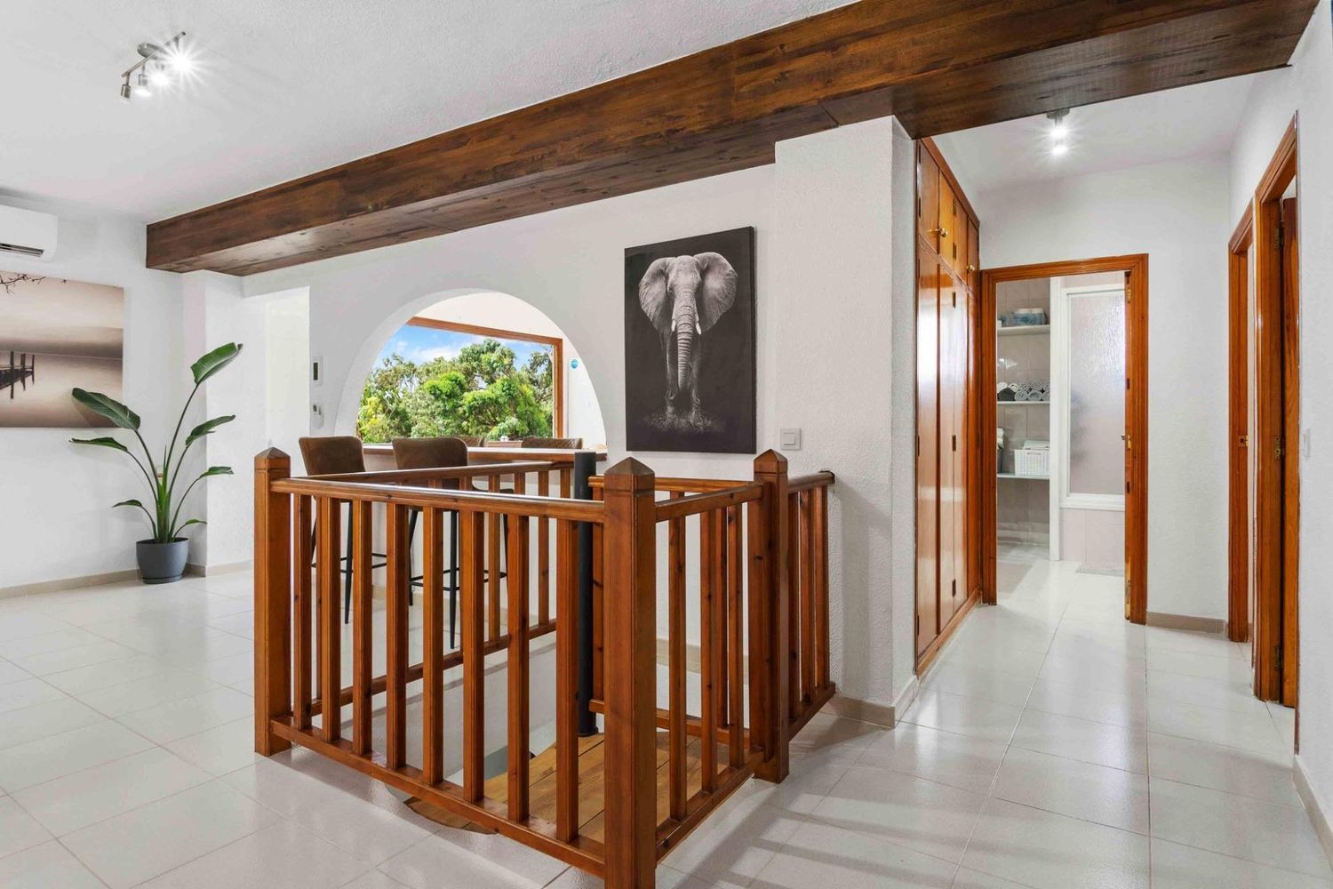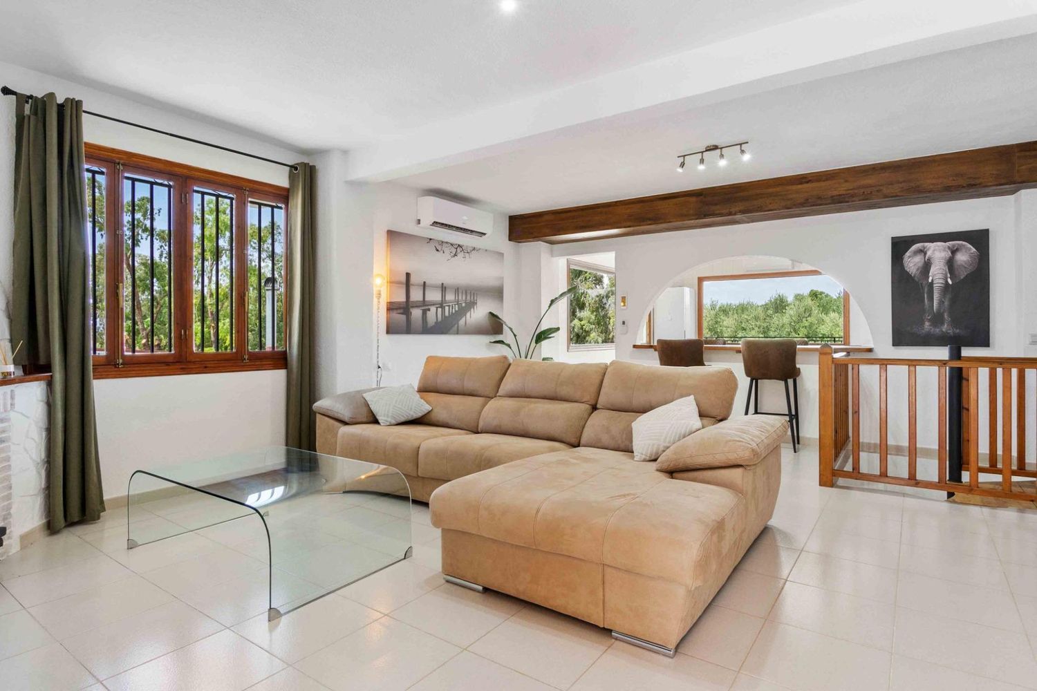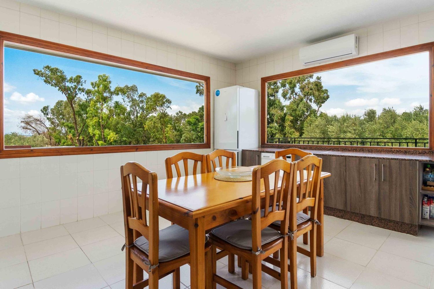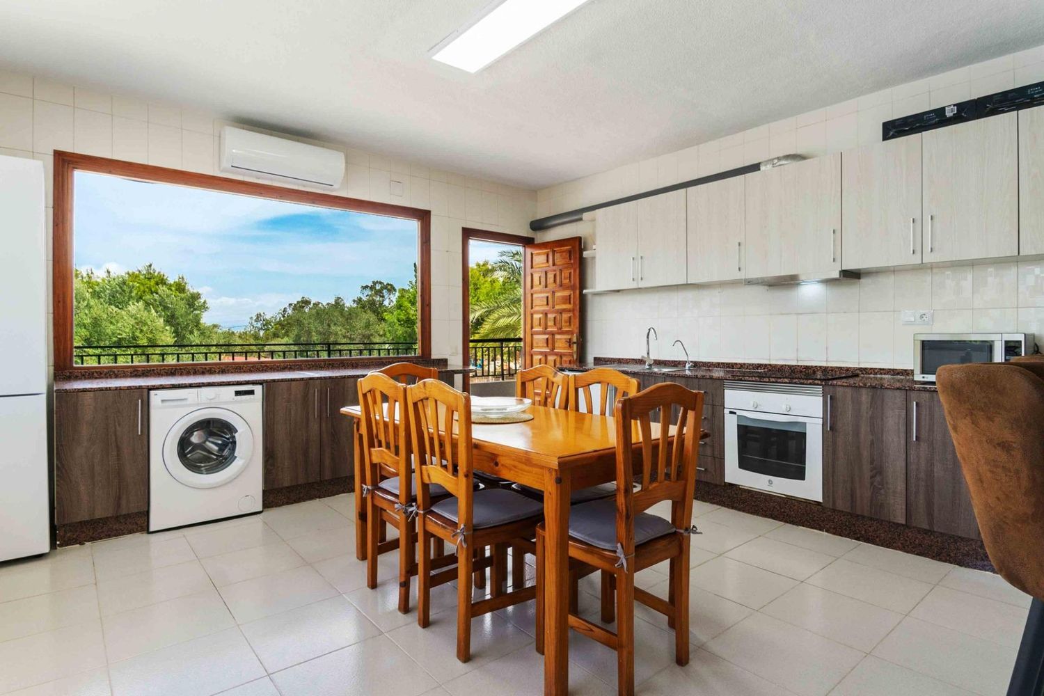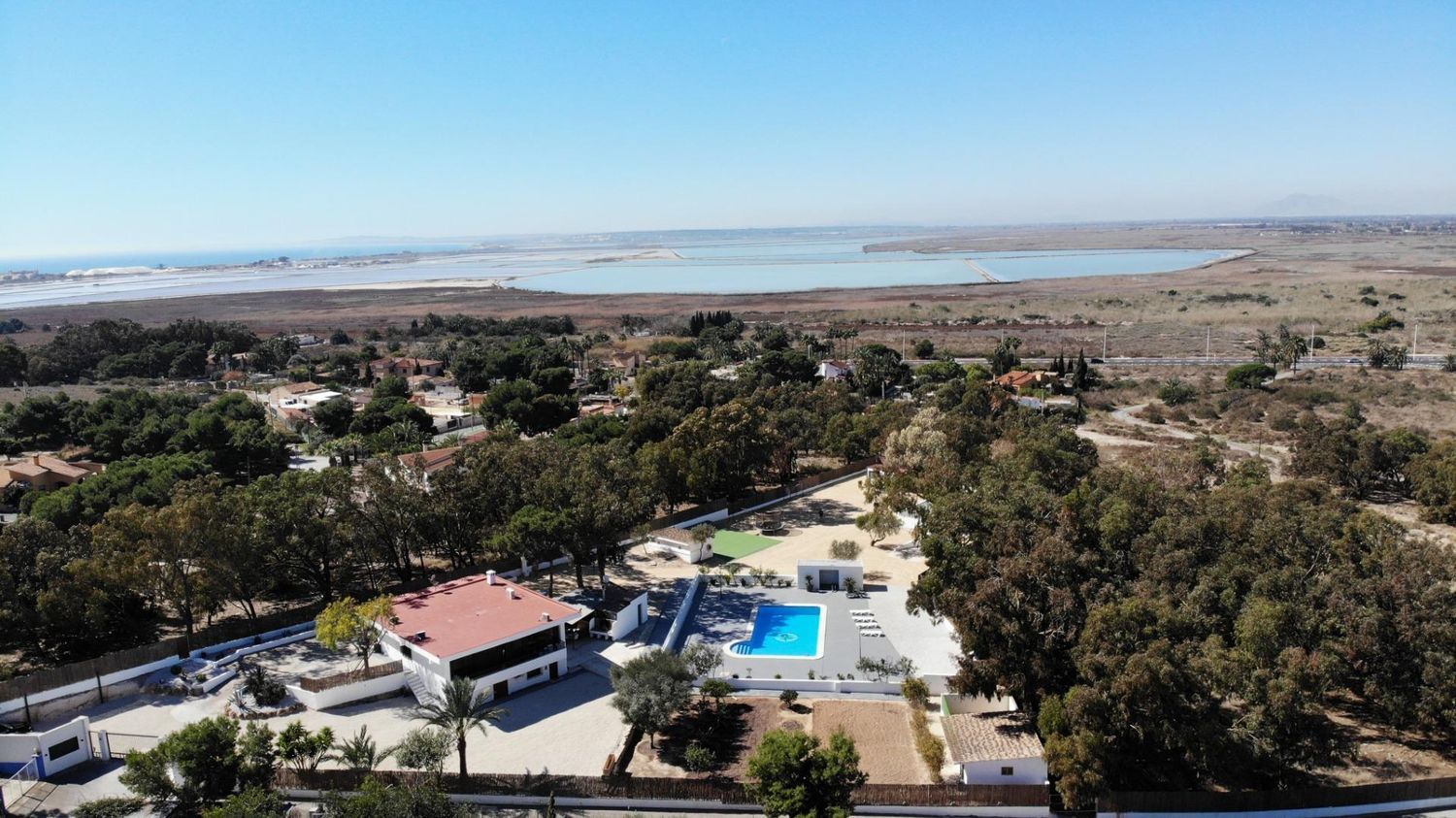 La parcela está situada en una zona elevada, rodeada de frondoso bosque y en un entorno natural protegido, lo que proporciona un ambiente tranquilo ideal para disfrutar de la naturaleza. La casa principal está equipada con aire acondicionado y calefacción en todas las estancias, además de televisión en cada habitación. La cocina americana, con grandes ventanales, ofrece vistas impresionantes a la piscina y al bosque circundante.