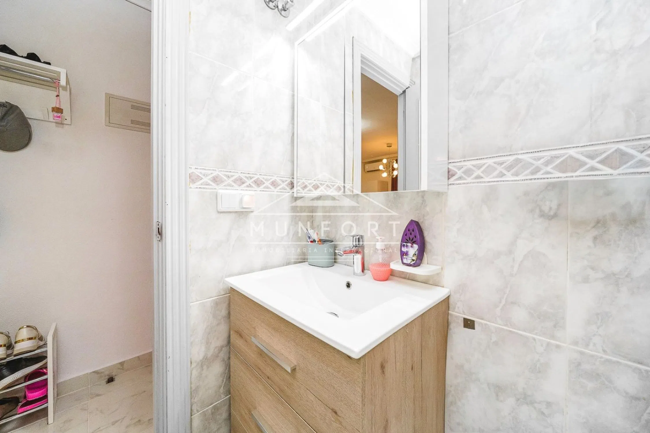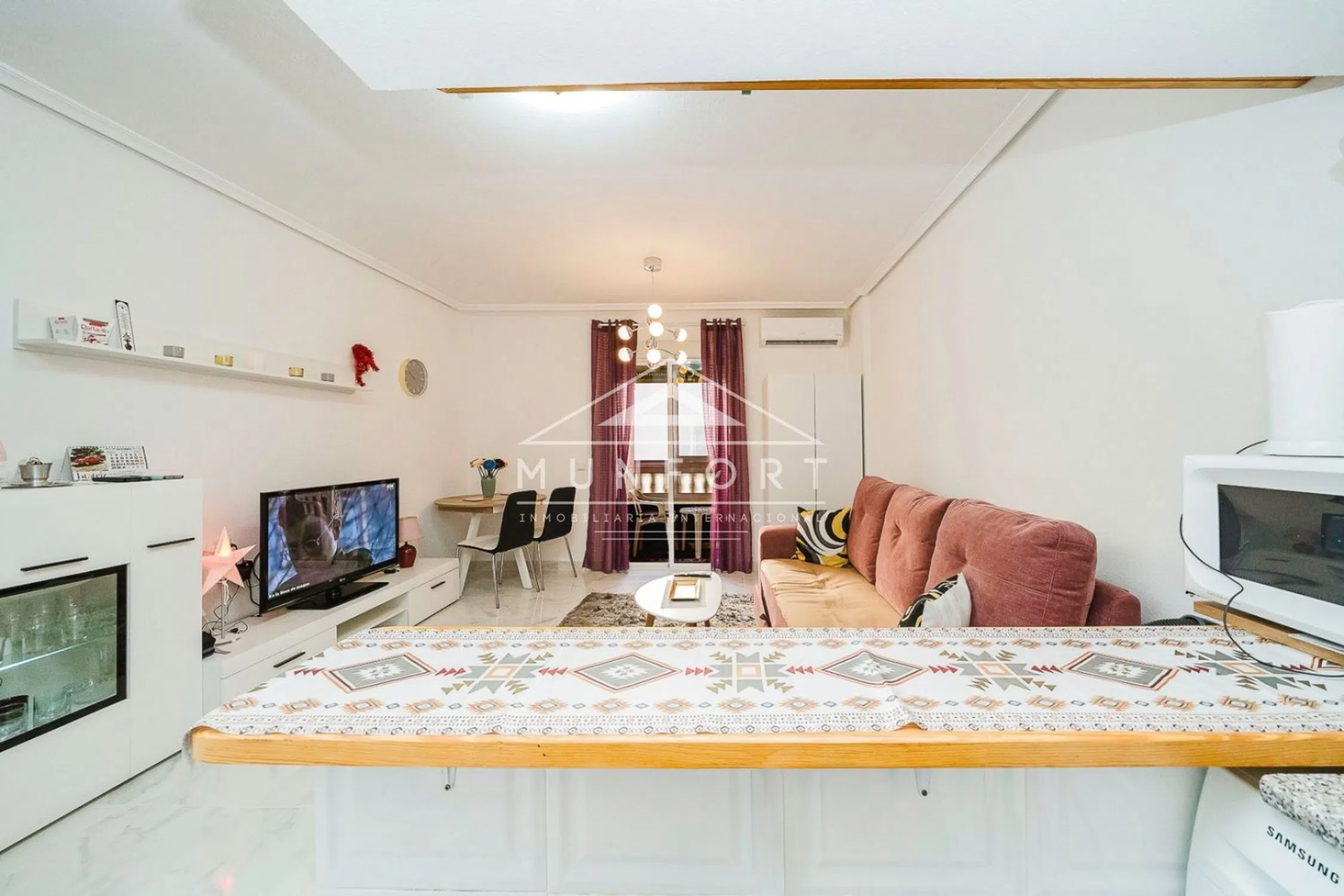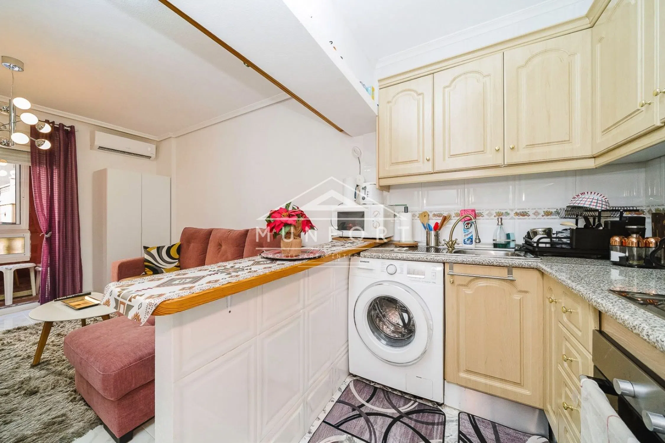 PISO REFORMADO CENTRO TORREVIEJA Y CERCA DEL MAR Ref: RS012 Descubre este acogedor apartamento de 44,45 m² con orientación sur, lleno de luz natural y recién reformado. Cuenta con suelos de mármol, puertas lacadas y una cocina equipada lista para usar. Disfruta de una terraza interior perfecta para relajarte, aire acondicionado en el salón y radiador en la habitación para tu confort durante todo el año. El dormitorio incluye una práctica cama canapé con espacio de almacenamiento y el salón dispone de un cómodo sofá cama. Un espacio funcional y moderno, ideal para vivir o invertir. Metros construidos: 44,45m2 Orientación: surAmueblado y reformadoCocina equipadaTerraza interior1 habitación 1 baño IBI (impuesto de propiedad): 10€ / mesComunidad: 25€ / mesFinanciación disponible hasta el 80% Playa del cura: 650mRestaurantes: 150mSupermercado: 600mCentro Comercial Habaneras: 10 min Campo de golf: 26 minAeropuerto Internacional de Murcia (RMU): 1hAeropuerto Internacional de Alicante: 47 minutos Torrevieja se localiza en la provincia de Alicante, en la Costa Blanca, conocida por su clima y su costa mediterráneos. Destacan sus paseos marítimos y magníficas playas. Además, podemos encontrar varios centros comerciales (Habaneras, La Zenia Boulevard), campos de golf, centros deportivos, hospitales (como el Hospital Universitario de Torrevieja). Este anuncio y su contenido visual no son vinculantes y tienen carácter meramente informativo; pueden contener errores y/o modificaciones. Para más información, contacte con MUNFORT.