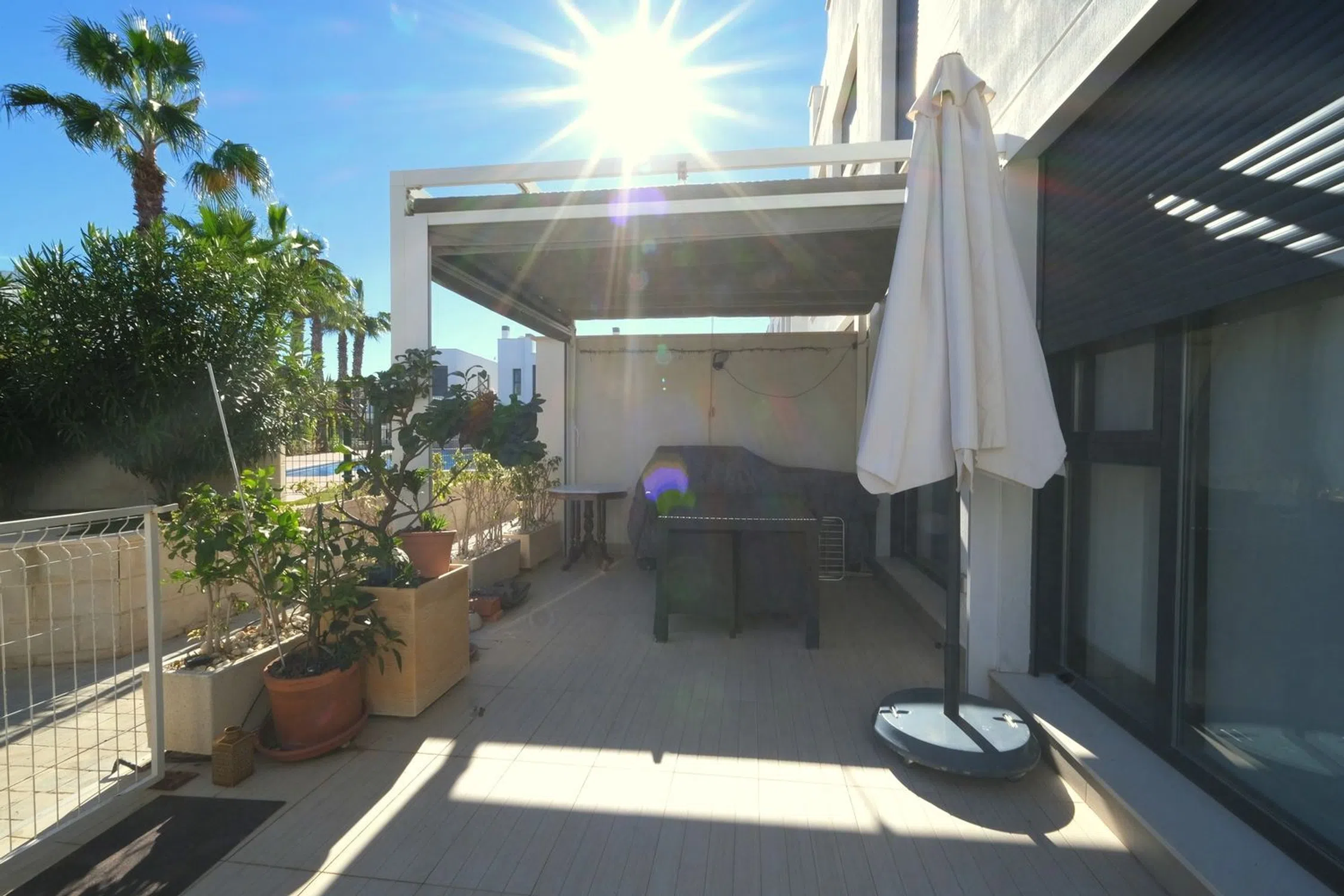 Este elegante y espacioso apartamento de 3 dormitorios y 2 baños, situado en la planta baja, goza de una ubicación ideal en la codiciada zona de Punta Prima, a poca distancia a pie de una magnífica oferta de servicios locales y de la hermosa costa mediterránea. Situado en una urbanización cerrada muy bien cuidada, la propiedad ofrece la combinación perfecta de comodidad, estilo y conveniencia. El apartamento cuenta con una gran terraza delantera con toldo retráctil, que proporciona un excelente espacio al aire libre para relajarse o divertirse. En el interior, la vivienda cuenta con un salón luminoso y moderno con zona de comedor, mientras que la cocina abierta equipada combina funcionalidad y diseño contemporáneo. La distribución también incluye un cuarto de baño familiar, un dormitorio con dos camas individuales, un dormitorio doble y un dormitorio principal con cuarto de baño en suite. Las puertas del salón dan acceso a un amplio jardín trasero, que ofrece un espacio exterior adicional ideal para comer, tomar el sol o disfrutar del cálido clima costero. Otras características adicionales son el aire acondicionado por conductos frío y caliente, el aparcamiento subterráneo y el acceso a una piscina comunitaria muy bien cuidada. Por qué nos encanta: Con amplios espacios interiores y exteriores, un diseño moderno y una magnífica ubicación cerca del mar, este precioso apartamento en Punta Prima es ideal para vivir de forma permanente o como lujoso refugio vacacional.