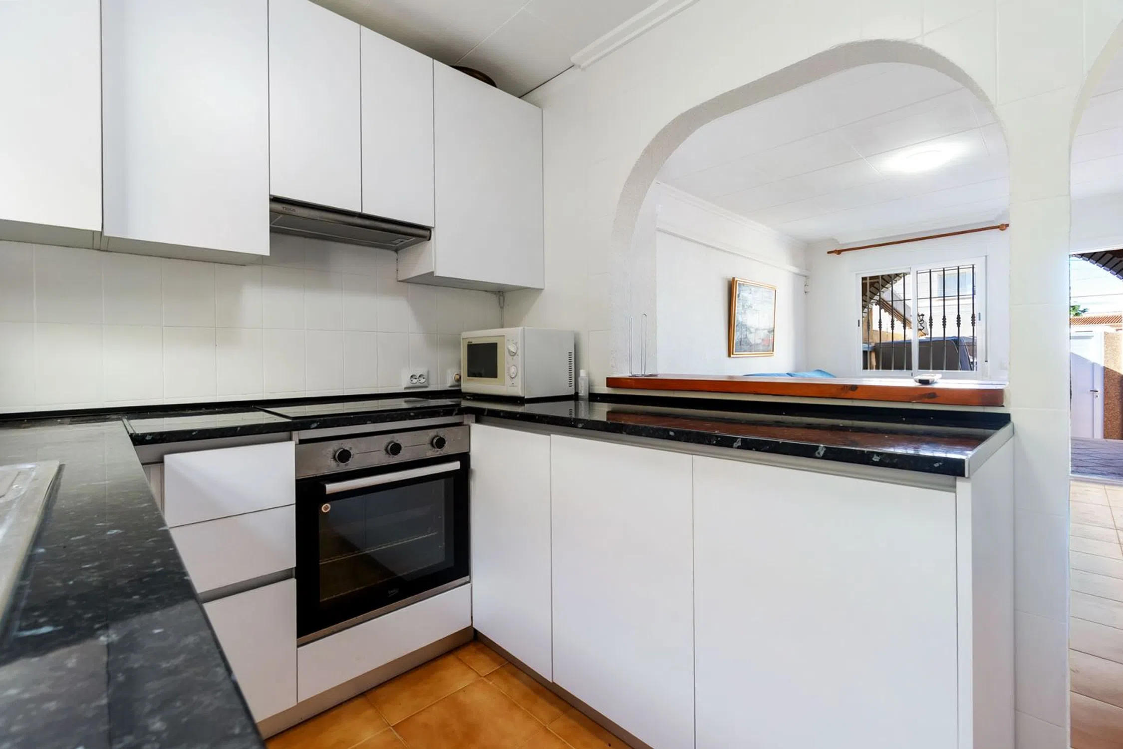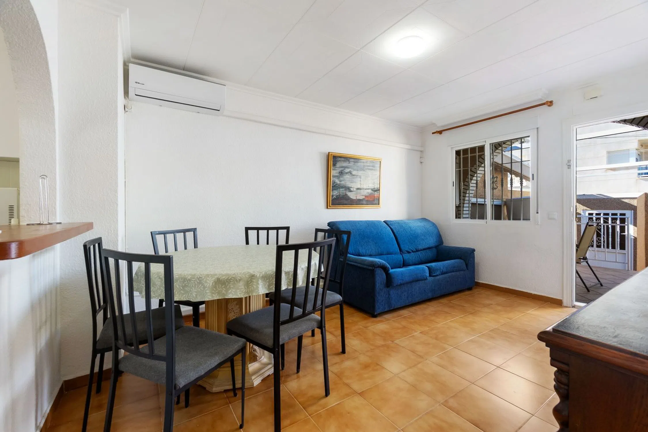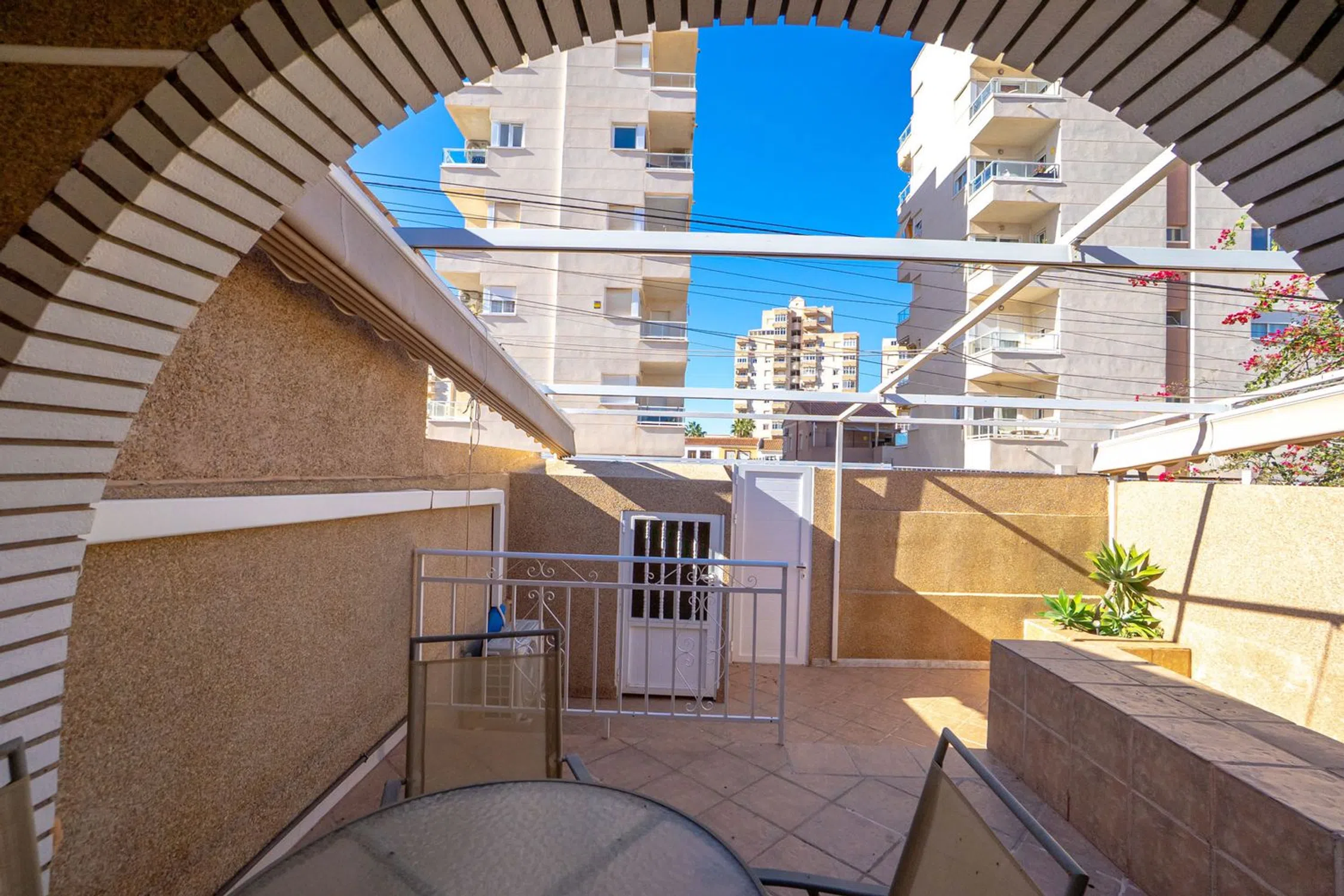 Ahora tienes la oportunidad de adquirir una fantástica casa adosada en la popular zona de Aguas Nuevas, perfecta para residencia permanente o como un oasis vacacional. La vivienda cuenta con dos dormitorios bien distribuidos y un baño elegante y renovado. La cocina, moderna, abierta y renovada, fluye naturalmente hacia el salón y conduce directamente al patio privado en la parte trasera. En la parte delantera, puede disfrutar del sol en el jardín de 26 m² orientado al oeste y soleado. Este es el lugar perfecto para barbacoas por la tarde y relajación. Una práctica pérgola proporciona sombra cuando necesita un descanso del sol español. Además, la vivienda es económica ya que se han instalado paneles solares en el techo para maximizar el aprovechamiento de las horas de sol. La casa adosada tiene una excelente ubicación, a un corto paseo encontrará todos los servicios imaginables, incluyendo tiendas y restaurantes. Tiene una distancia conveniente tanto al centro de Torrevieja como a las playas del Mediterráneo. En las cercanías también hay pistas de pádel y bares acogedores. ¿Está interesado en esta joya? ¡Contáctenos para una visita y más información! Impuesto sobre bienes inmuebles: 107 € / año.