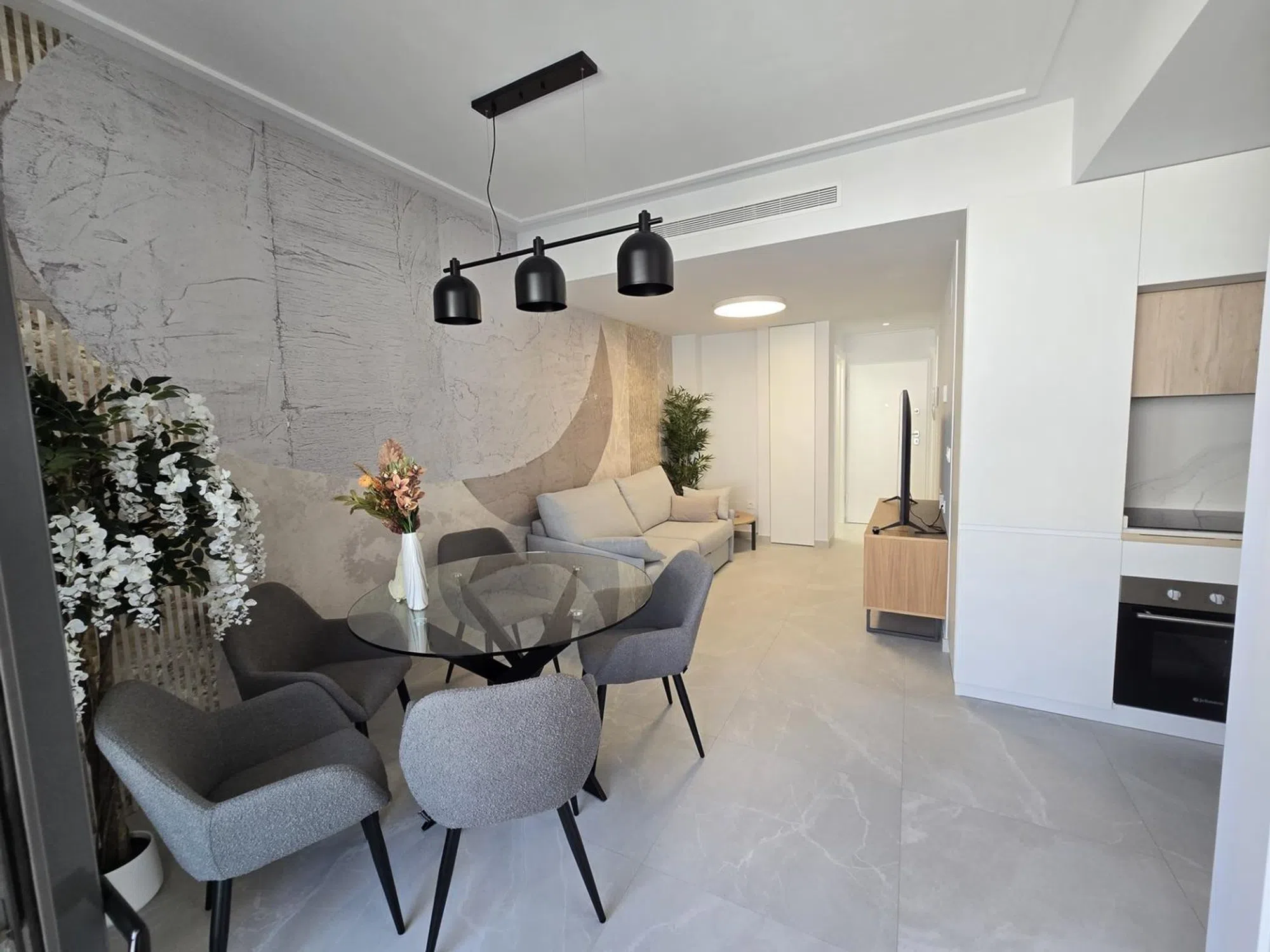 Excepcional apartamento de 2 dormitorios, construido en 2024, ubicado en la cuarta planta de un moderno edificio con ascensor y piscina en la azotea. Situado a tan solo 200 metros del mar, en una de las zonas más prometedoras de Torrevieja, esta propiedad destaca por su diseño contemporáneo, acabados de alta calidad y vistas al Mediterráneo. Ideal como primera residencia, casa de vacaciones o inversión de alquiler llave en mano, el apartamento se entrega completamente amueblado y equipado, listo para entrar a vivir sin necesidad de reformas. Características principales: Superficie: 75 m2 construidos. Dormitorios: 2 amplios dormitorios con camas dobles y armarios empotrados. Baños: 2 elegantes baños con duchas a ras de suelo y toalleros calefactados. Uno con ventana para ventilación natural. Salón: Luminoso y espacioso, con un gran televisor y un sofá cama para invitados adicionales. Cocina: Moderna cocina abierta, totalmente equipada con electrodomésticos, utensilios de cocina y una mesa de comedor para seis. Terraza: Orientada al noroeste, perfecta para relajarse por la tarde, con espacio de almacenamiento incorporado. Vistas: Vistas panorámicas al mar desde la piscina comunitaria en la azotea. Extras: Ventanas de piso a techo, aire acondicionado, wifi de alta velocidad, ropa de cama, utensilios de cocina y secador de pelo incluidos. Detalles del edificio: Construido en 2024 con acabados de lujo. Piscina en la azotea con vistas al Mediterráneo. Ubicación privilegiada junto al futuro complejo de La Lonja, con puerto deportivo, restaurantes, tiendas y cafeterías. Ascensor y trastero incluidos. Estado: De segunda mano en perfecto estado, nunca ocupado, listo para entrar a vivir o alquilar de inmediato. Certificado energético: En trámite.