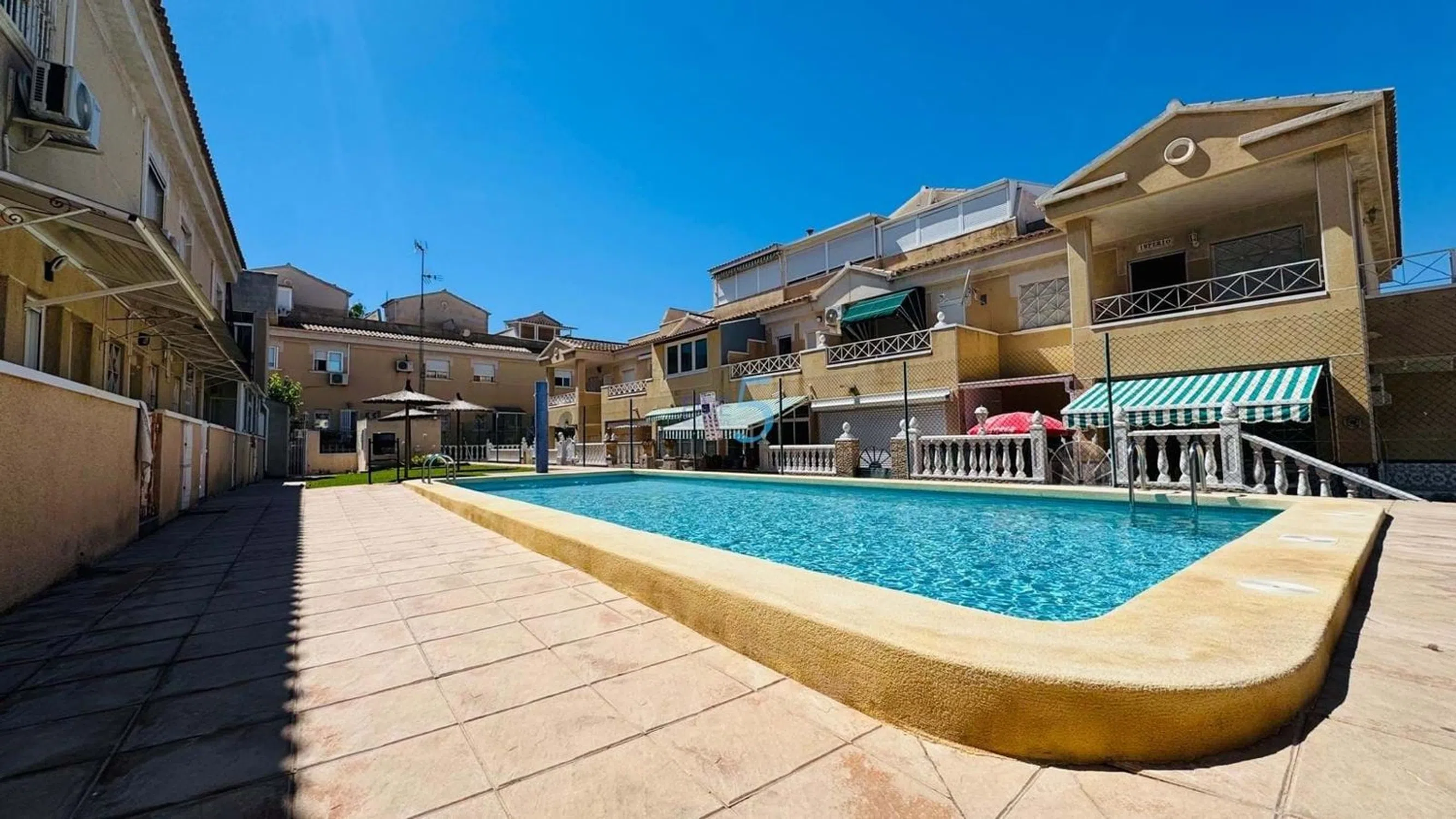 Esta luminosa y espaciosa casa adosada de dos dormitorios y dos baños orientada al sur está idealmente ubicada en el corazón de Torrevieja, a poca distancia de sus famosas playas de arena. Rodeada de una amplia gama de servicios que incluyen bares, restaurantes y tiendas, la propiedad es perfecta para aquellos que desean disfrutar de todo lo que la ciudad tiene para ofrecer justo en la puerta de su casa. Ubicado dentro del complejo Residencial Europa, seguro y bien mantenido, los residentes se benefician de una piscina comunitaria privada y un entorno cerrado seguro. La casa cuenta con un generoso espacio al aire libre tanto en la parte delantera como en la trasera, que incluye un camino de entrada privado y múltiples áreas de terrazas ideales para cenar y relajarse al aire libre. En el interior, la planta baja cuenta con una sala de estar y comedor de planta abierta con aire acondicionado, junto con una cocina independiente totalmente equipada que se abre directamente a la terraza trasera y al camino de entrada. Un baño conveniente también se encuentra en este nivel. En la planta superior, hay dos dormitorios dobles, cada uno con armarios empotrados y ventiladores de techo. El dormitorio principal disfruta de acceso directo a un balcón privado con vistas a la piscina comunitaria, mientras que el baño familiar principal incluye una bañera y ducha combinadas. El nivel superior del solárium ofrece aún más flexibilidad, con un espacio de terraza acristalada que se puede utilizar como dormitorio adicional, oficina en casa o área de almacenamiento. También hay una bañera y una ducha en este nivel, lo que lo convierte en una parte muy funcional y versátil de la casa. Esta propiedad es ideal para cualquiera que busque una casa adosada espaciosa y bien ubicada con excelente acceso a los servicios locales y algunas de las mejores playas de la Costa Blanca. 5 Real Estate es la agencia inmobiliaria internacional de servicio completo y tarifa fija de más rápido crecimiento en España, con numerosas oficinas en el norte y sur de la Costa Blanca, así como en la región de Murcia. Estamos comprometidos a brindar un servicio transparente y de primera clase a todos nuestros clientes, ya sean compradores o vendedores. Desde el momento en que se ponga en contacto con nosotros por primera vez, se dará cuenta de la diferencia que ofrecemos y promovemos como estándar. Puede estar seguro de que está tratando con profesionales eficientes y confiables con muchos años de experiencia en bienes raíces españoles. En 5 Real Estate solo vendemos propiedades que están listadas directamente con nosotros, lo que significa que conocemos personalmente a cada uno de los vendedores, sus casas y las áreas en las que se encuentran. Dada nuestra amplia cartera de propiedades listadas directamente, estamos seguros de que podemos encontrar la propiedad adecuada para satisfacer sus necesidades. Por lo tanto, haga una consulta hoy y descubra por qué somos tan diferentes y por qué nos estamos convirtiendo en el agente elegido tanto por compradores como por vendedores.