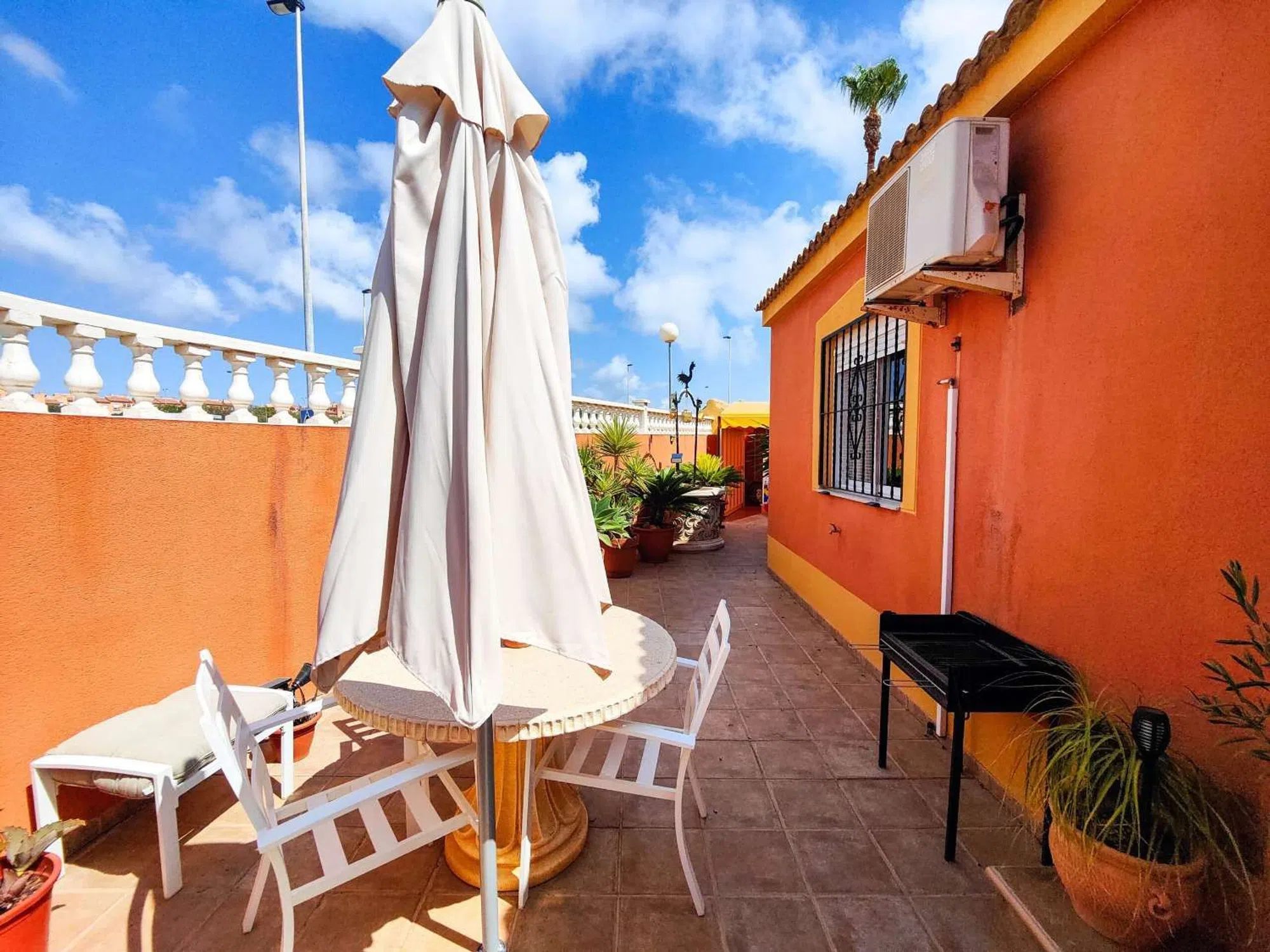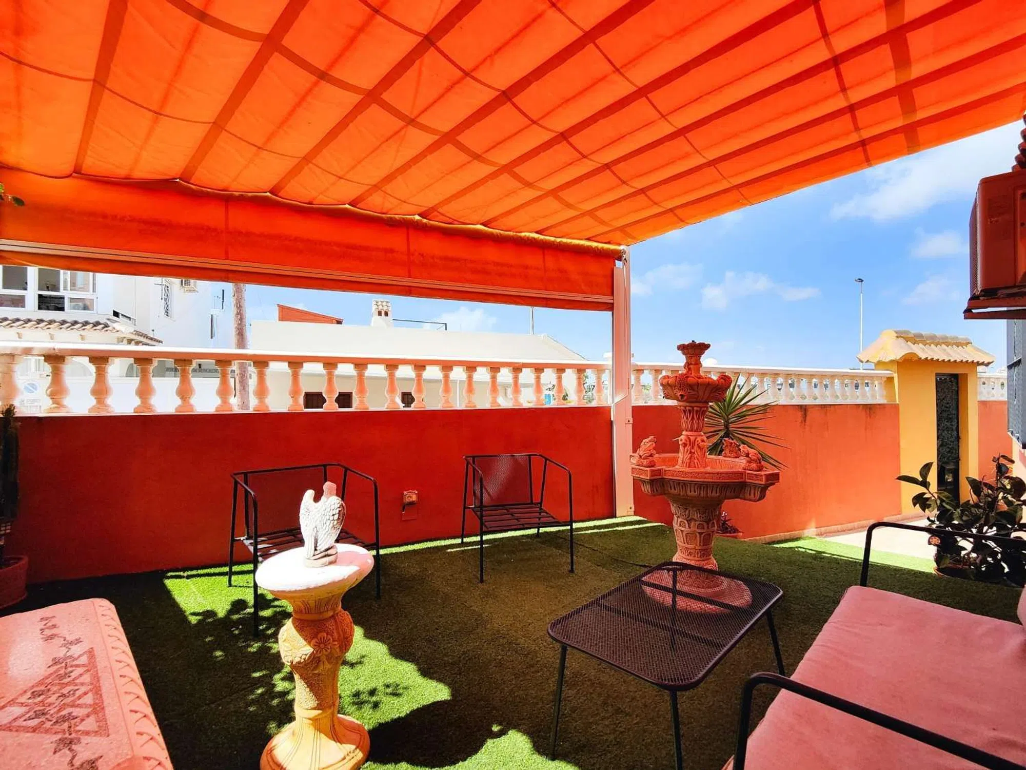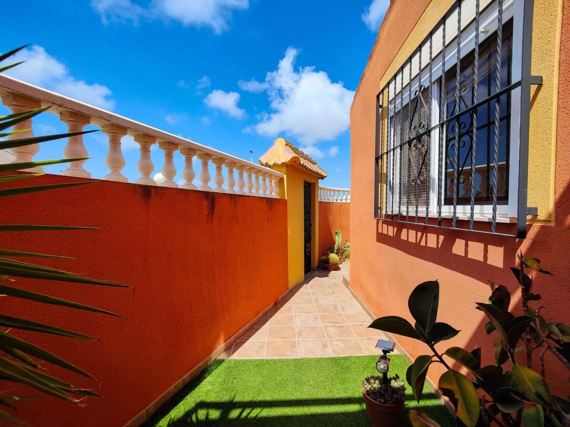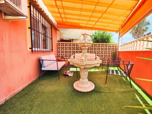 Estupenda vivienda pareada en esquina, situada en una de las zonas más cotizadas de Torrevieja: Los Frutales, a pocos pasos de colegios, supermercados, transporte público y a escasa distancia de las hermosas playas de la ciudad. La propiedad cuenta con 3 dormitorios y 2 baños, distribuidos de forma funcional: Planta baja: Accedemos a través de un acogedor recibidor que da paso al primer dormitorio, amplio y con baño en suite. A continuación, encontramos un espacioso salón-comedor con aire acondicionado y una cocina independiente completamente equipada, con acceso directo a la parcela exterior. Planta superior: Dispone de un segundo baño con bañera de hidromasaje y dos dormitorios adicionales, ambos con armarios empotrados. Uno de ellos cuenta con aire acondicionado, ventilador de techo y acceso a un balcón acristalado privado, desde el cual se accede al solárium. En el exterior, la vivienda ofrece múltiples espacios para disfrutar al aire libre: zona ajardinada, aparcamiento cubierto, varios trasteros y un cuarto de lavado. Gracias a su orientación suroeste, la casa recibe sol durante la mayor parte del día, mientras que el aparcamiento, ubicado en la parte trasera orientada al norte, garantiza sombra para el vehículo. Una excelente oportunidad para adquirir una cómoda y luminosa vivienda familiar en un entorno residencial tranquilo, bien comunicado y con todos los servicios al alcance. Nota legal: Tasas e impuestos no incluidos. La información proporcionada es orientativa y no vinculante jurídicamente, pudiendo contener errores.