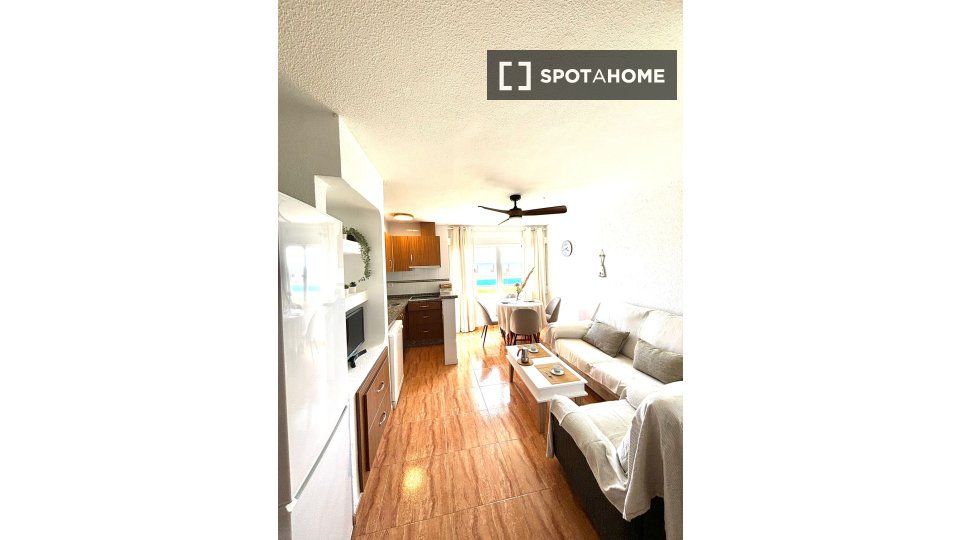 Appartement meublé d'une chambre à louer sur Av. De Torrequebrada. La propriété comprend une vue sur la mer, un accès à la piscine et la climatisation.