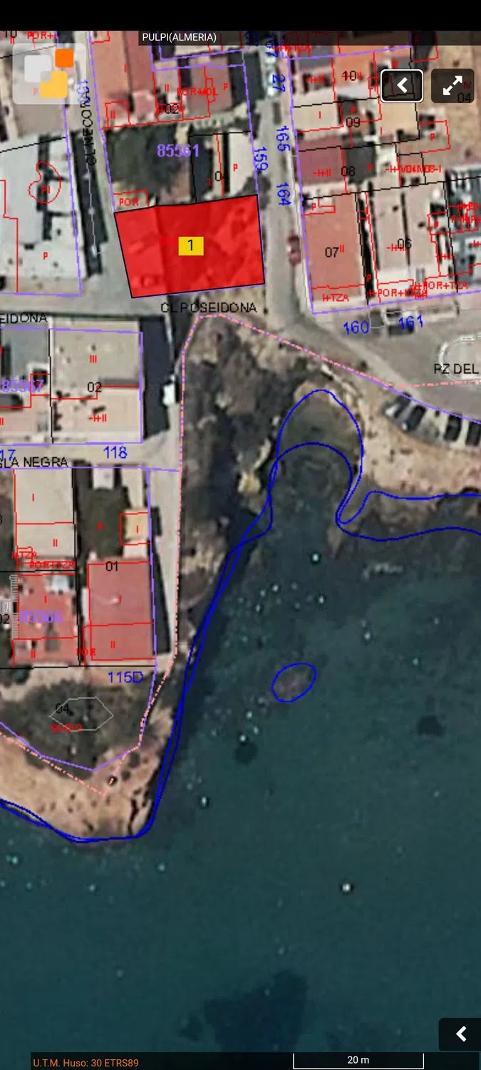 Espectacular terreno en la caja de la tía Antonia, en primerísima línea del mar. Linda al este y oeste con las calles; isla de Terreros y el puntal, al norte con un solar y al sur con el mar.