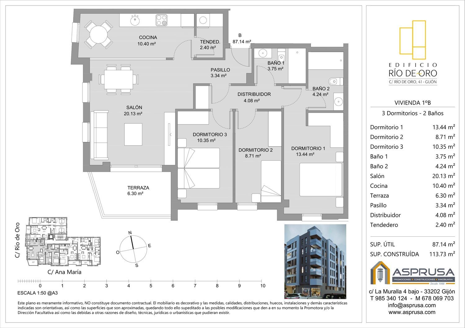 ÚLTIMAS VIVIENDAS CON GARAJE Y TRASTERO OPCIONALES(NO INCLUÍDO EN EL PRECIO).INICIAMOS EL EDIFICIO RÍO DE ORO 43, CON GARAJE Y TRASTERO OPCIONAL(Precio no incluido). Situado en la calle Río de Oro 43, esquina calle Ana María, Junto al Centro Municipal del Llano, a escasos minutos del centro de Gijón, a un paso de Centro Comercial Los Fresnos, Colegios, ambulatorio, piscinas y canchas deportivas municipales, Parque Los Pericones, el más extenso de Gijón con carril bici conectado con la Vía verde.Con terrazas, grandes ventanales y amplios interiores, incluyendo trasteros y plazas de garaje opcionales(no incluidos en el precio) y un local comercial.FACHADA DE ALTA EFICIENCIALas fachadas con aislamiento térmico de baja transmitancia y acabado con enfoscado de mortero hidrófugo acrílico, componen una fachada de alta eficiencia energética e imagen contemporánea y moderna, con indudable personalidad y carácter. Se diseña además una carpintería exterior con rotura de puente térmico, acristalamiento doble, y cámara aislante que incrementa aún más el aislamiento térmico y acústico de la fachada, lo que se traduce en un interior en el que se siente el bienestar y la tranquilidad.CALIDAD EN LOS MATERIALES, ORIENTACIÓN Y DISTRIBUCIÓN ÓPTIMA.Mayor comodidad. Amplios salones y viviendas con terrazas que te harán vivir increíbles momentos en tu vida y junto a tus amigos o familiares. Celebra esos momentos con los que más quieres en un espacio luminoso y cálido. Con la mejor orientación y luminosidad. Terrazas conectadas directamente con las cocinas y salones, extendiendo y ampliando estas estancias hacia el exterior.Materiales y acabados de primera calidad, con líneas minimalistas que crean espacios funcionales, elegantes y luminosos. Sin barreras arquitectónicas. Funcionalidad y sencillez, adaptada a personas con movilidad reducida, sin perder de vista el estilo y la elegancia. Viviendas personalizables. Tendrás la posibilidad de modificar la distribución interior de tu vivienda, e incluso de elegir entre distintos acabados y materiales (suelos cerámicos, pinturas, alicatados, etc.) para que tu casa sea esa con la que siempre soñaste. Además, pondremos a tu disposición a nuestro equipo técnico y distribuidores para analizar las distintas alternativas.CALIFICACIÓN ENERGÉTICAASPRUSA tiene entre sus principios la conciencia y el respeto hacia el medio ambiente, lo que nos hace perseguir el diseño de un edificio con Calificación Energética A, máxima clasificación contemplada en el Código Técnico de la Edificación, lo que supone una disminución de consumo de energía y de emisiones C02, con respecto a los niveles mínimos exigidos por la normativa. Esto se consigue gracias al aumento del aislamiento térmico aplicado en el edificio, a la calidad técnica de las carpinterías exteriores y sus vidrios aislantes de altas prestaciones, y por supuesto gracias a la implantación de las últimas tecnologías aplicadas a las instalaciones térmicas del edificio (calefacción y agua caliente sanitaria) Exclusivamente con equipos eficientes de aerotermia, con el consiguiente ahorro para las familias y propietarios, que no necesitarán dar de alta y tener consumos fijos de gas.PANELES SOLARES FOTOVOLTAICOSSe instalará un conjunto de placas fotovoltaicas para aprovechar la energía solar y con ellas producir potencia eléctrica que utilizarán los equipos de aerotermia para la producción de agua caliente y calefacción, con el consiguiente ahorro energético y ayudando al medioambiente al ser un edificio cuyas fuentes de energía renovables serán la AEROTERMIA y los PANELES SOLARES.En Asprusa cuidamos los detalles y cuidamos del medio ambiente, como gran avance en lo relativo a la autosuficiencia energética.
