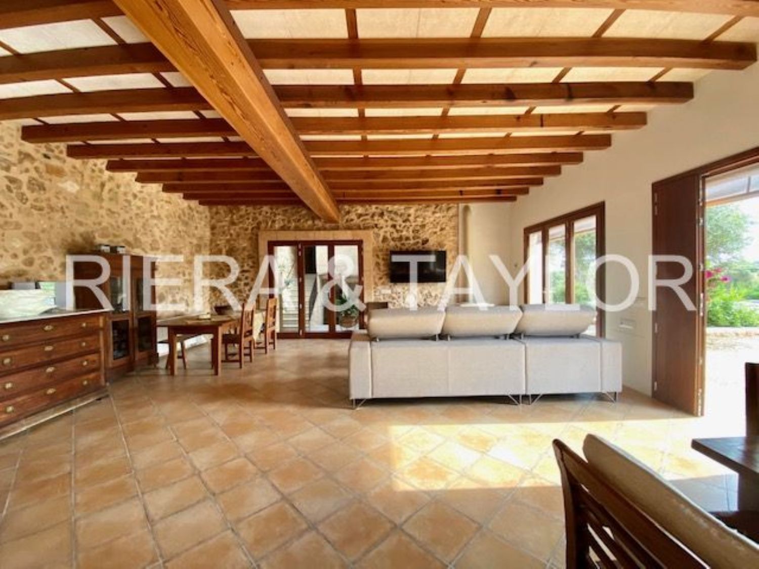 Finca recientemente reformada ya que se trataba de una antigua casa de campo. En la reforma se han mantenido las paredes originales de piedra y otros elementos tradicionales de la misma, lo cual da más carácter a la propiedad. Un estilo entre rústico y toques modernos se caracteriza el interior de la vivienda. La finca está situada en las afueras de Manacor, en una zona tranquila y vistas despejadas.La propiedad tiene licencia de alquiler vacacional para 10 plazasLa vivienda tiene un total de 450m2 construidos y está distribuida en un amplio salón comedor, sala de estar independiente con grandes ventanales, 5 dormitorios, 5 baños, sauna, cocina independiente, despensa, garage, piscina.Entre los acabados tiene ventanas climalit, calefacción por radiadores, chimenea, aire acondicionado frío calor, bigas de madera. La Finca dispone de luz de gesa y pozo propio de agua. El terreno está totalmente vallado Riera Taylor es la Inmobiliaria que más casas dispone a la venta, hoy más de 1.500 viviendas, más información en Tel.