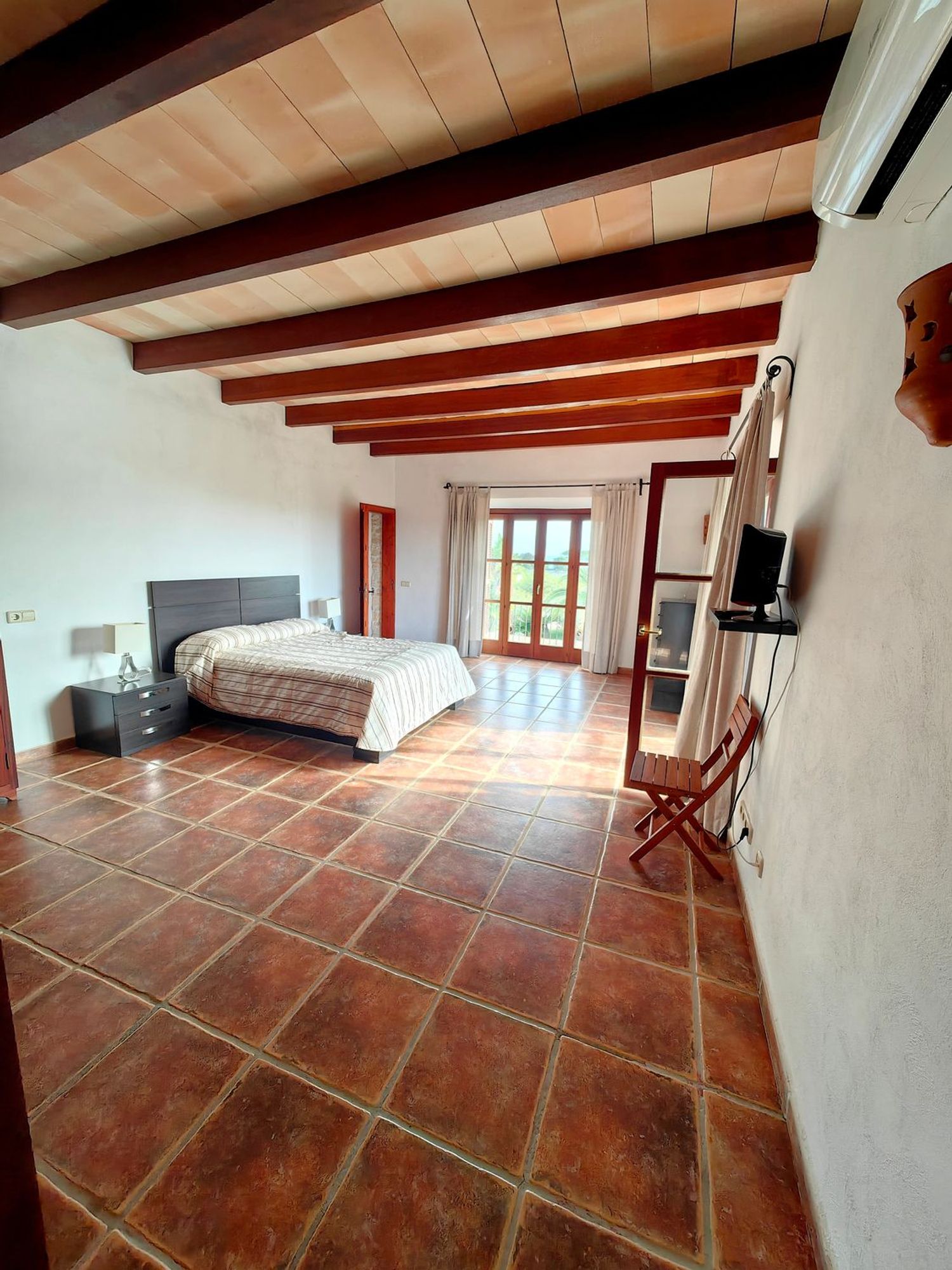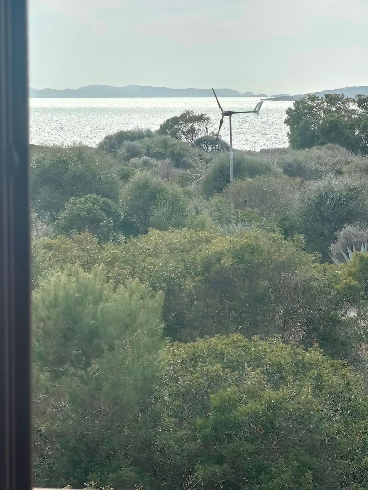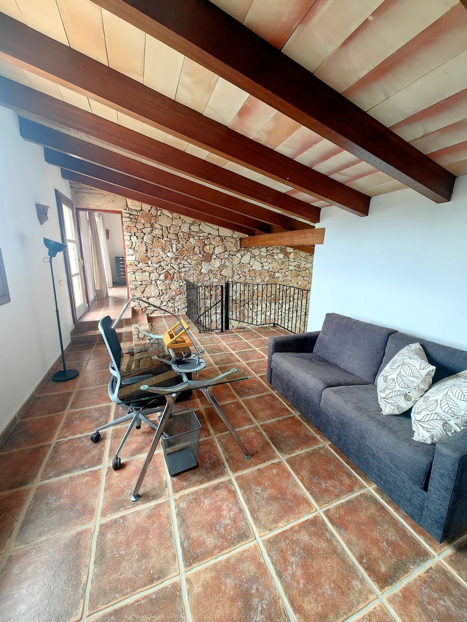 À l'étage, une superficie de 85 mètres carrés abrite un bureau ainsi qu'une chambre principale en suite, offrant une vue panoramique sur l'île de Cabrera. L'extérieur de la propriété est tout aussi remarquable, avec une terrasse de 200 mètres carrés qui comprend un ravissant porche, une cuisine extérieure, un solarium et une piscine de 10 x 5 mètres.