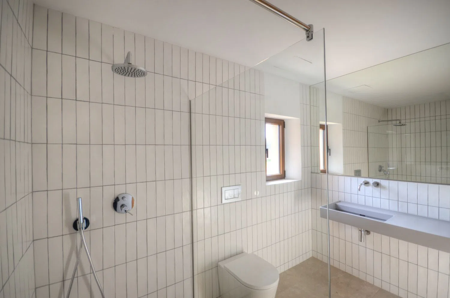 Dans l'aile droite de la maison, un dortoir indépendant avec sa propre salle de bain est accessible. Cette chambre, dotée d'une entrée indépendante et légèrement retirée, est idéale comme bureau ou pour loger du personnel. L'aile gauche abrite trois autres chambres, dont deux avec salle de bain attenante, accessibles par un petit vestibule avec penderies intégrées. La troisième chambre est légèrement plus petite et utilise la salle de bain du couloir, qui sert également de toilettes pour invités.