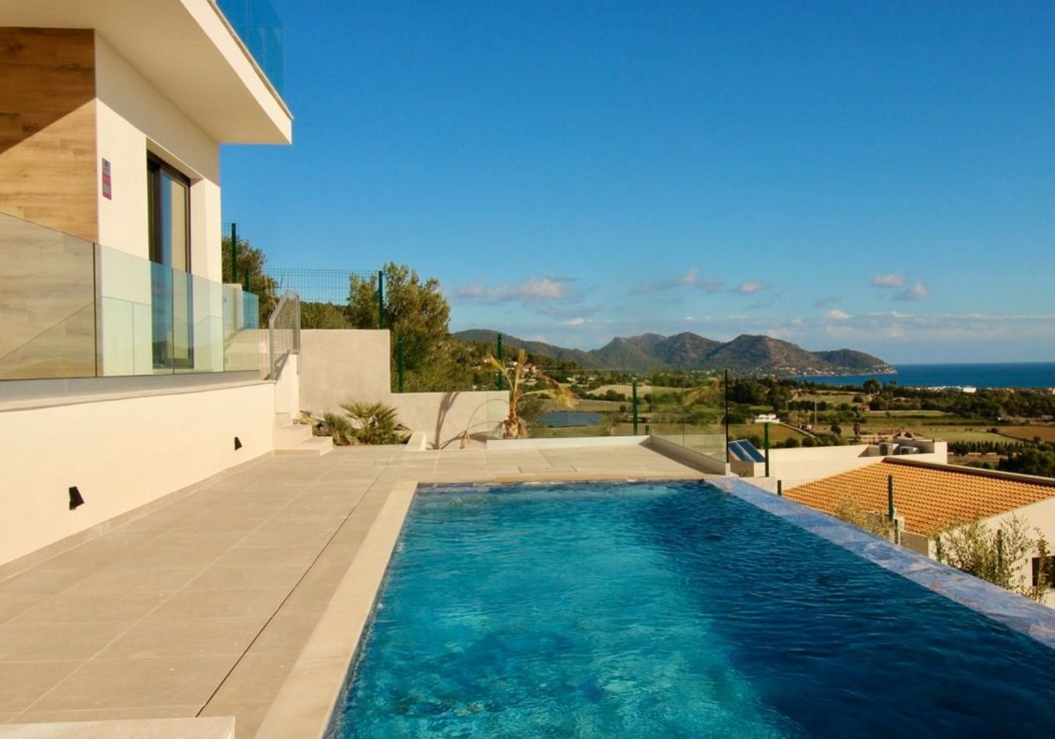Chalet de ensueño de nueva construcción con impresionantes vistas al mar e infinity pool. Este elegante y moderno chalet de nueva construcción está situado en una parcela fácil de cuidar de 480 metros cuadrados en una ubicación expuesta. El chalet de ensueño recientemente terminado en la costa este de Mallorca hará realidad su sueño de un chalet de nueva construcción con vistas al mar. Esta excepcional propiedad es ideal no sólo para sus vacaciones, sino también como residencia permanente. El elegante y ultramoderno chalet le ofrece un estándar de construcción de primera clase en 2 plantas y dispone de 4 dormitorios dobles, 4 baños, aseo de invitados, una cocina de planta abierta y una amplia zona de estar con vistas a la magnífica piscina infinita y al azulado mar Mediterráneo. Disfrute del mágico amanecer sobre el mar desde su cama. La villa de nueva construcción tiene una orientación este-sur con mucha luz y sol. Las ventanas de suelo a techo y las grandes puertas correderas inundan de luz las habitaciones y crean un ambiente luminoso. El uso de materiales naturales en combinación con elementos modernos crea una acogedora sensación de espacio que satisface todas las necesidades actuales. La casa cuenta con las últimas tecnologías, como una entrada con puerta corredera automática y sistema de videoportero. En los meses más fríos del año, disfrutará del agradable calor de la calefacción por suelo radiante. En verano, el aire acondicionado refresca todas las habitaciones.Esta villa de ensueño cuenta con dos extravagantes plazas de aparcamiento en la azotea para 2 coches con unas vistas majestuosas. La villa de nueva construcción cuenta con una cocina de planta abierta y sala de estar, cuatro amplios dormitorios, todos con baño en suite y una superficie habitable de 240 metros cuadrados. Destacan un muro de piedra con ventanas iluminadas y comodidades modernas como calefacción por suelo radiante y una piscina de agua salada. La propiedad cuenta con amplias terrazas que rodean la piscina infinita de agua salada bañada por el sol, ofreciendo impresionantes vistas del horizonte de Cala Millor y las bahías circundantes. Cada ventana de la casa le ofrece una vista pintoresca del mar, la naturaleza, las montañas y los pueblos de los alrededores - ¡una vista realmente mágica! Ubicación: En una ubicación de montaña expuesta con espectaculares vistas de la costa y el mar azul celeste. El municipio de Son Servera incluye el internacionalmente conocido centro turístico de Cala Millor con su larga playa de arena, que se encuentra entre el puerto pesquero de Cala Bona y la reserva natural de Sa Punta de n'Amer. Son Servera es un típico pueblecito del este de Mallorca. Es especialmente popular entre los visitantes de Alemania. Este pueblo no sólo es popular por sus bonitos edificios y su agradable ambiente, sino también por su animado mercado semanal los viernes por la mañana. En el corazón del pueblo se encuentra la conocida iglesia OPEN-AIR "Església Nova", donde se organizan diversos conciertos y otros eventos. Son Servera es el punto de partida de excursiones a lugares interesantes que se pueden descubrir en esta región de Mallorca, y los golfistas seguro que piensan en el campo de golf local cuando oyen el nombre de este pueblo: Son Servera Golf es el segundo campo de golf más antiguo de Mallorca, y desde aquí se puede acceder fácilmente a otros campos de 18 hoyos en buen estado en Sera de Pula, Canyamel y Capdepera.