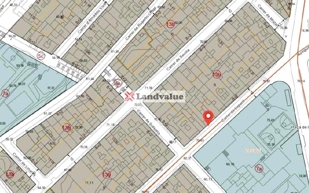 Solar con edificaciones a demoler, con una superficie de 260,07 m2s y una edificabilidad estimada de 443,97 m2e. Referencia Catastral: 5291215DF3859A0001EP, 5291216DF3859A0001SP, 5291216DF3859A0002DA, 5291216DF3859A0003FS, 5291216DF3859A0004GD Clasificación urbanística: Suelo urbano consolidado. Clave 13b - Zona de densificació subzona II, semintensiva. Superficie a demoler: 216 m2c.