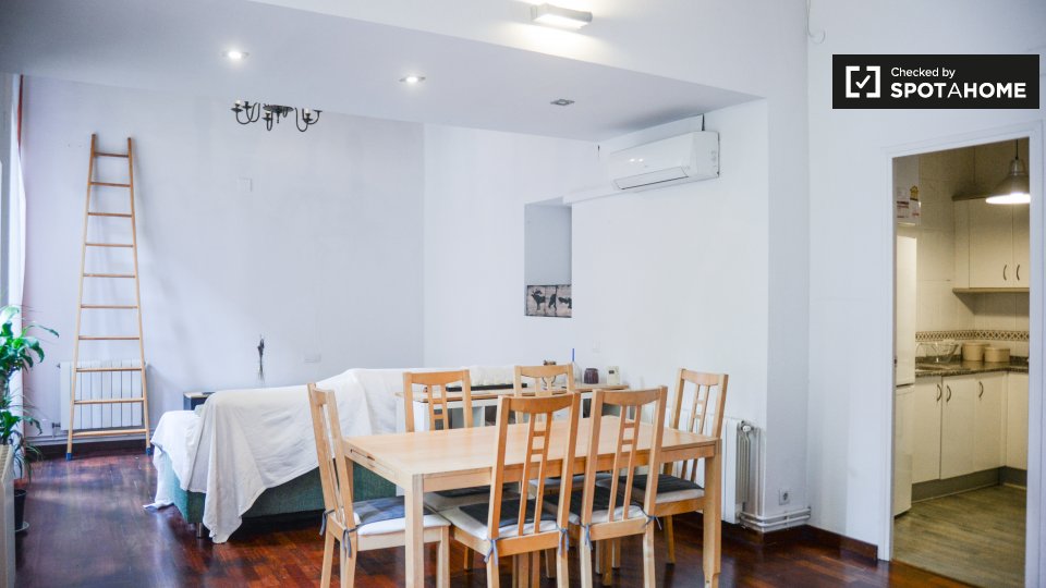 Cet appartement d'une chambre situé dans la rue Carrer de Jaume Giralt, à El Born, est entièrement meublé et très confortable. La propriété de 65 m² est équipée de chauffage AC et de gaz, et dispose d'un spacieux salon et salle à manger, 1 salle de bain, et une cuisine avec tout ce dont vous avez besoin pour cuisiner.