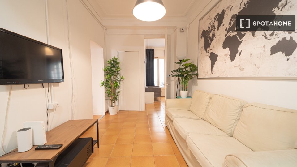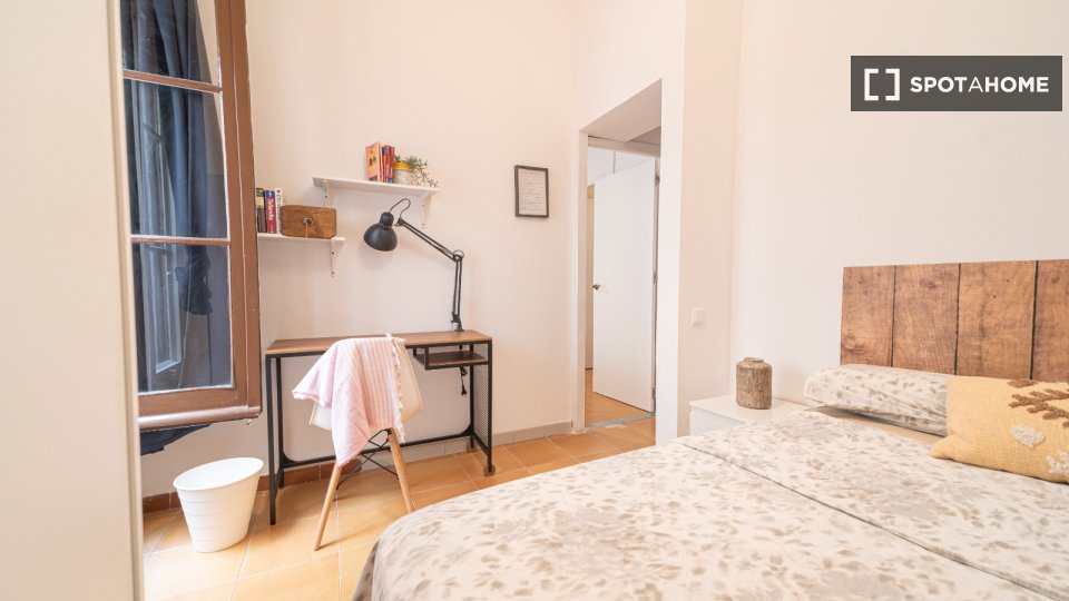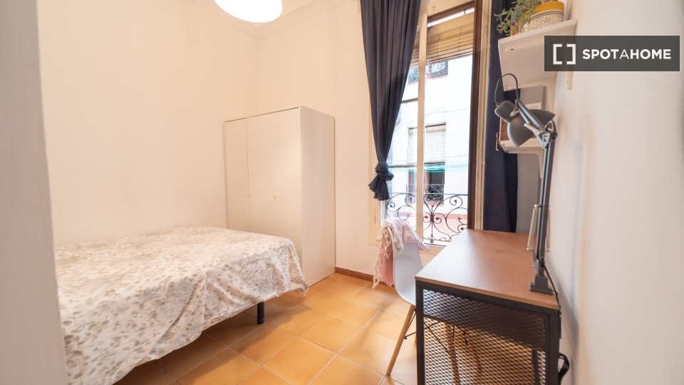Cette chambre entièrement meublée, située dans un appartement partagé de 8 chambres dans le quartier gothique de Barcelone, est disponible à la location. Elle comprend une cuisine équipée, un ascenseur et toutes les charges (électricité, eau, gaz et Wi-Fi). Offrant un espace de vie confortable et pratique, elle est dotée d'équipements essentiels tels qu'un lave-linge, un four et une télévision.