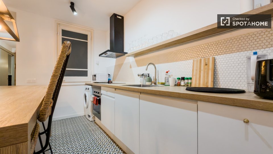 Vous cherchez une chambre pratique et confortable à Barcelone ? Cet appartement de 4 chambres en colocation, situé dans le quartier d'El Fort Pienc, est entièrement meublé et idéal pour les jeunes actifs. La chambre est équipée pour répondre à vos besoins quotidiens avec des commodités telles qu'un lave-linge, un lave-vaisselle et la climatisation centrale. Il est interdit de fumer et les animaux de compagnie ne sont pas admis. Les couples et les étudiants ne sont malheureusement pas acceptés.