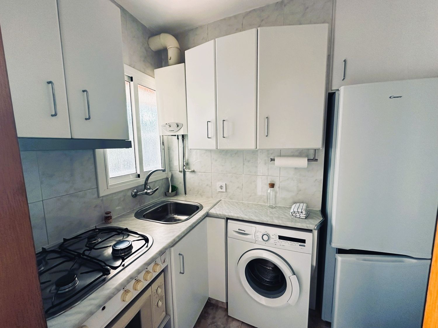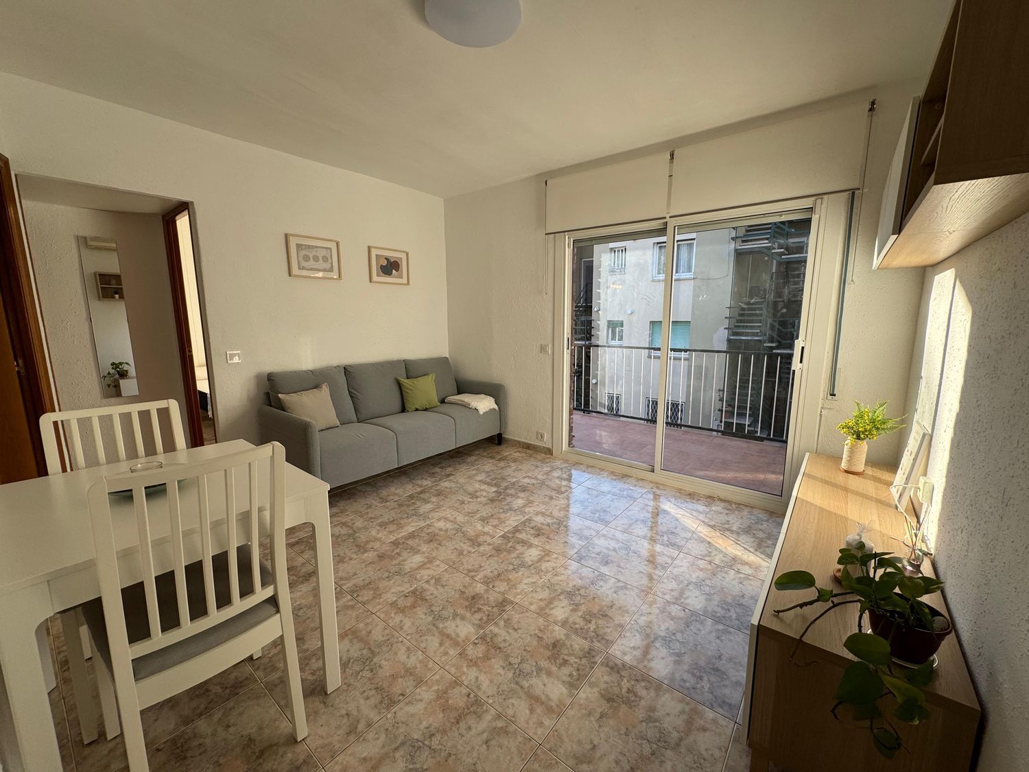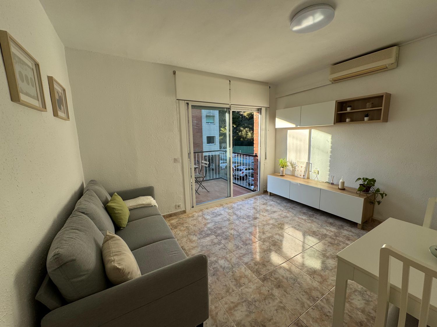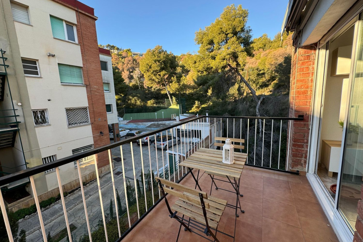 ZONA BELLAMAR BAJO – Les ofrecemos un apartamento en una de las zonas más tranquilas y a su vez, mejor comunicadas de Castelldefels. Vivienda totalmente exterior llena de luz y con una excelente distribución. Accedemos a ella y nos encontramos con una cocina totalmente equipada y renovada, tenemos el salón comedor con acceso a una bonita terraza en la que podemos disfrutar de paisajes verdes desayunando o cenando tranquilamente. Dispone de dos habitaciones dobles, la principal con armario empotrado hecho a medida y, para terminar, tenemos un baño completo con plato de ducha.El pavimento de la vivienda es de gres, todas las ventanas y puertas son de aluminio, la climatización es por bomba de calor y frío. En el precio se incluye un trastero y una plaza de párking.