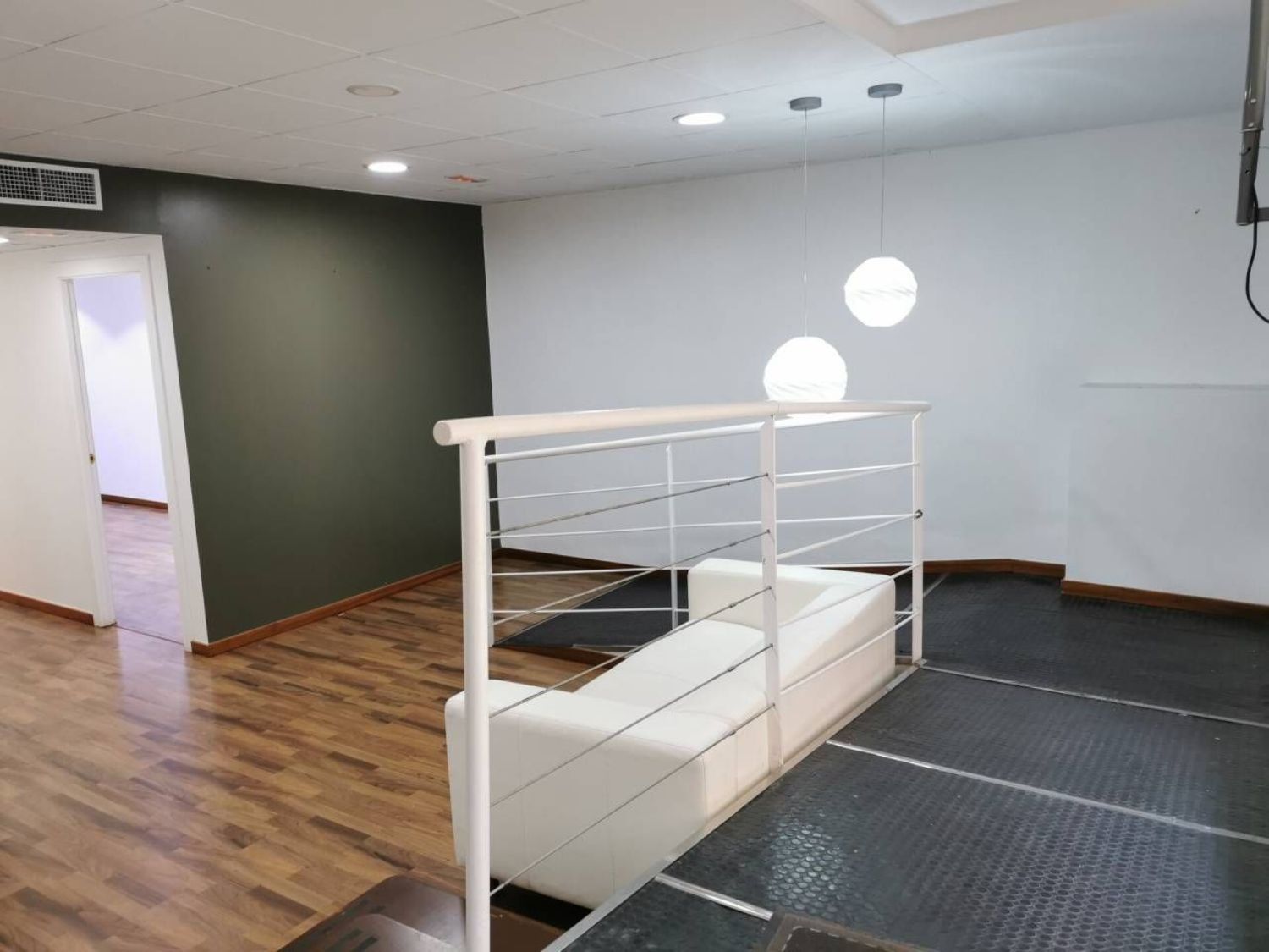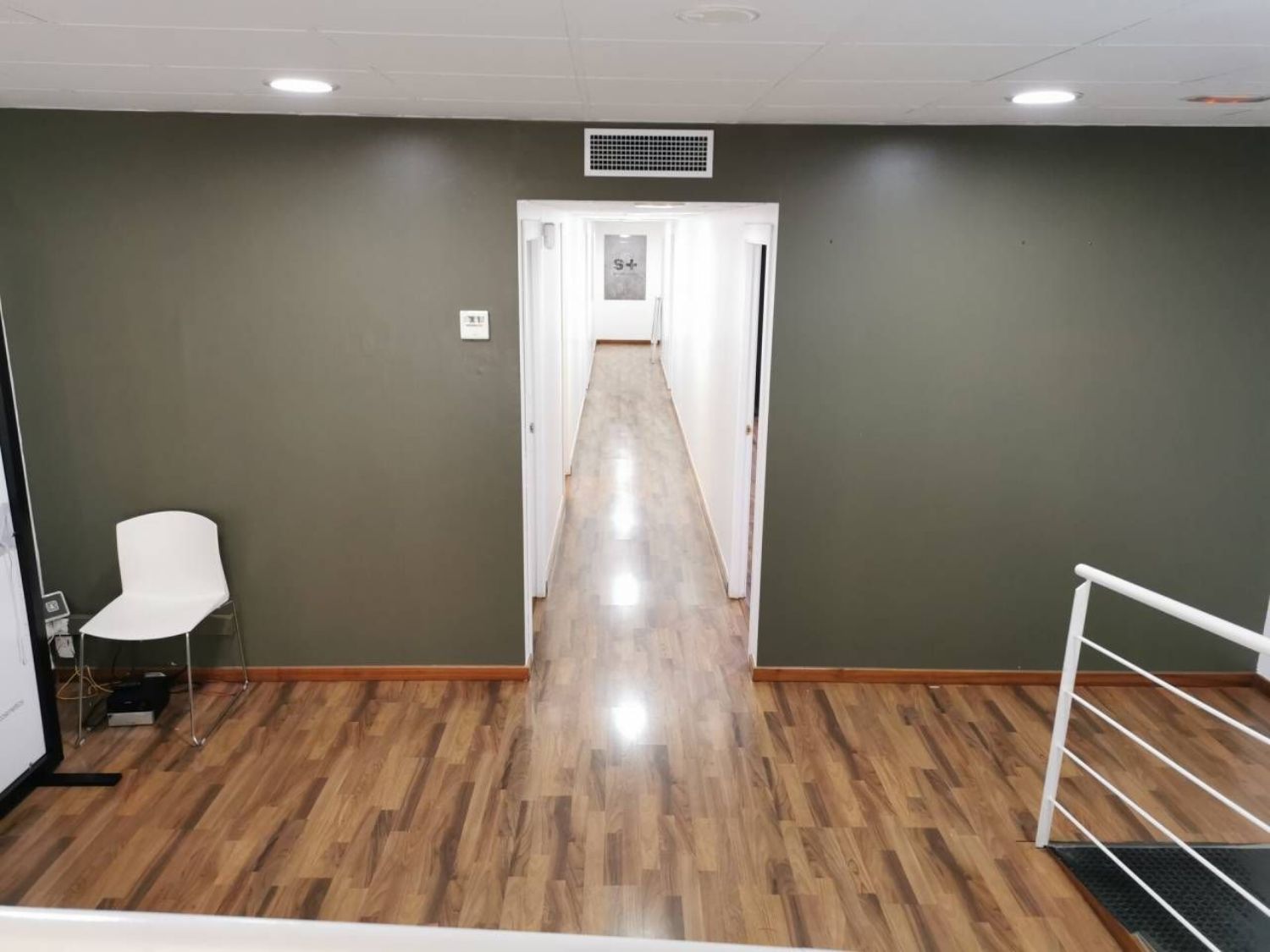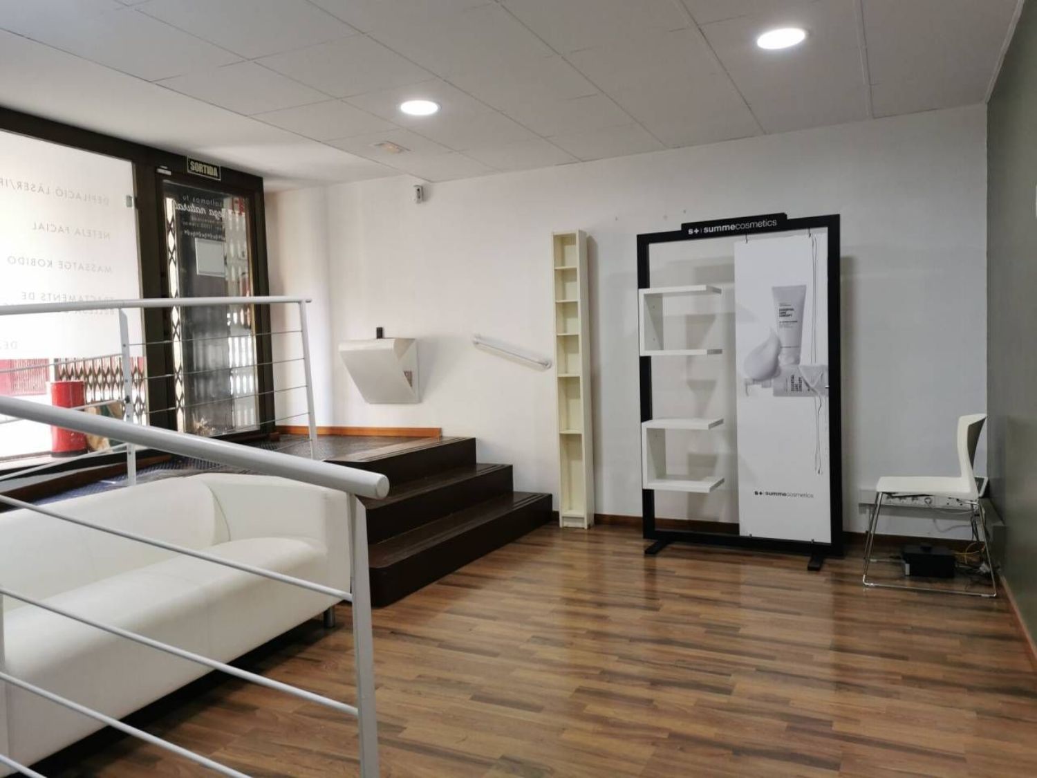 Local diáfano de 119m, con una distribución, de cuatro estancias y un pequeño almacén, aseo bien, el local está adaptado con rampa, las puertas son lacadas en blanco, el suelo es de parquet, carpintería exterior de aluminio, tiene falso techo, instalación luz correcta, aire frío y calor por conductos, fachada de cinco metros.