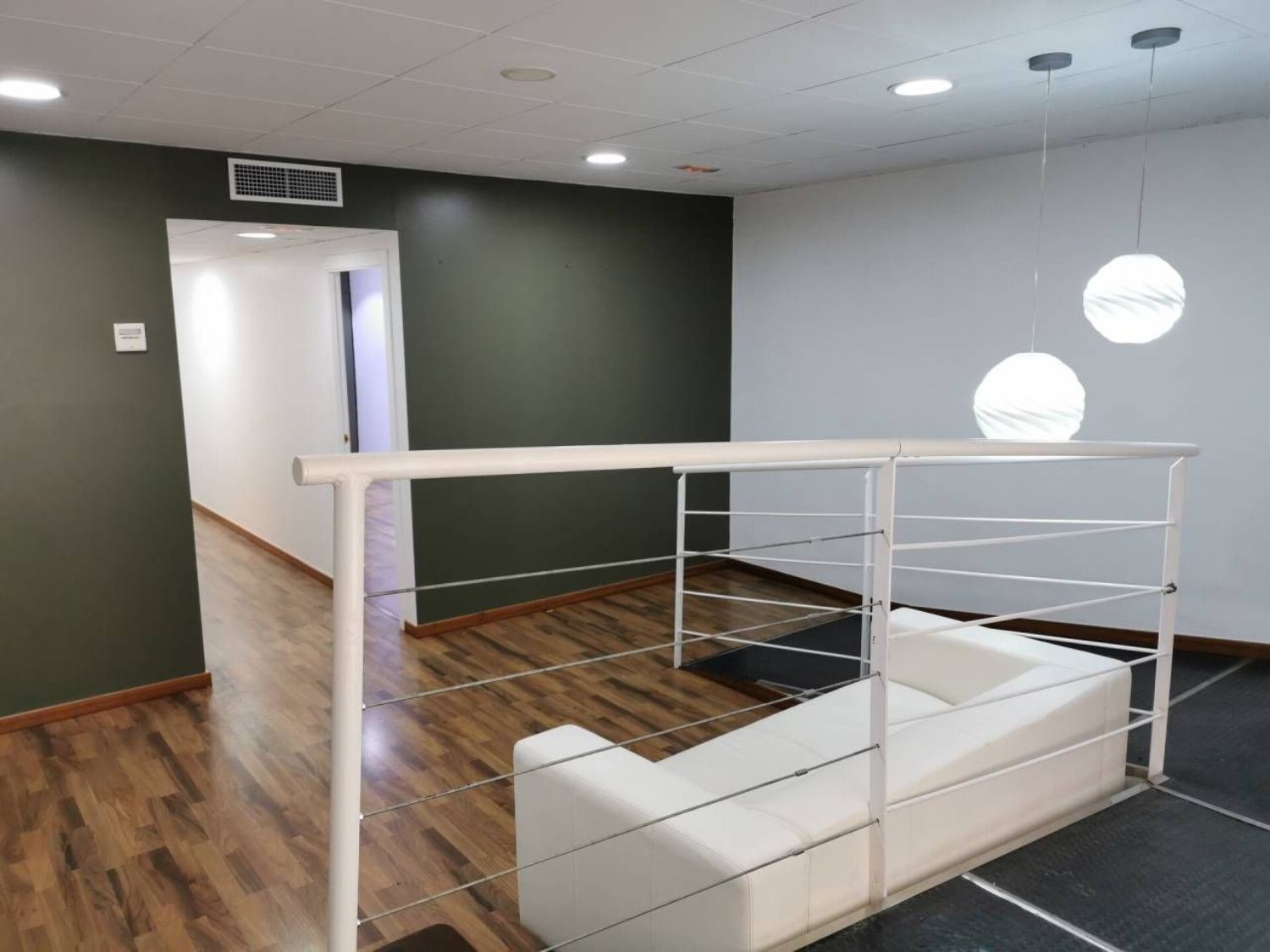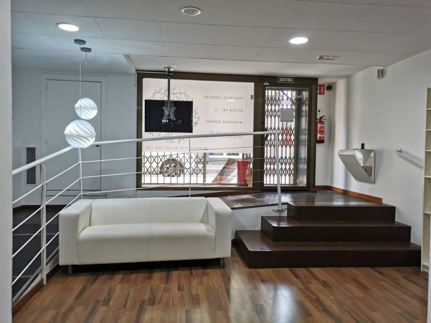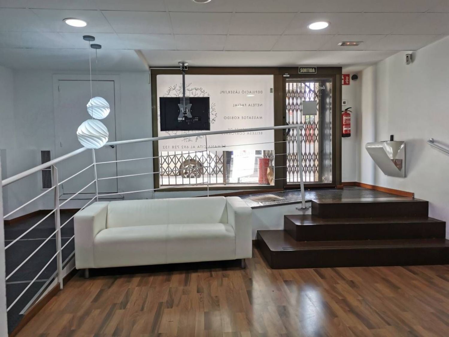 Local diáfano de 119m, con una distribución, de cuatro estancias y un pequeño almacén, aseo bien, el local está adaptado con rampa, las puertas son lacadas en blanco, el suelo es de parquet, carpintería exterior de aluminio, tiene falso techo, instalación luz correcta, aire frío y calor por conductos, fachada de cinco metros.