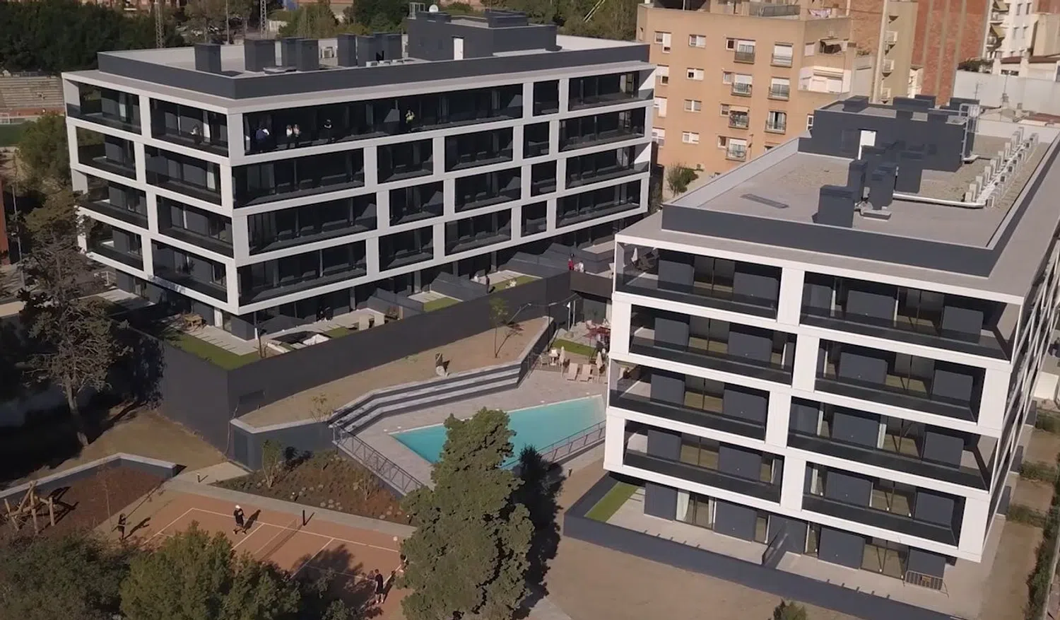 Cette résidence dispose d'une grande zone paysagée avec piscine, espace de détente, pickleball, aire de jeux pour enfants, salle de fitness intérieure et service de conciergerie. Les appartements spacieux et lumineux bénéficient de vastes terrasses, avec des options allant de 63 m² à 92 m², entre 2 et 3 chambres. Profitez du cadre de vie exceptionnel, tout en restant proche de Barcelone grâce à un accès facile en transport privé, tramway, bus ou métro.