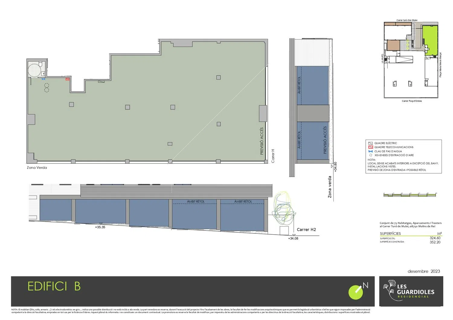 La construction de la deuxième phase du projet, qui comprendra 77 logements supplémentaires, est prévue prochainement. Ce local, idéalement situé à Molins de Rei, est très bien desservi par la route avec un accès facile aux principales autoroutes et se trouve à seulement 15 minutes en voiture de Barcelone. De plus, le transport public est optimal grâce à une gare ferroviaire située à seulement 6 minutes à pied, offrant des liaisons directes à Barcelone.